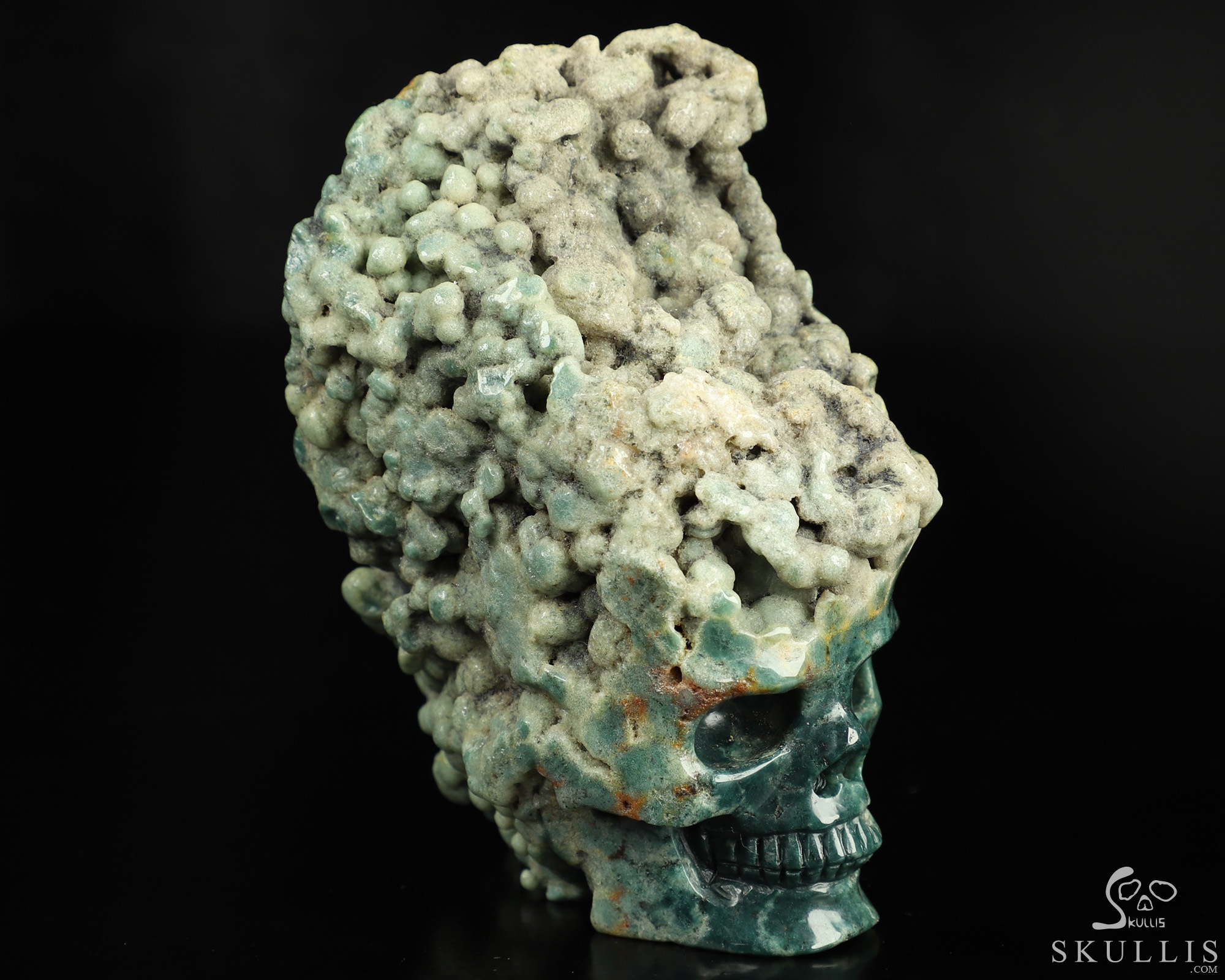 Lifesized 6.9" Green Grape Agate Hand Carved Crystal Skull, Realistic, Crystal Healing