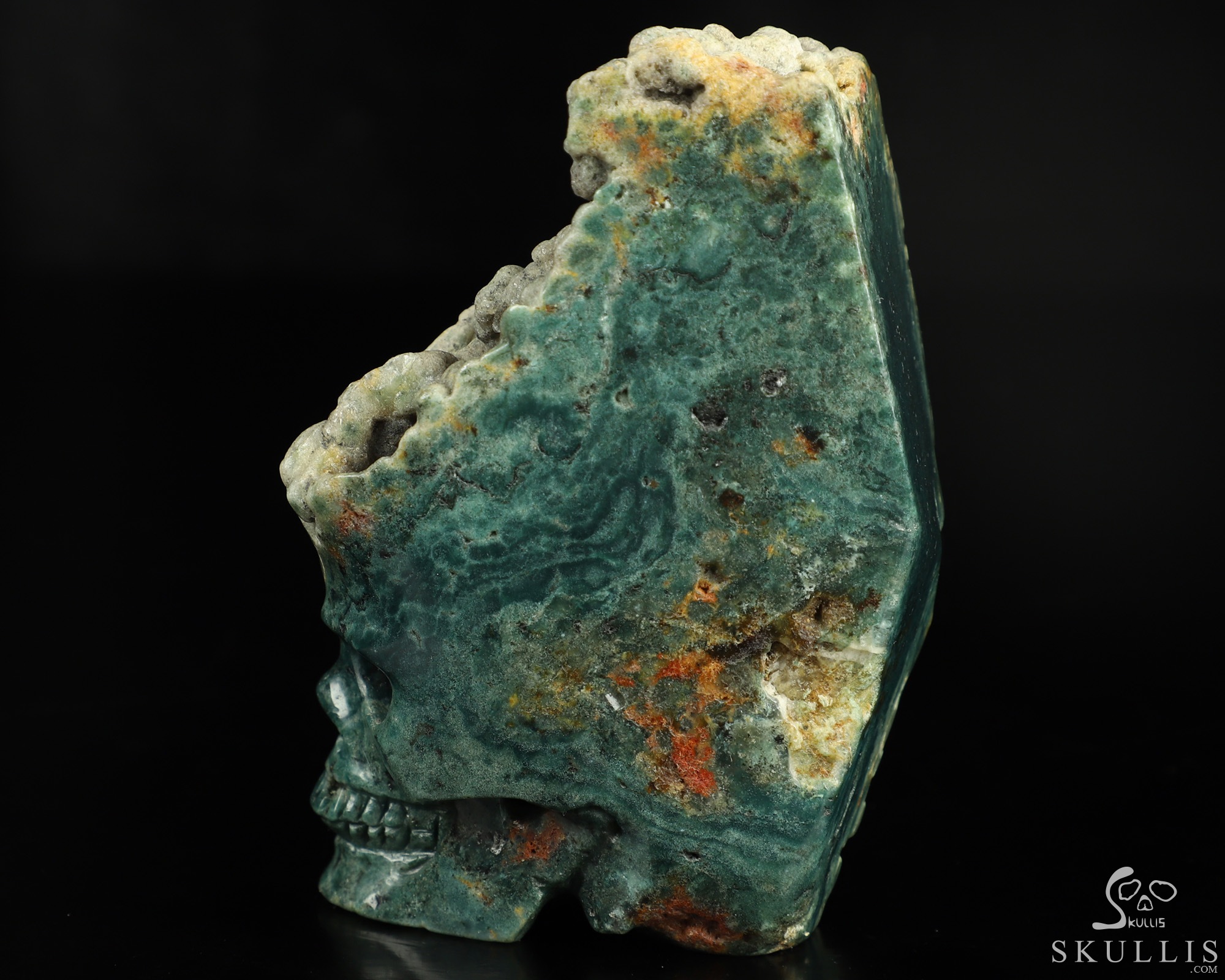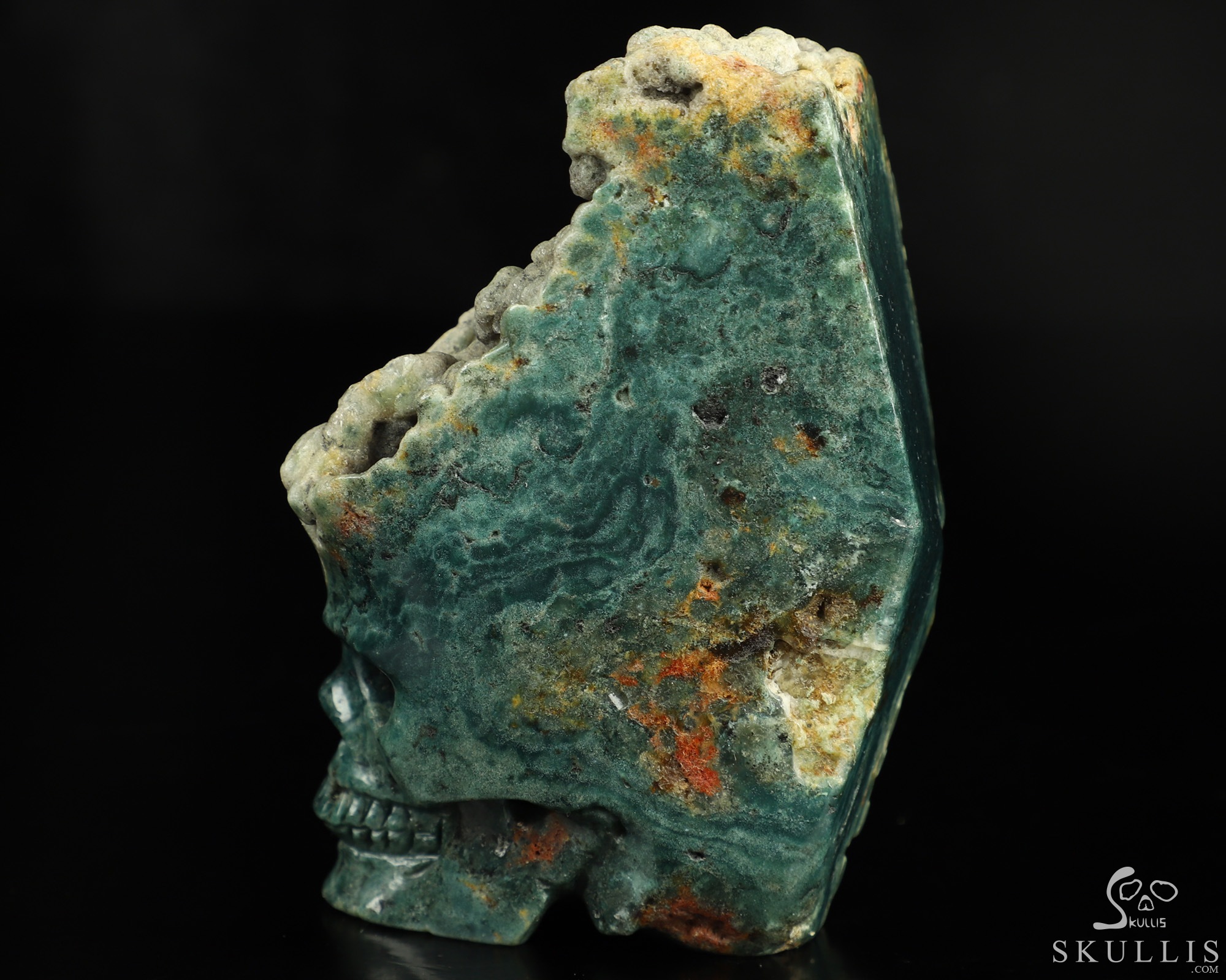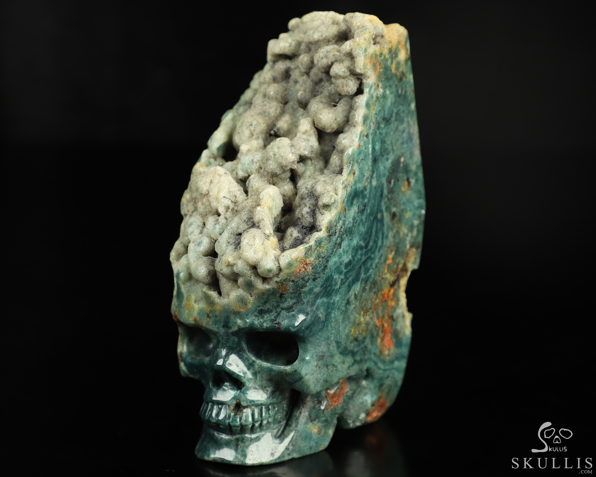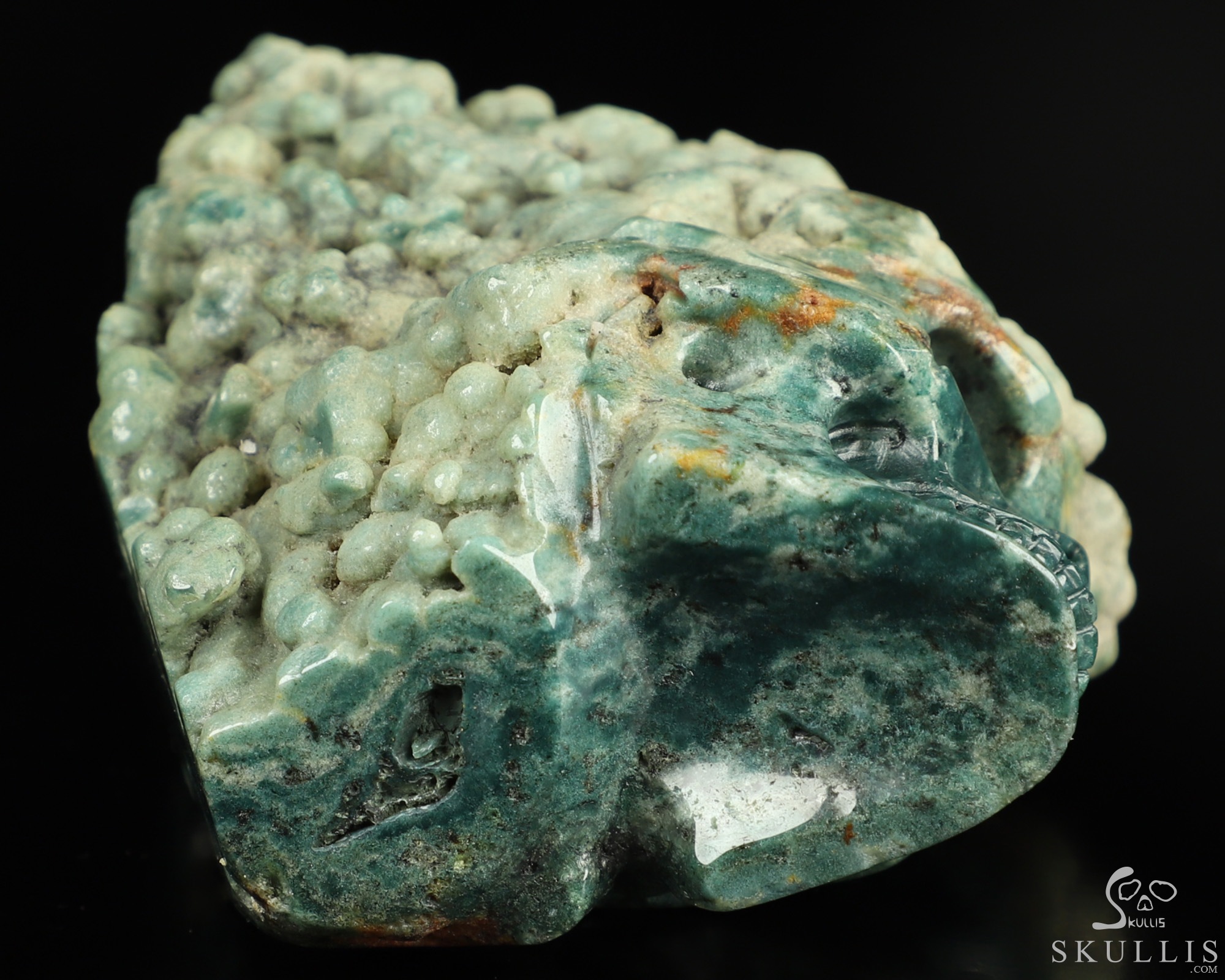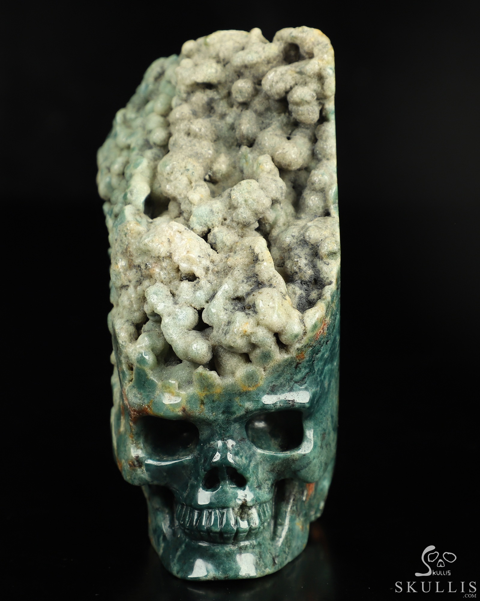 You are looking at a Green Grape Agate skull. The skull is 4.5 inches from top to bottom.