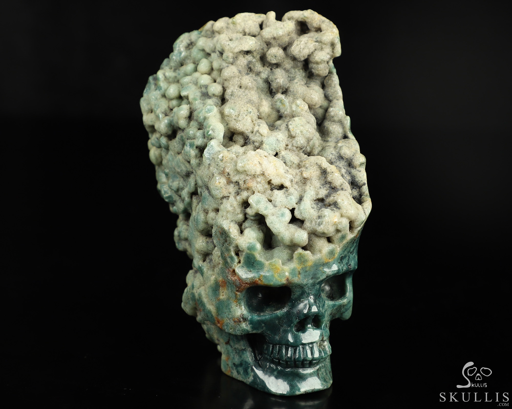 6.3" Green Grape Agate Hand Carved Crystal Skull Fine Art Sculpture, Crystal Healing