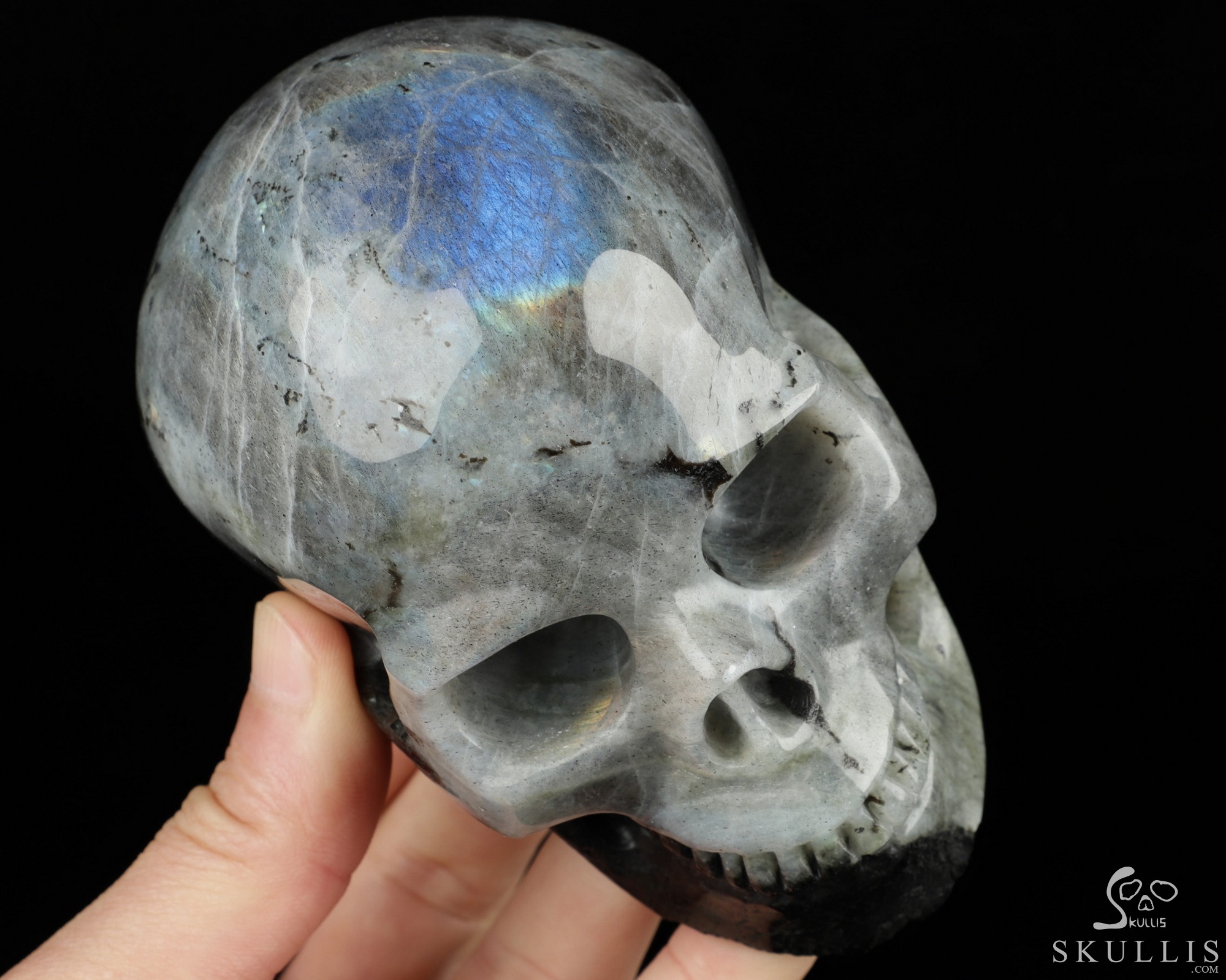 5.0" Flash Labradorite Hand Carved Crystal Skull, Super Realistic, Crystal Healing