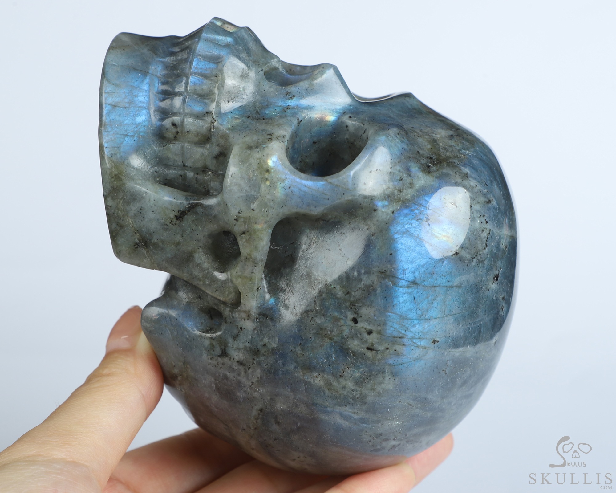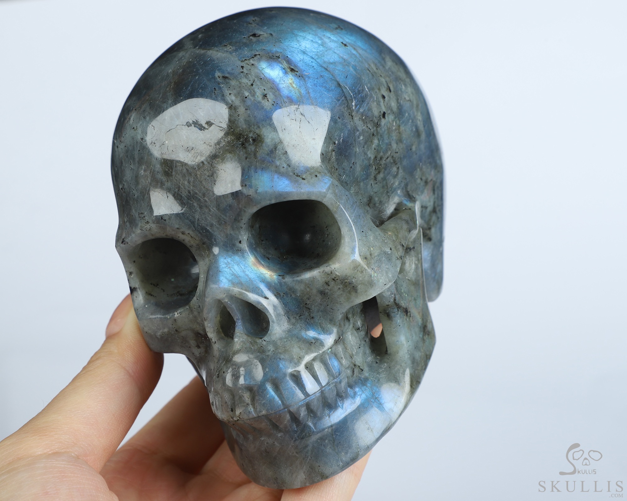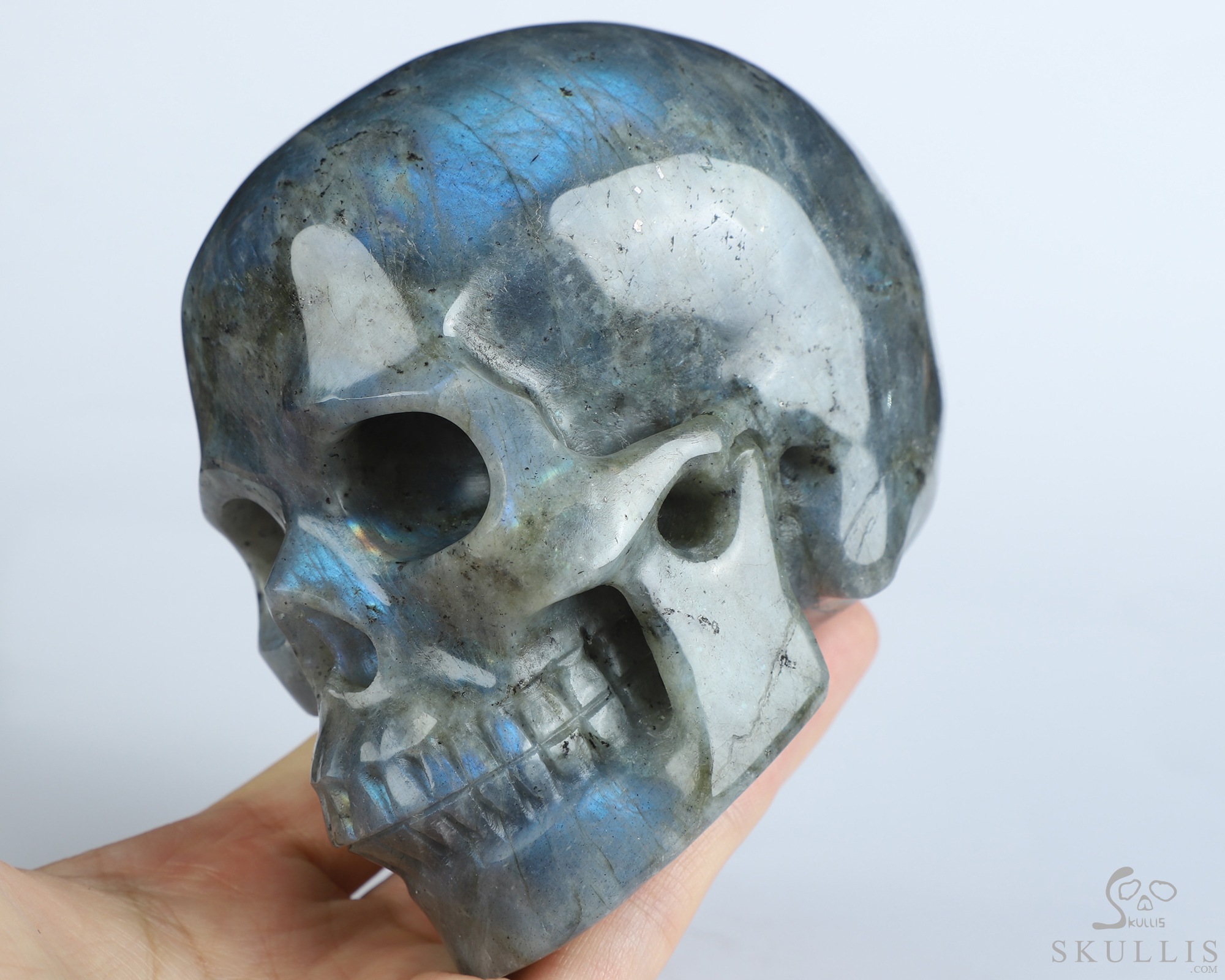5.1" Labradorite Hand Carved Crystal Skull, Super Realistic, Crystal Healing