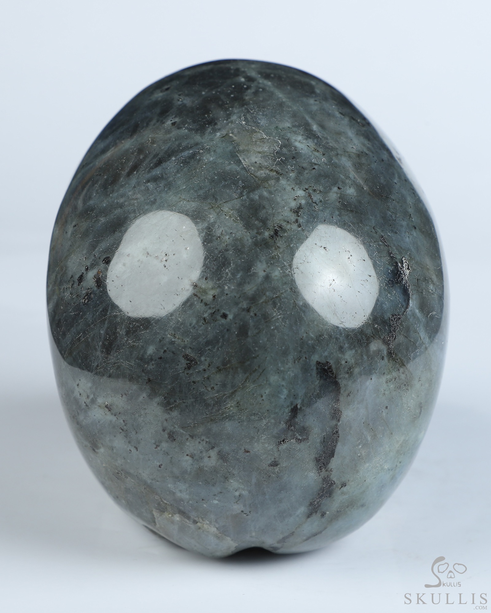 You are looking at a Labradorite skull. The skull is 4.5 inches from front to back.