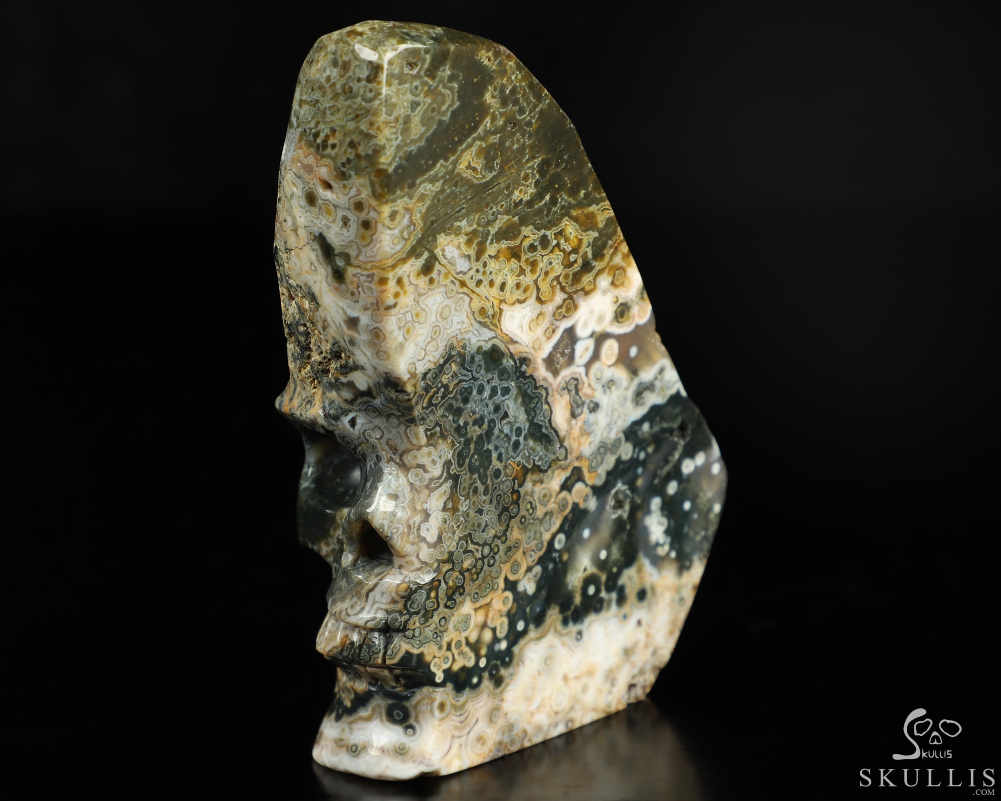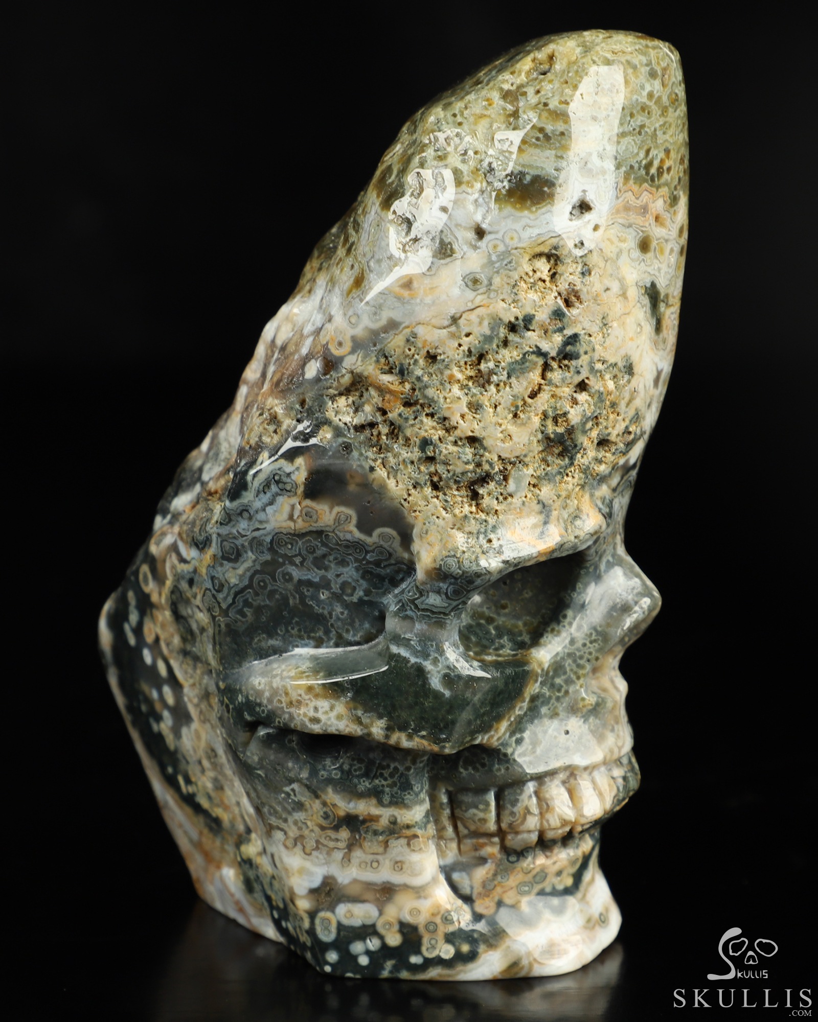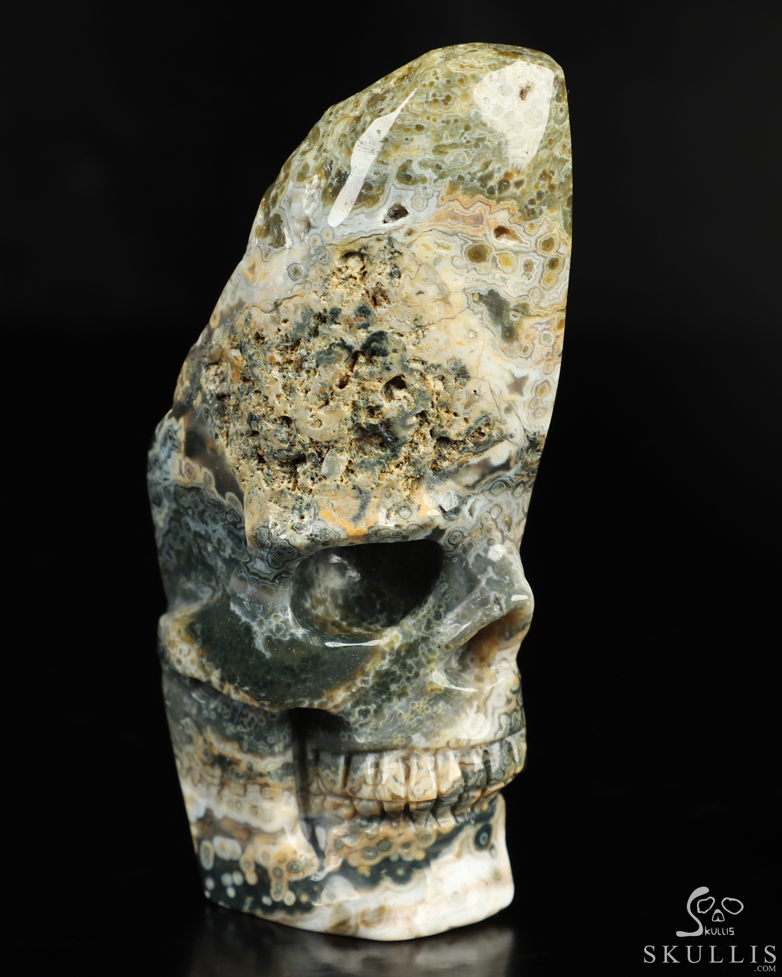 Lifesized 7.0" Ocean Jasper Carved Crystal Skull, Realistic, Crystal Healing