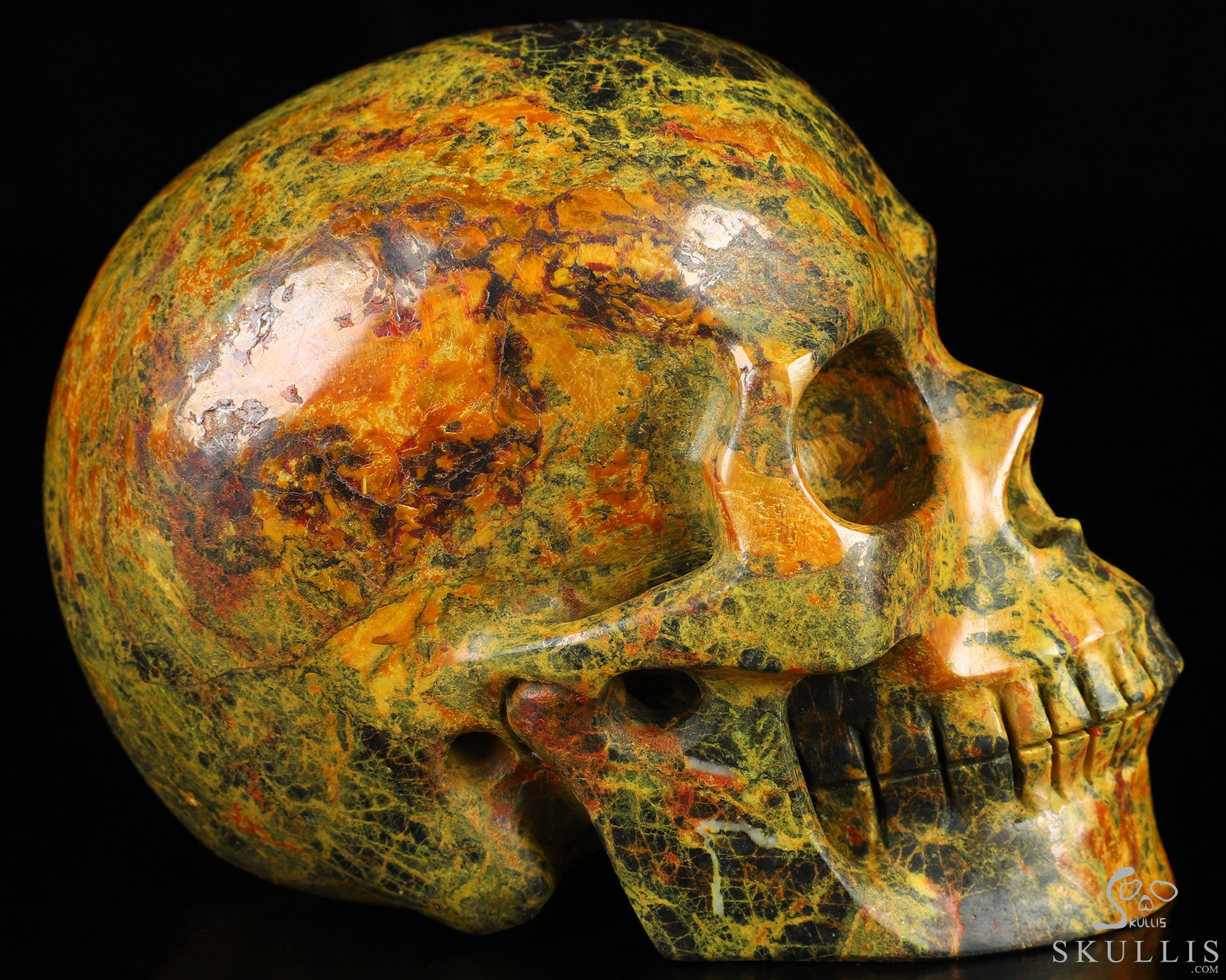 You are looking at a Realgar skull. The skull is 4.5 inches from front to back.