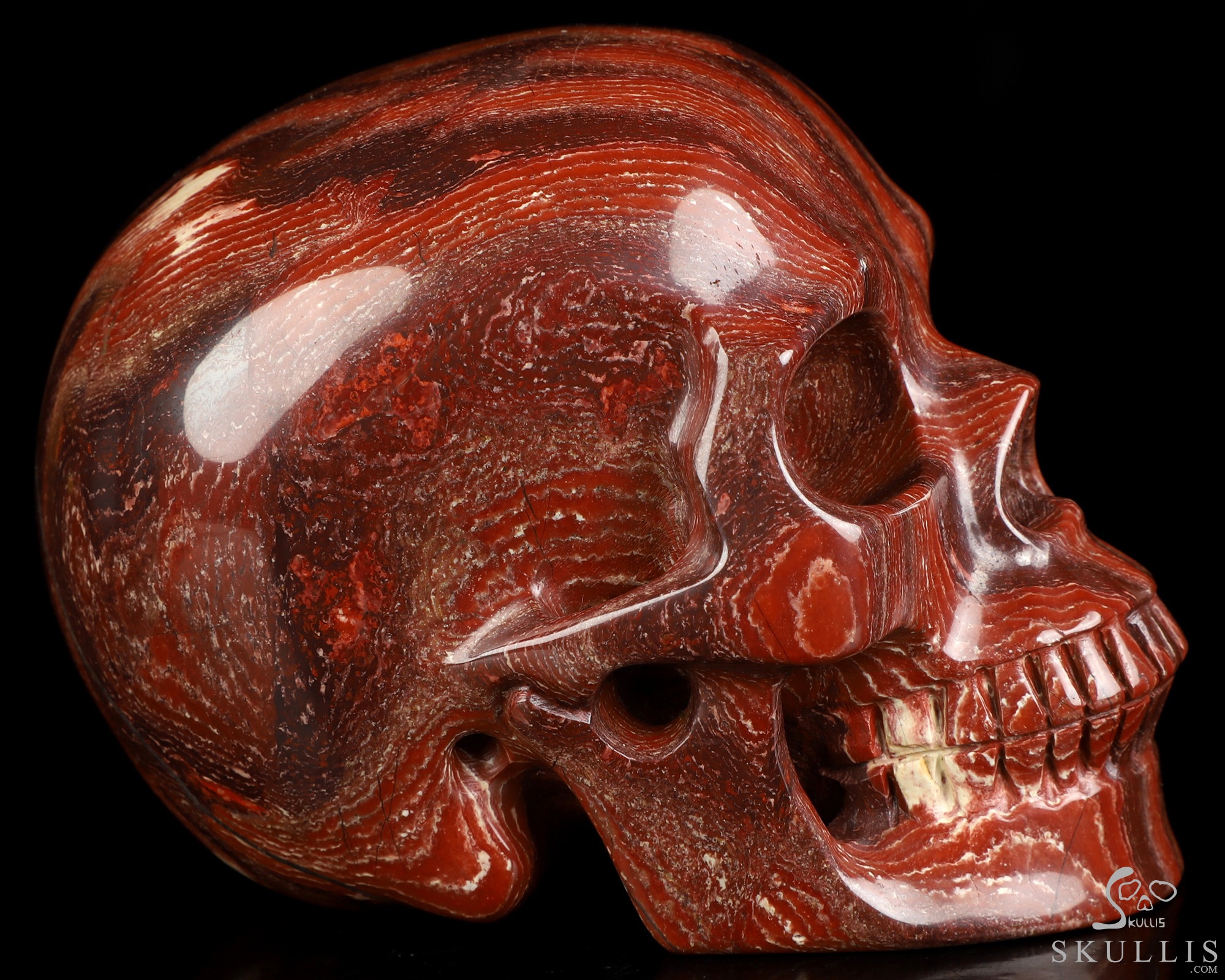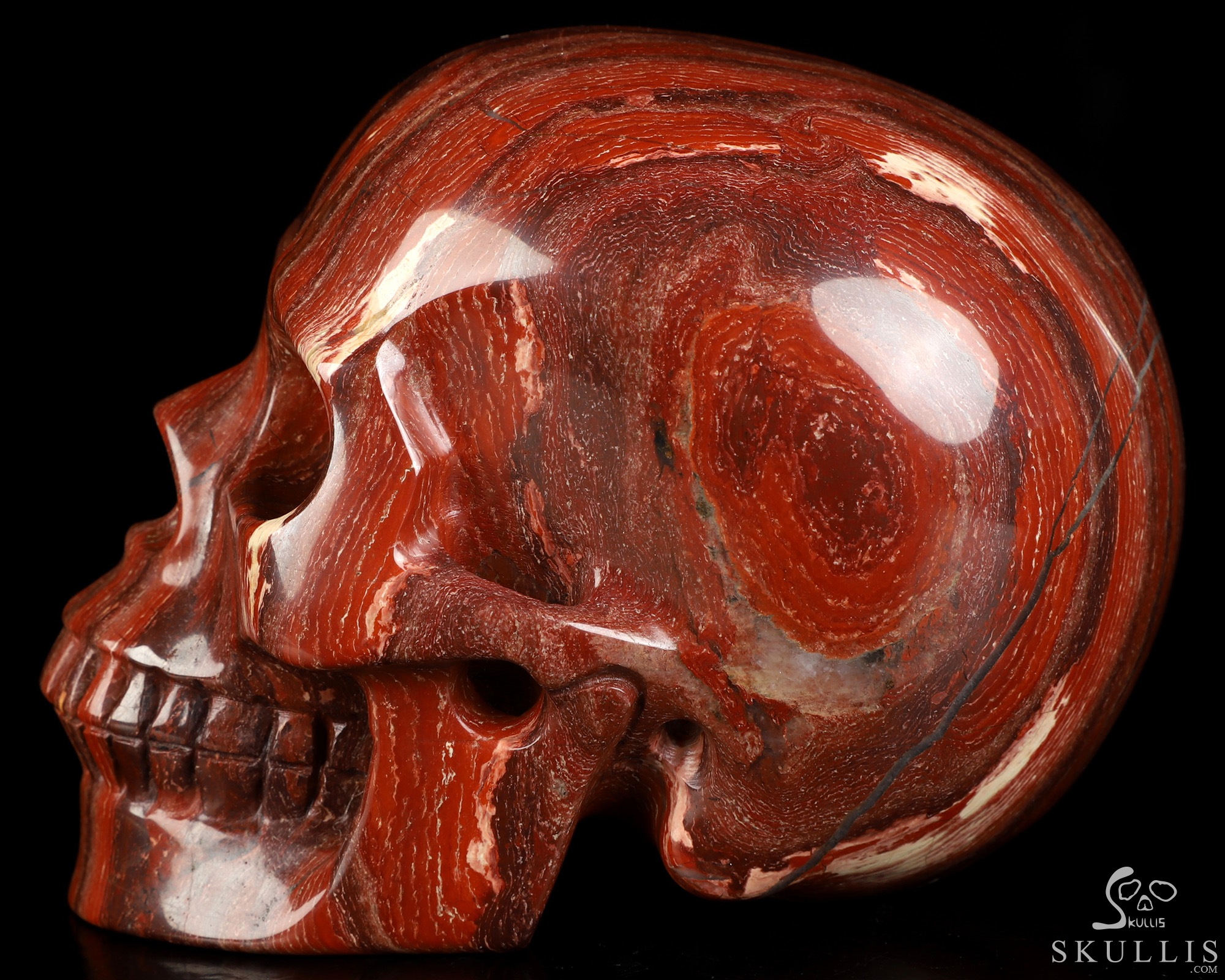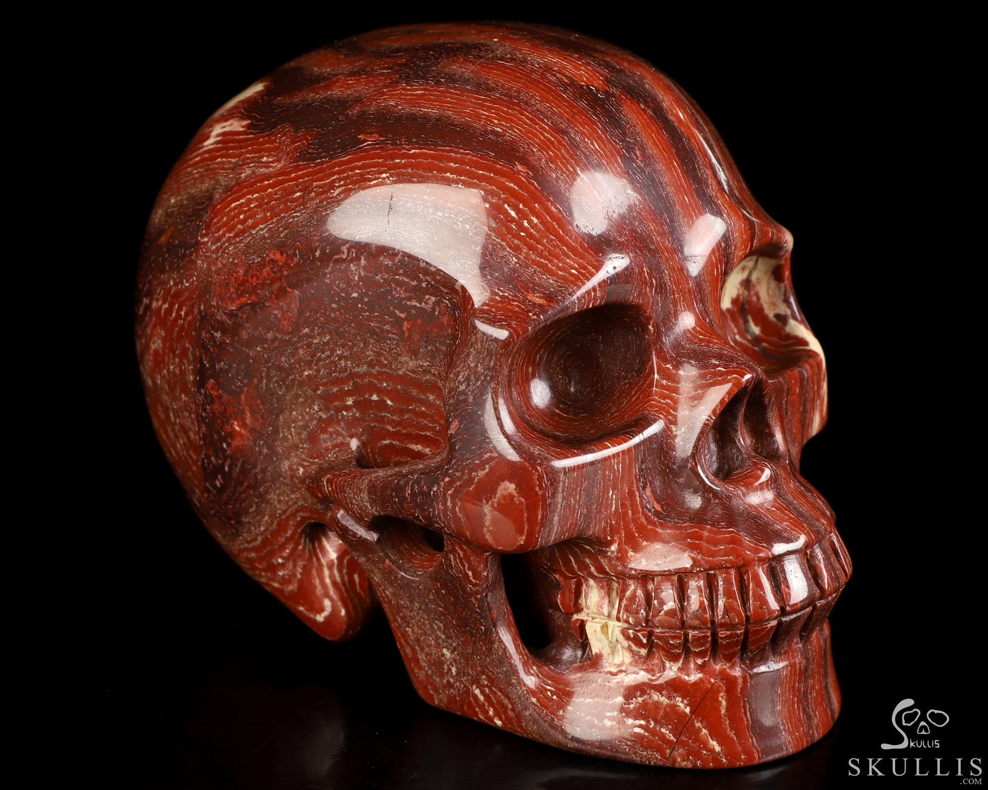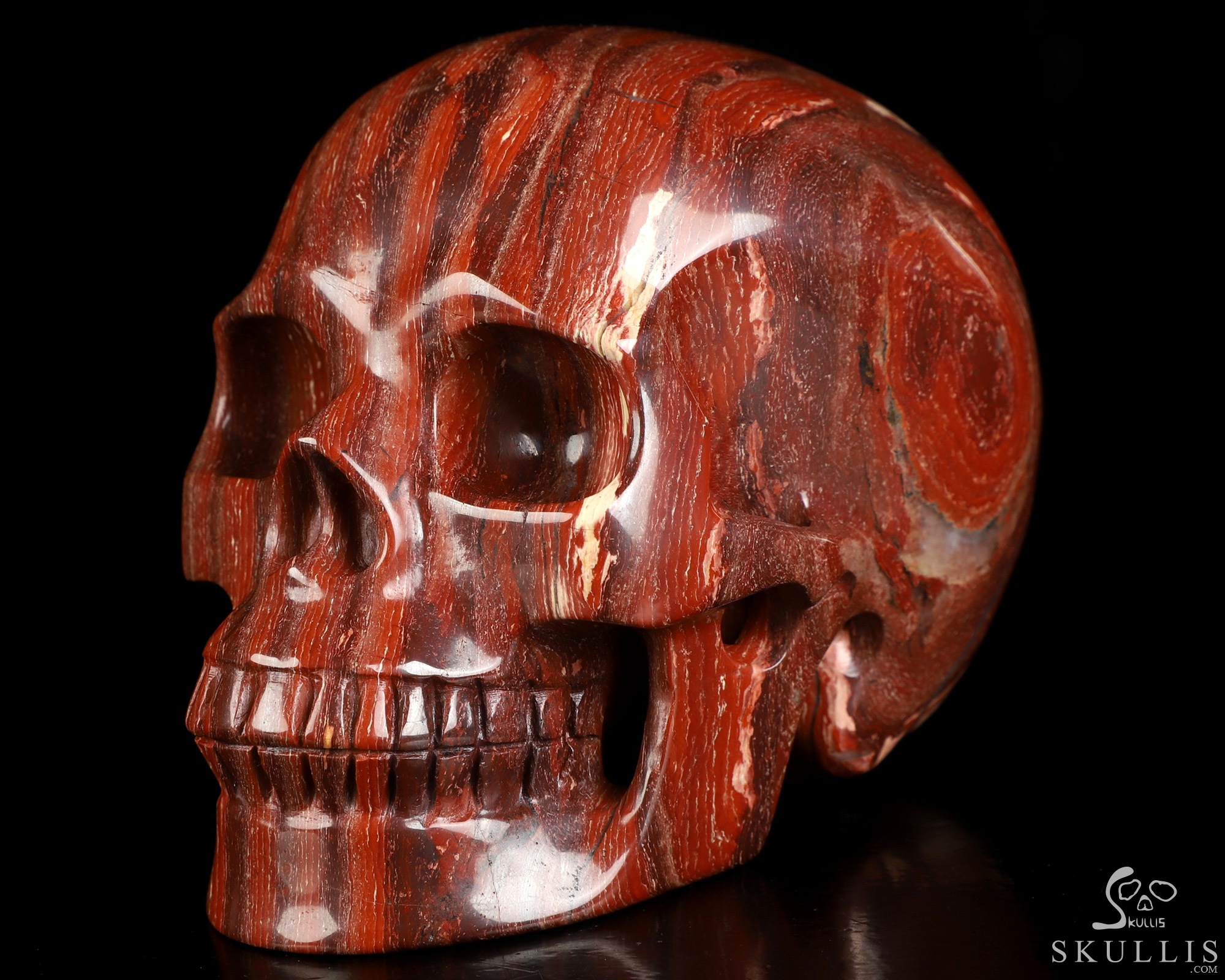 Lifesized 5.9" Red Snake Skin Jasper Hand Carved Crystal Skull, Realistic, Crystal Healing
