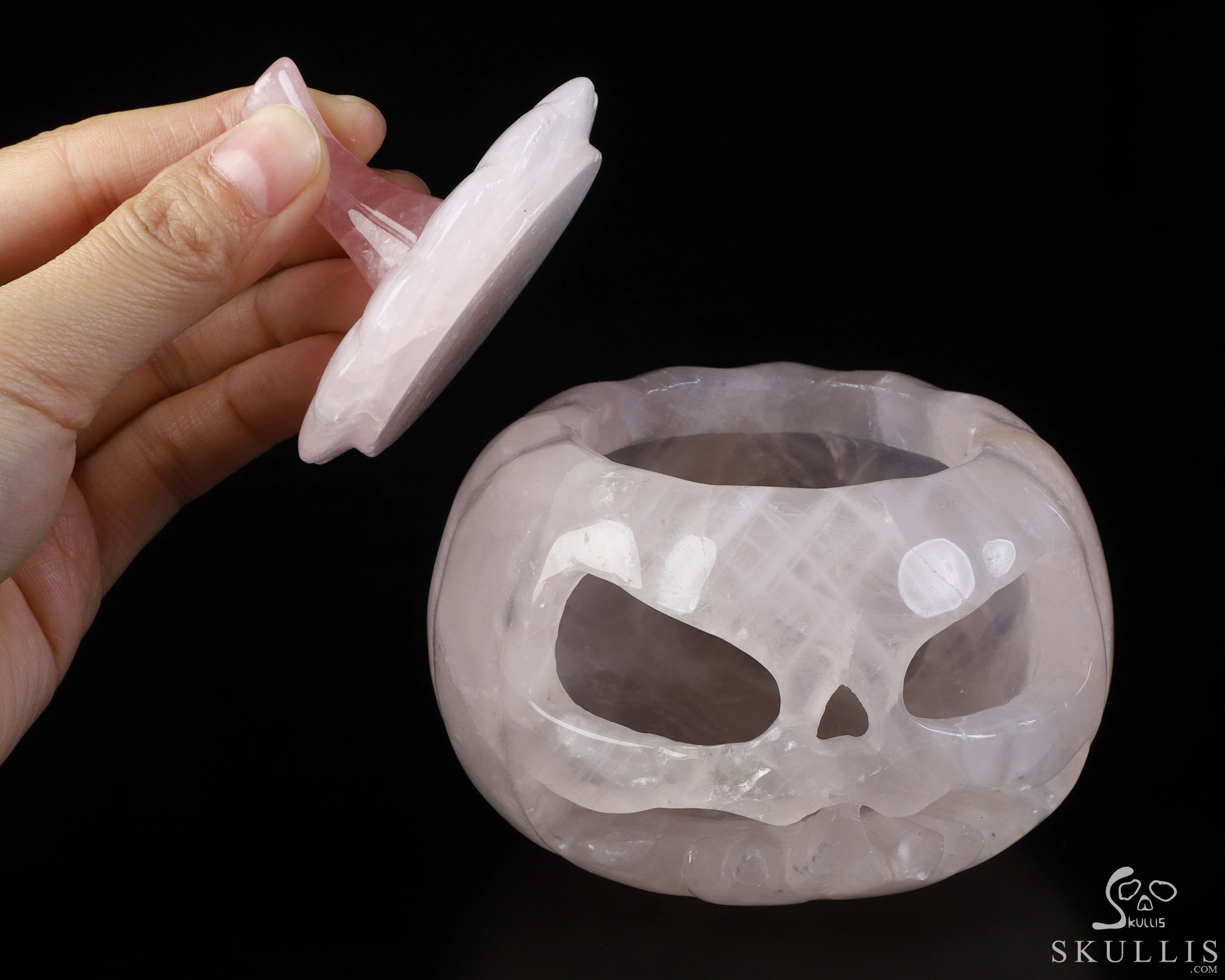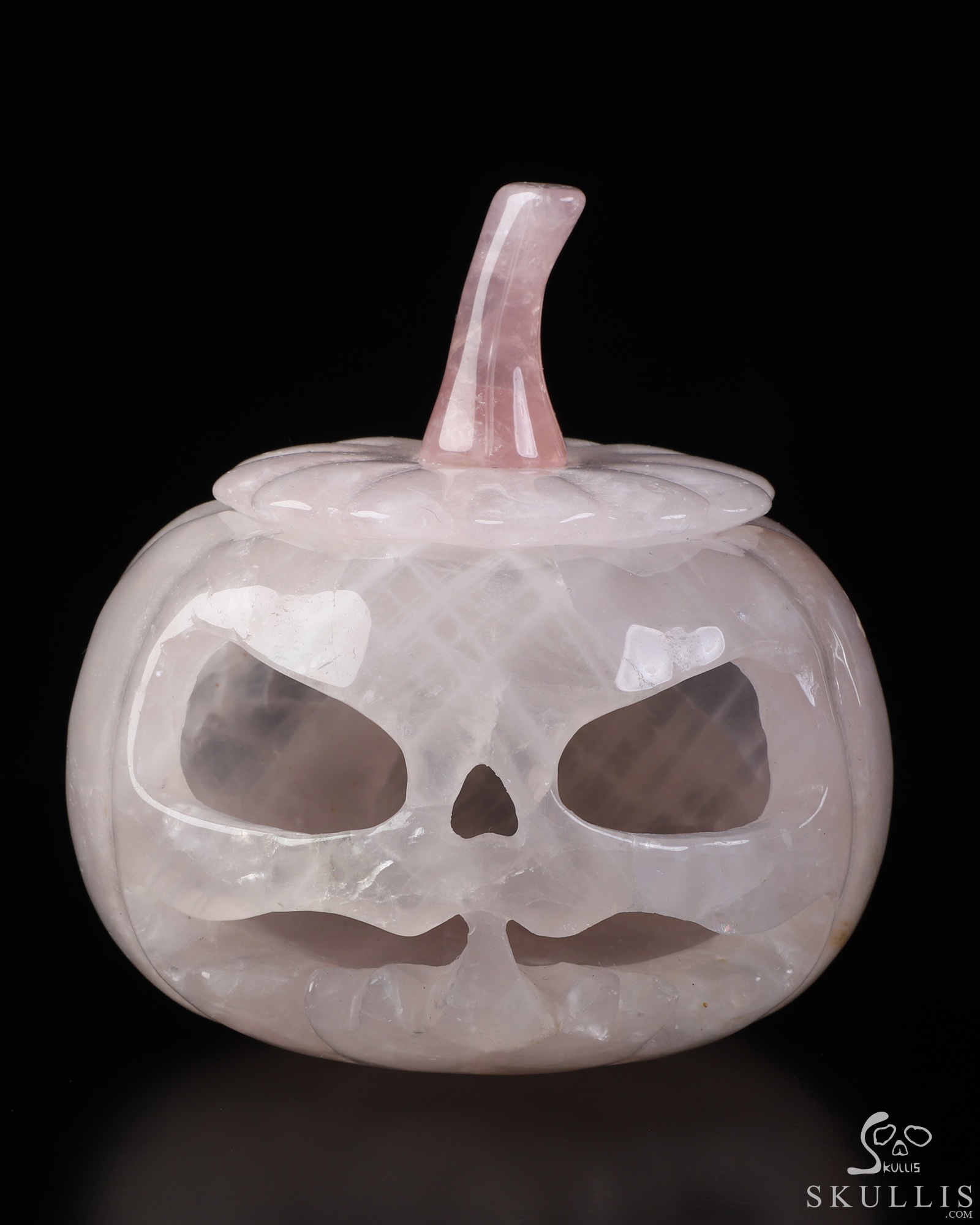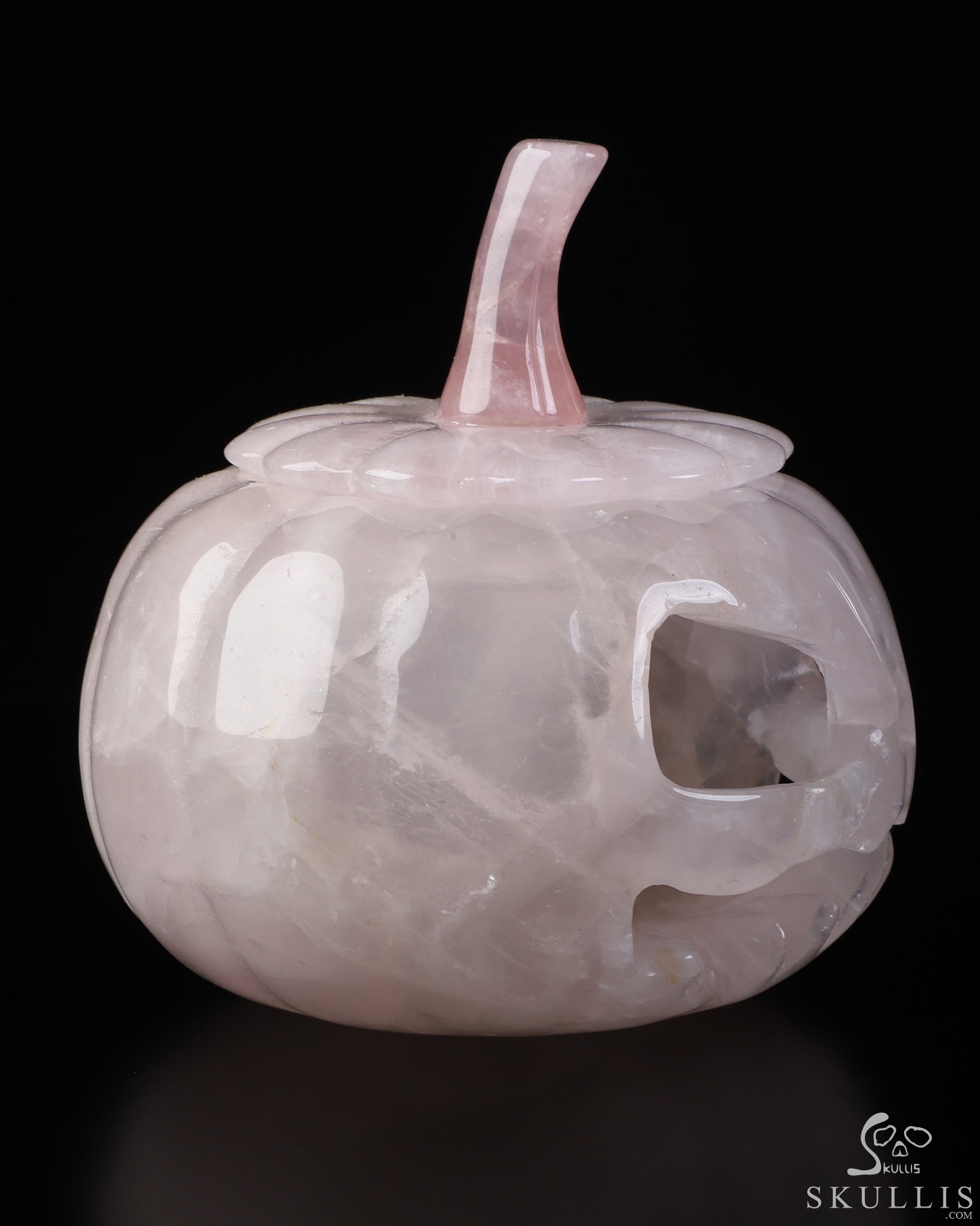 4.5" Rose Quartz Hand Carved Hollow Pumpkin Crystal Skull Sculpture, Crystal Healing