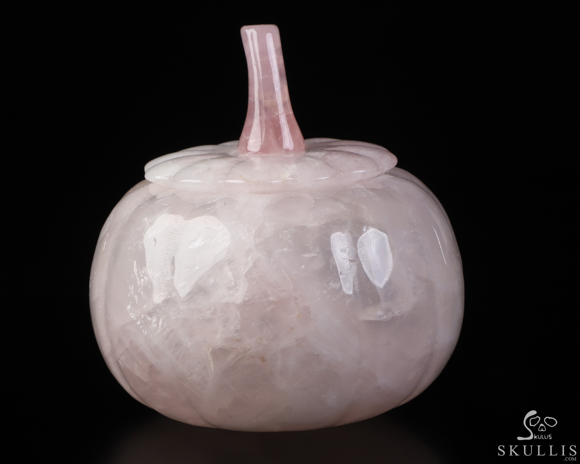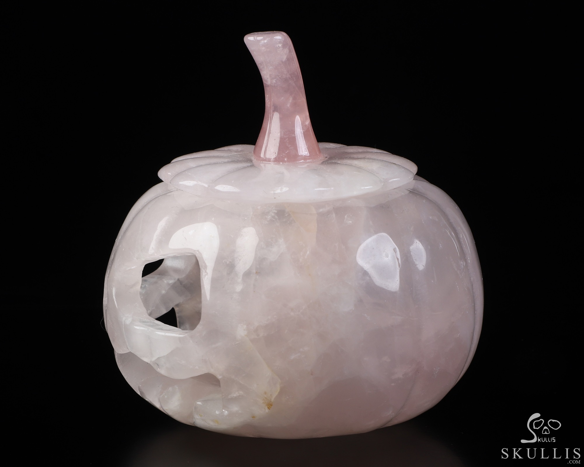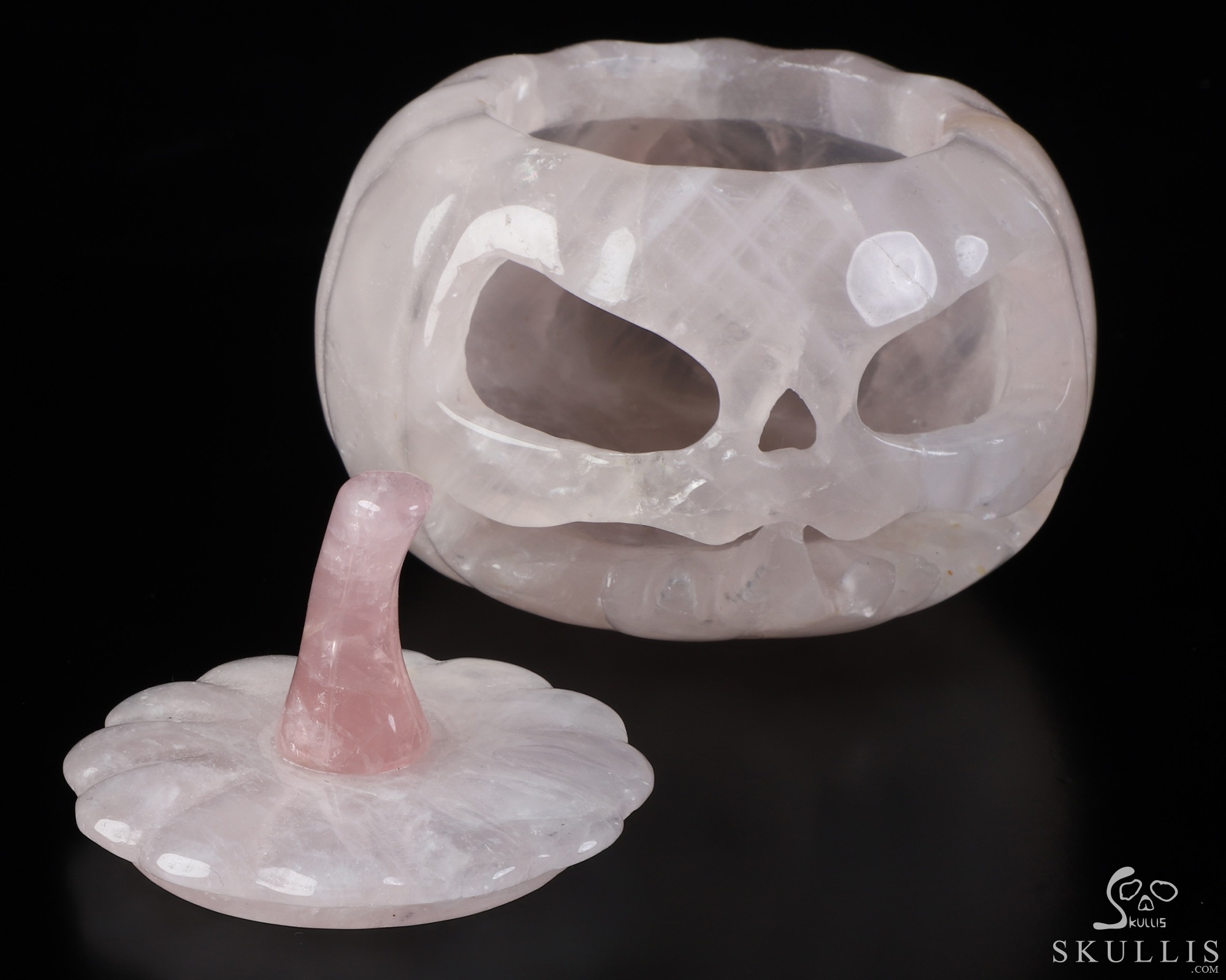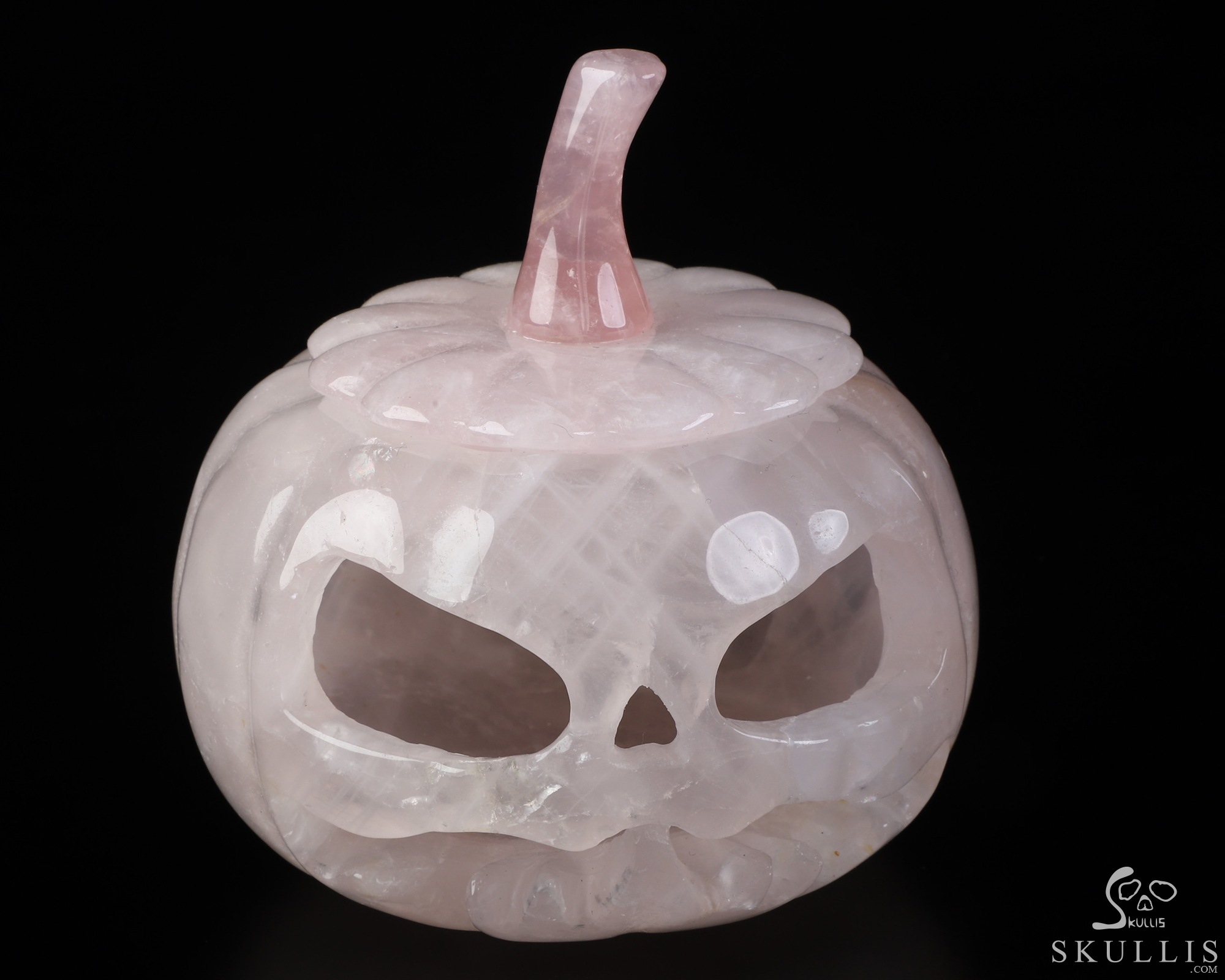 4.5" Rose Quartz Hand Carved Hollow Pumpkin Crystal Skull Sculpture, Crystal Healing