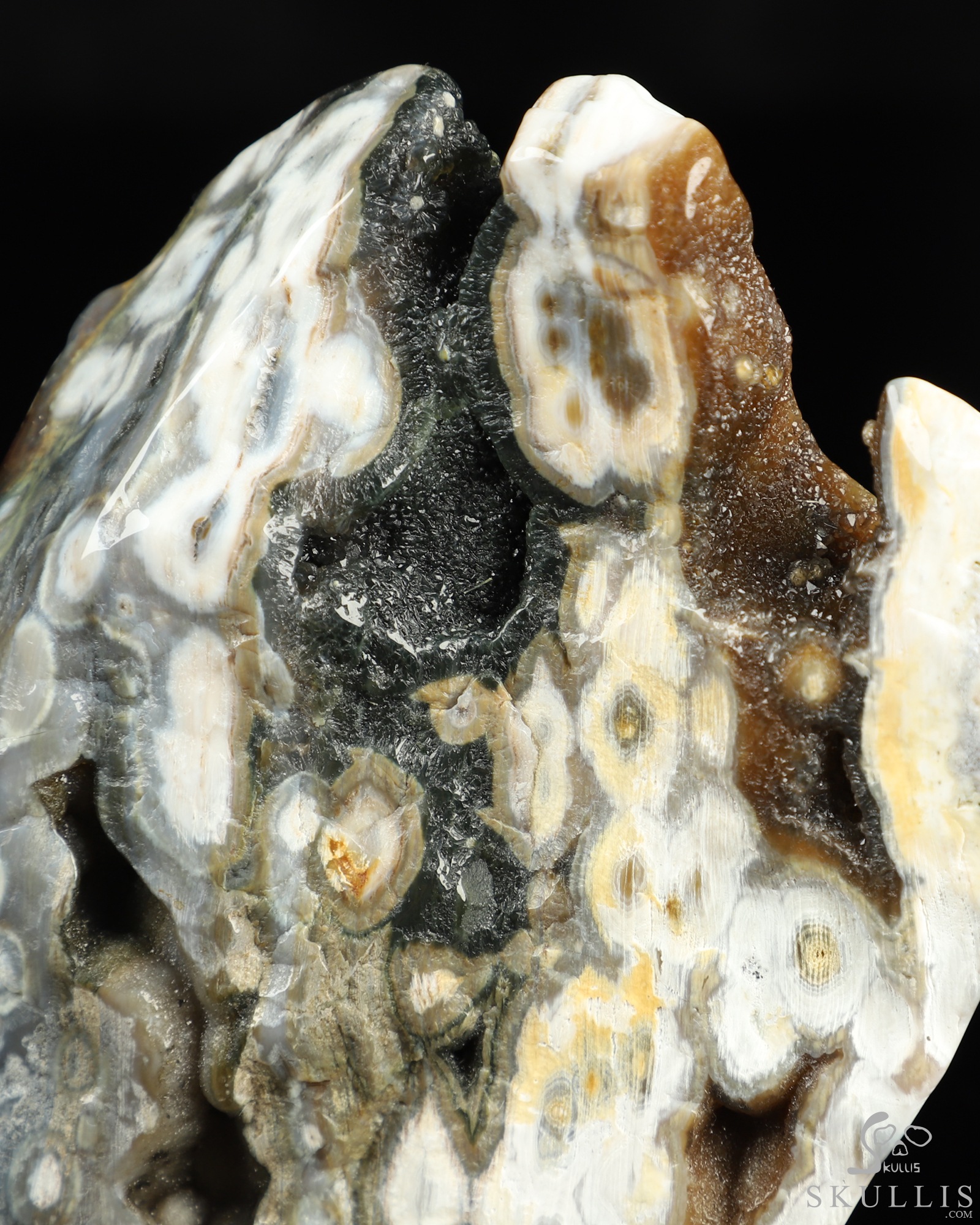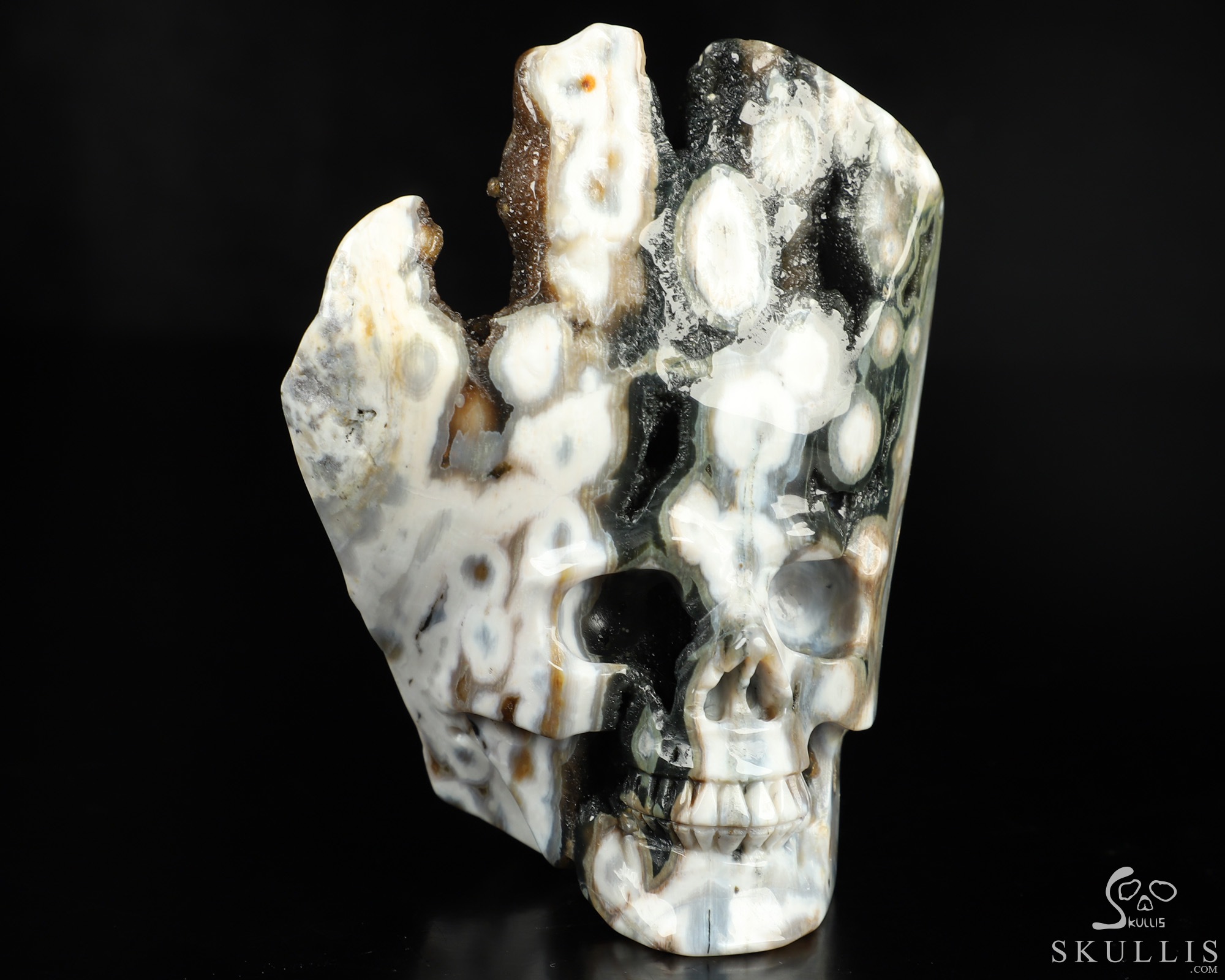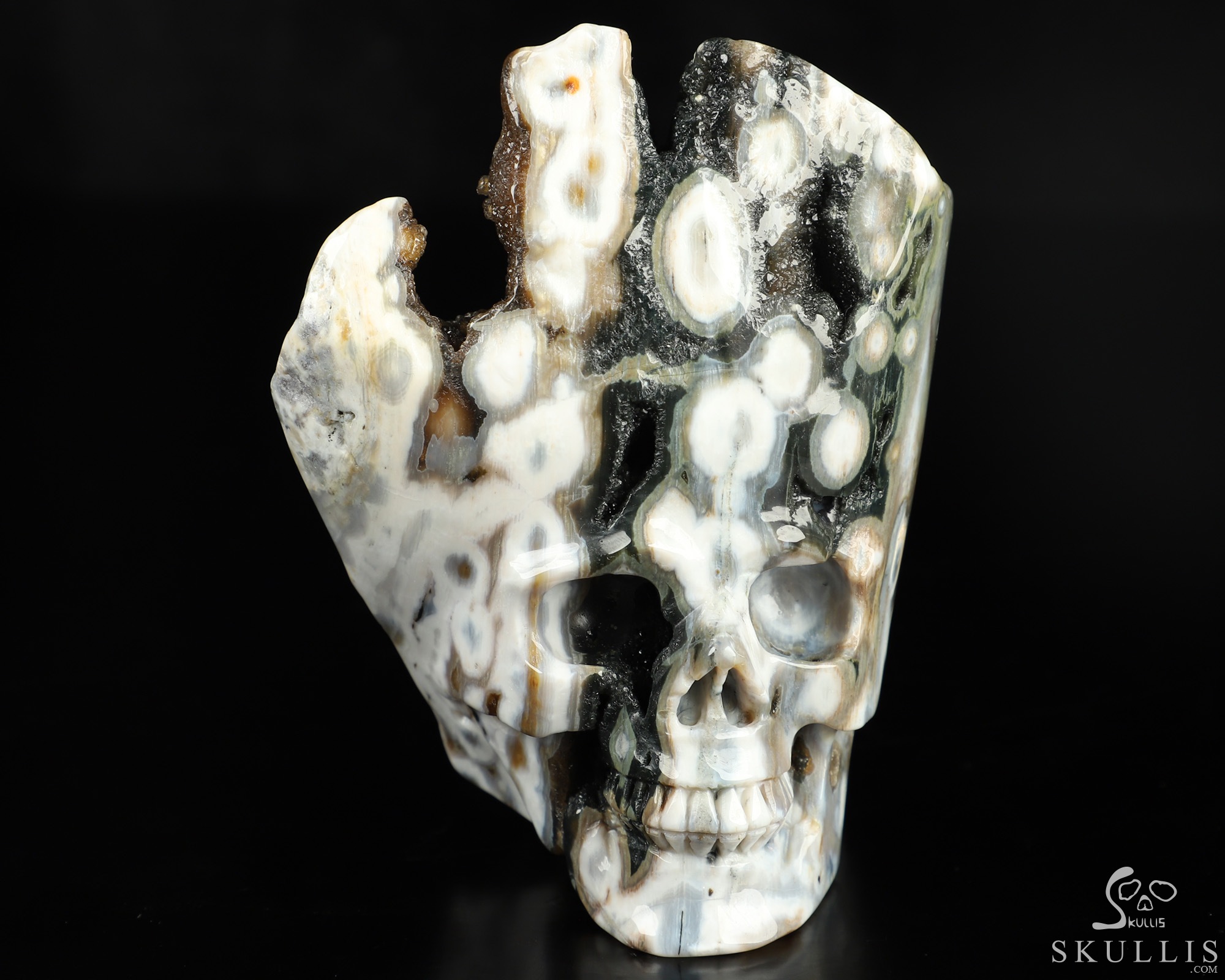 Geode Huge 5.0" Ocean Jasper Carved Crystal Skull & Spine, Realistic, Crystal Healing