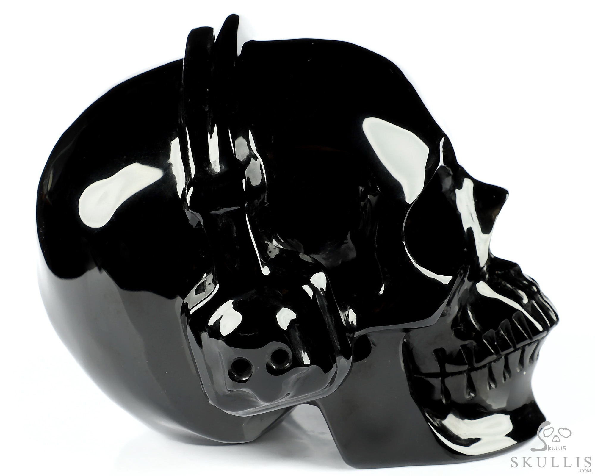 4.8" Black Obsidian Carved Crystal Headset Skull,Realistic, Crystal Healing