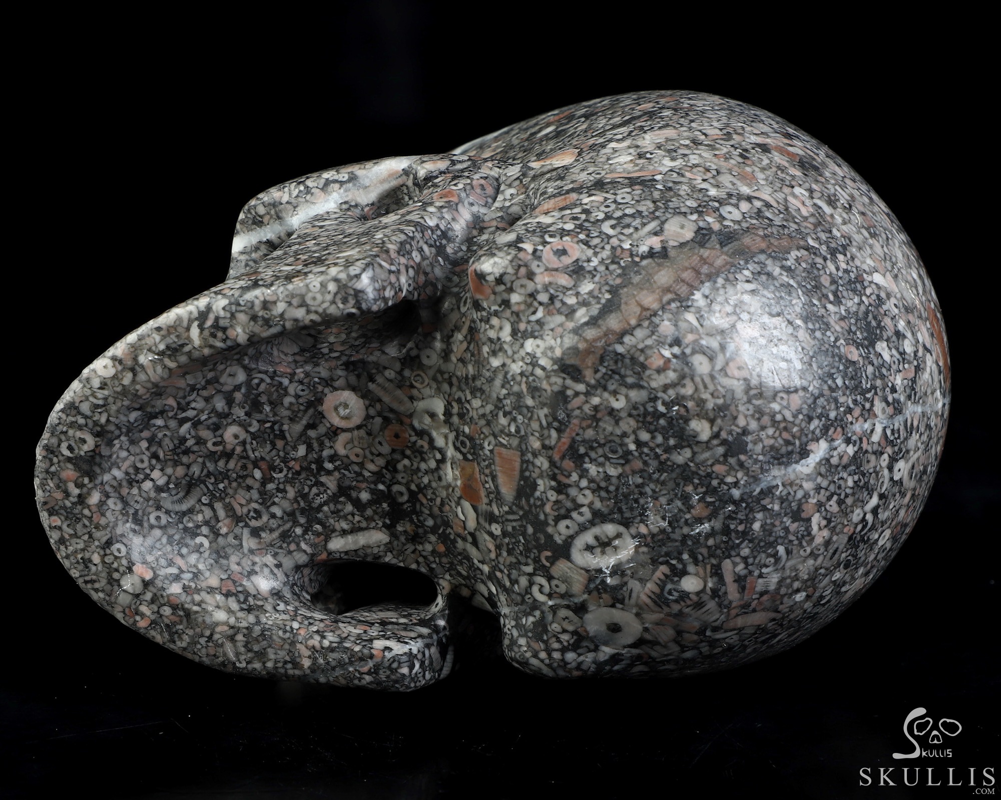You are looking at a Crinoid Fossil skull. The skull is 4.8 inches from front to back.