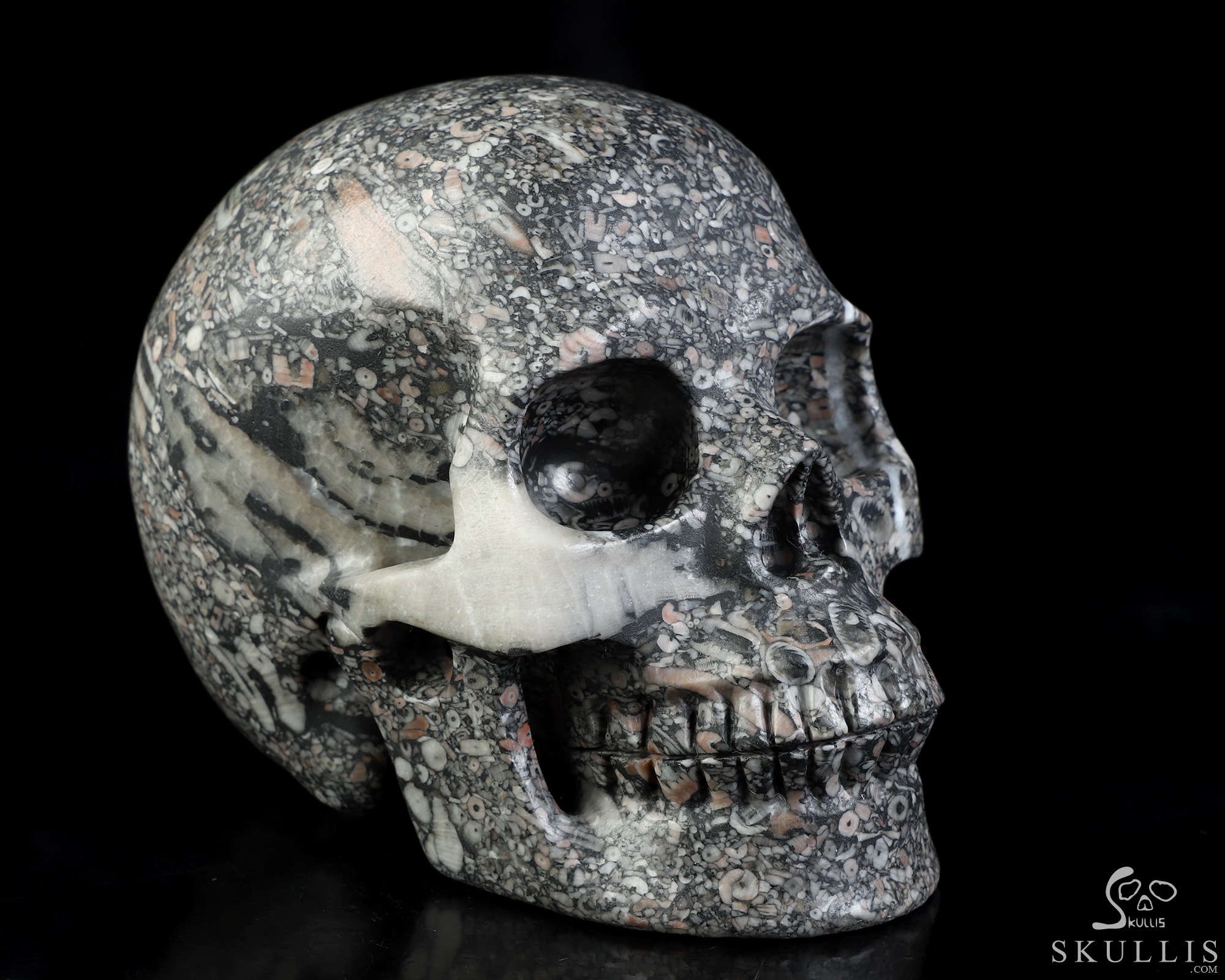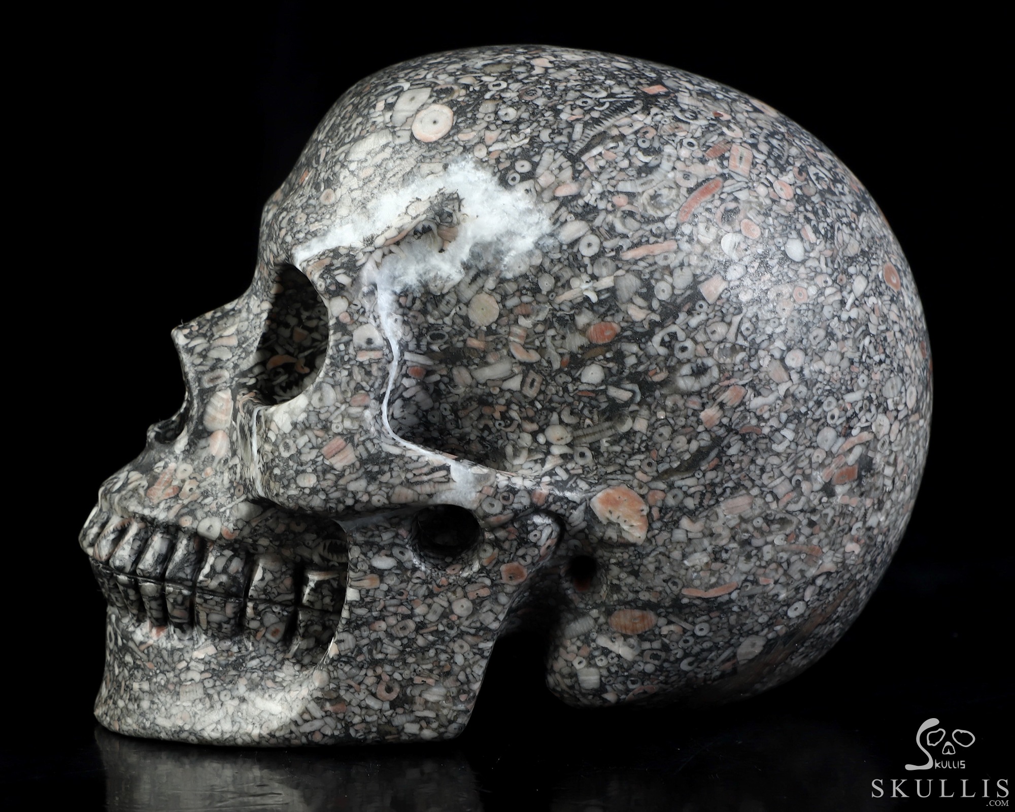 5.0" Crinoid Fossil Hand Carved Crystal Skull, Realistic, Crystal Healing