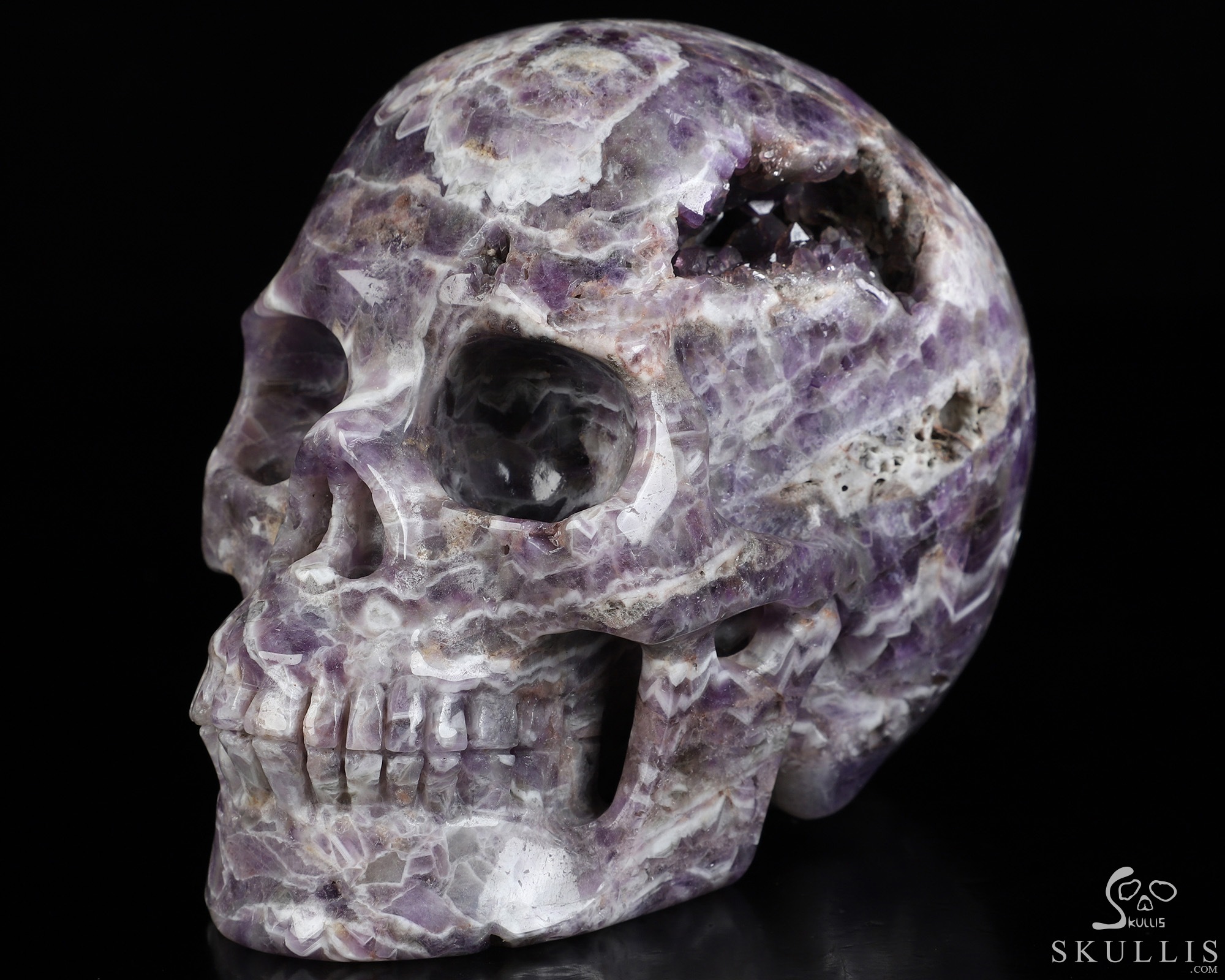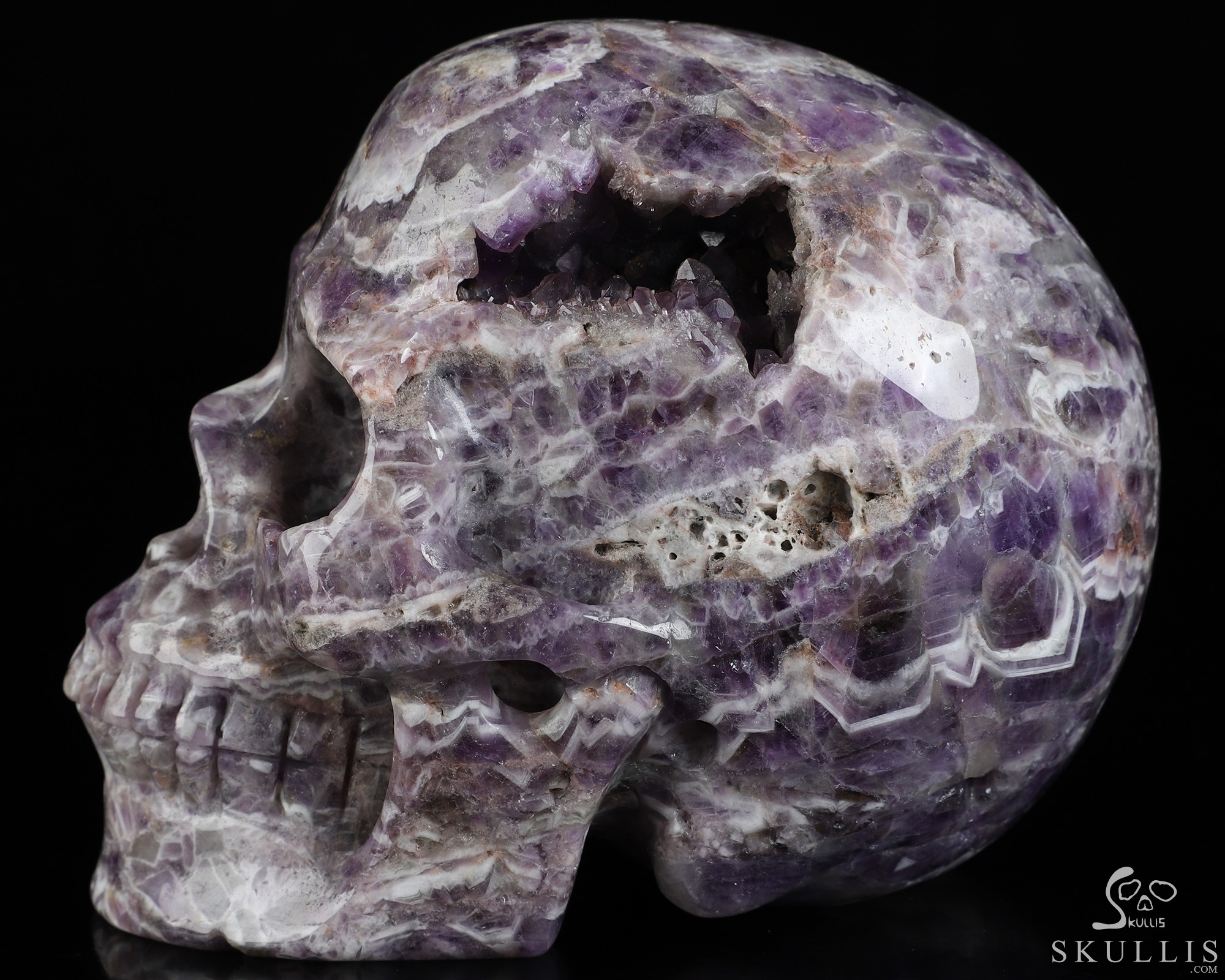 4.8" Dream Chevron Amethyst Geode Hand Carved Crystal Skull, Realistic, Crystal Healing
