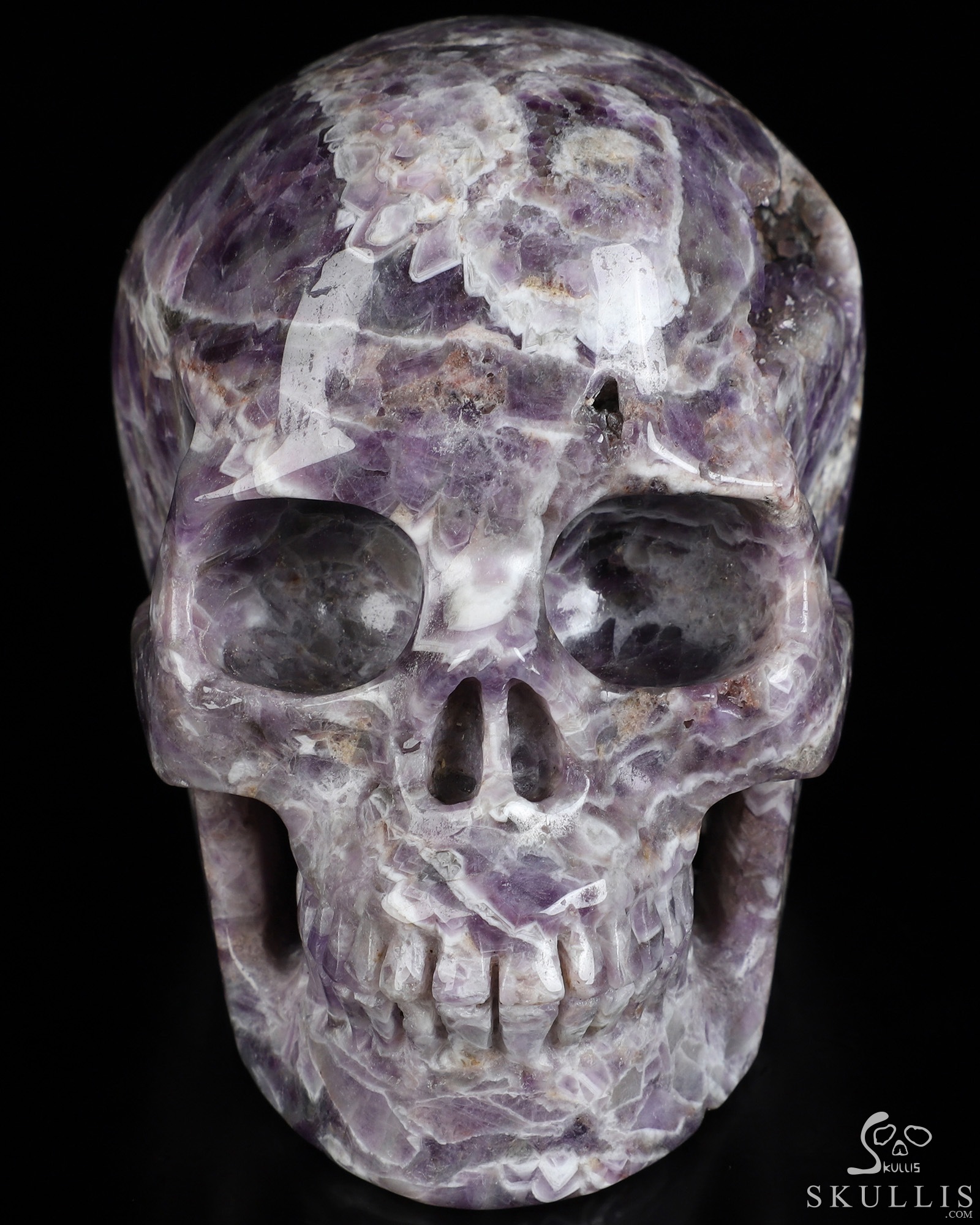 9.4" Dream Chevron Amethyst Hand Carved Crystal Skull Fine Art Sculpture, Crystal Healing