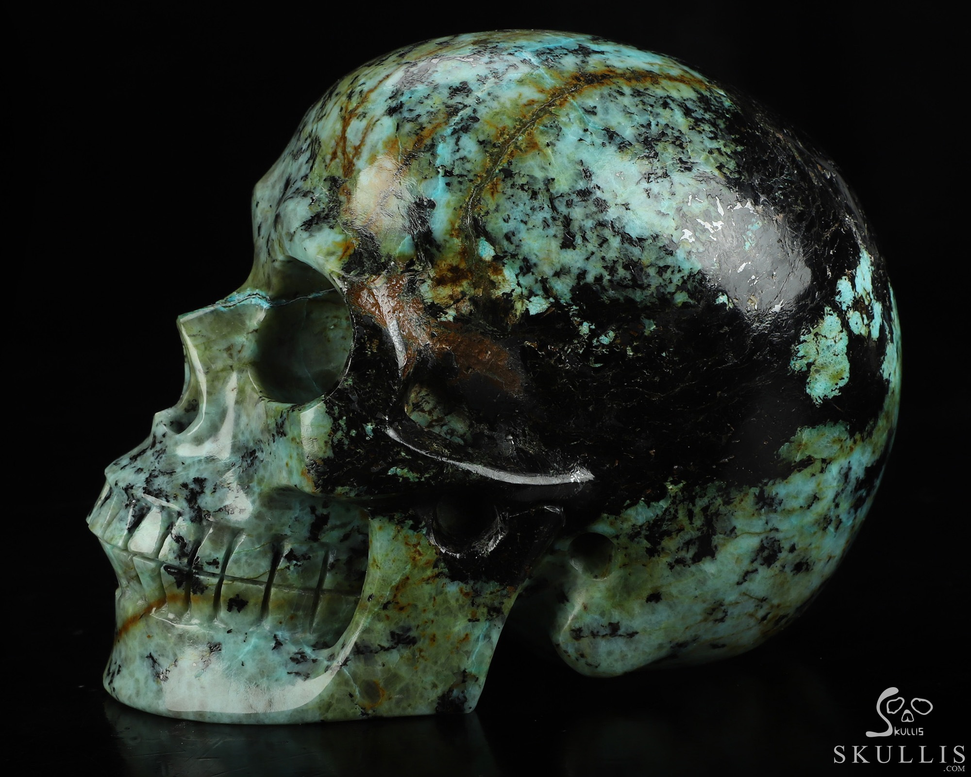 Lifesized 6.5" African Turquoise Hand Carved Crystal Skull, Super Realistic, Crystal Healing