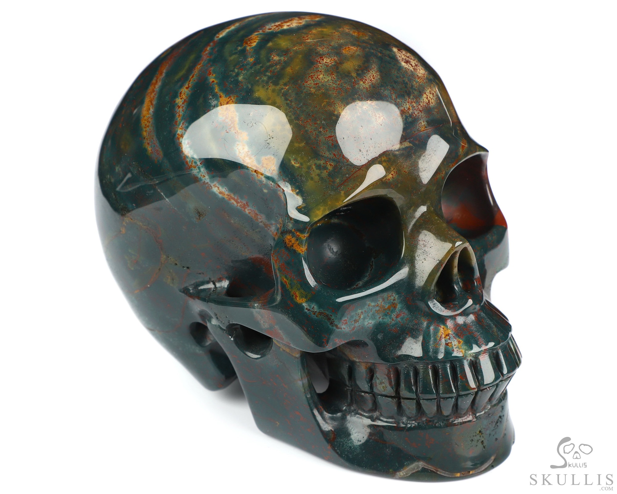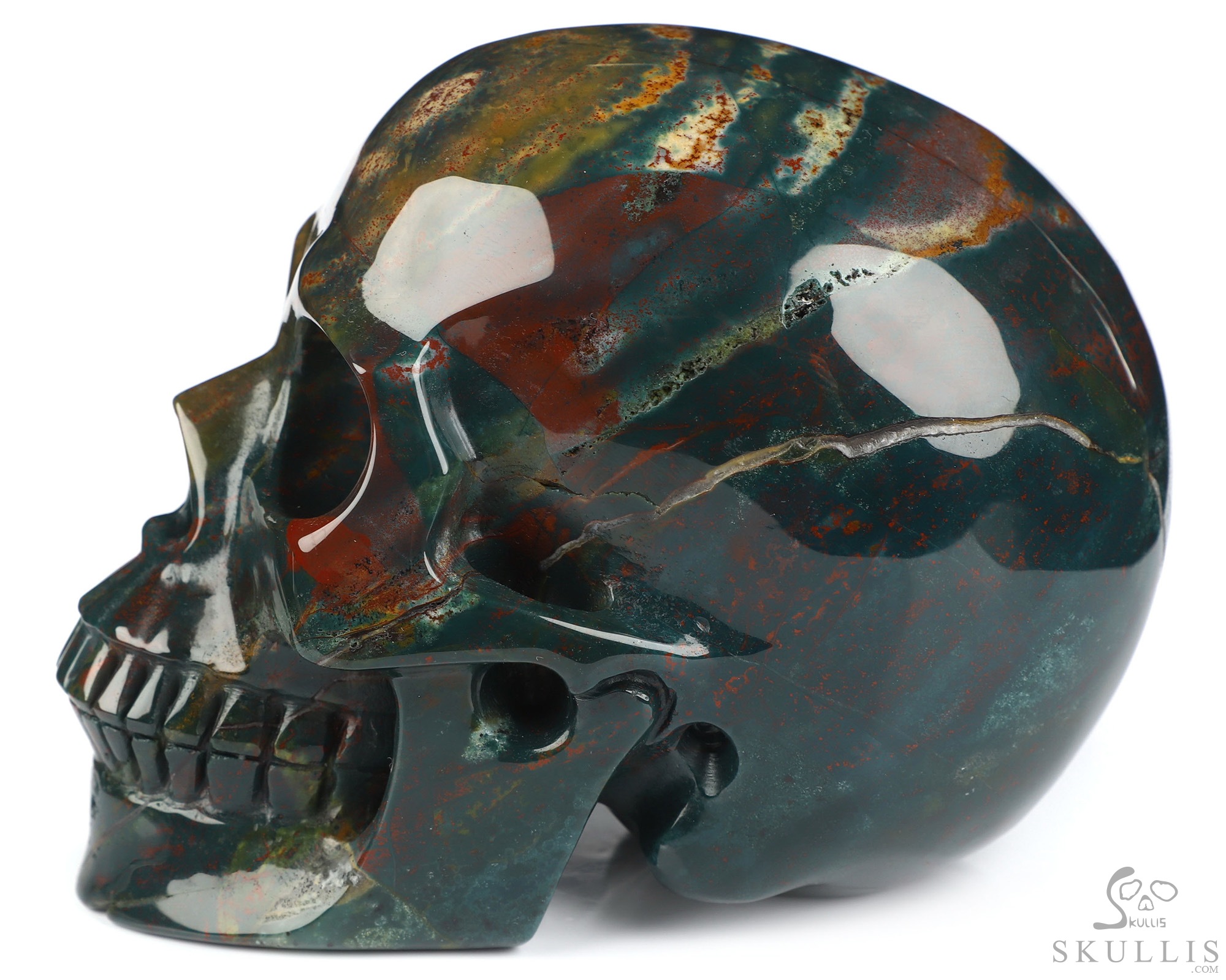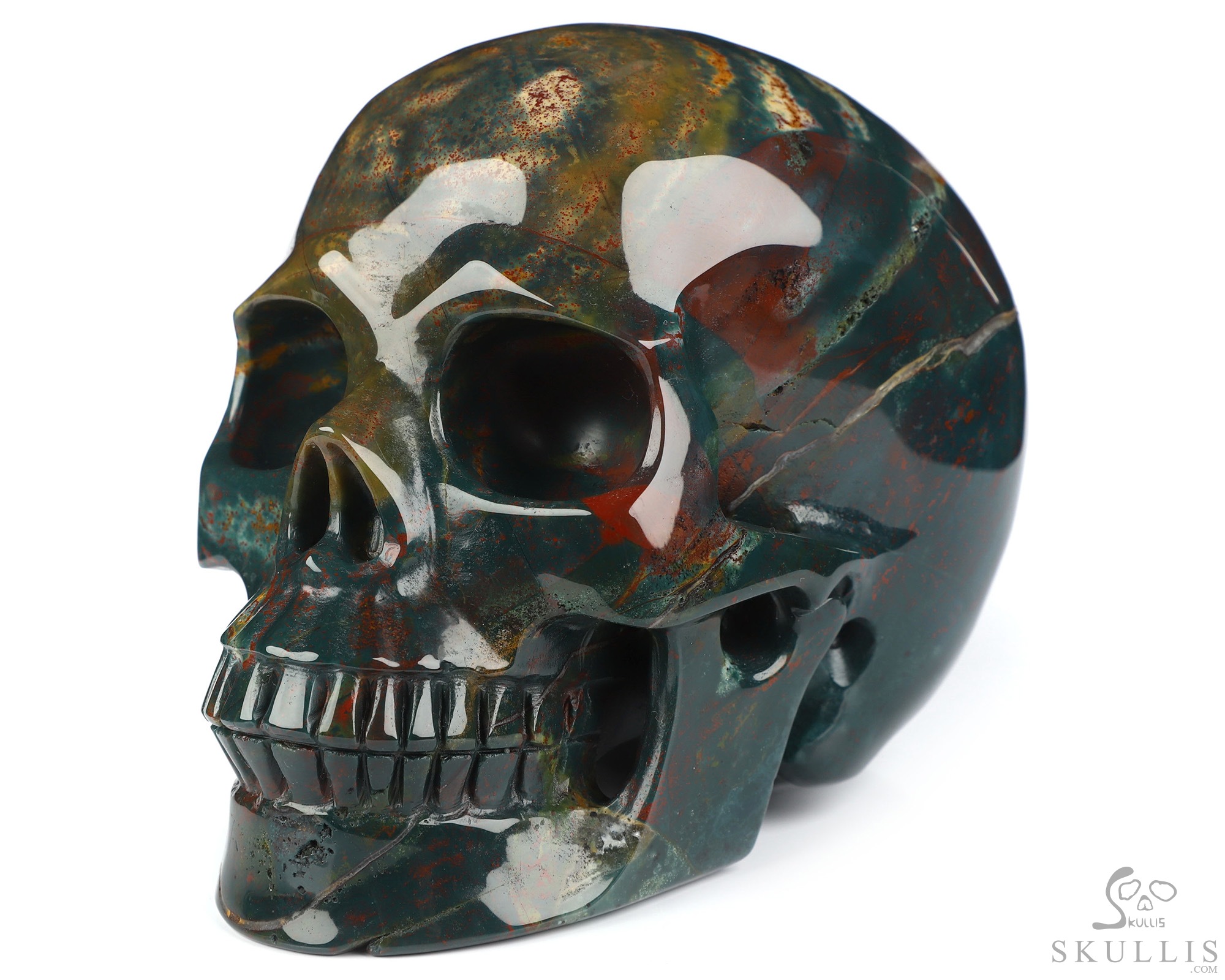 Gemstone Huge 5.1" Bloodstone Carved Crystal Skull, Super Realistic