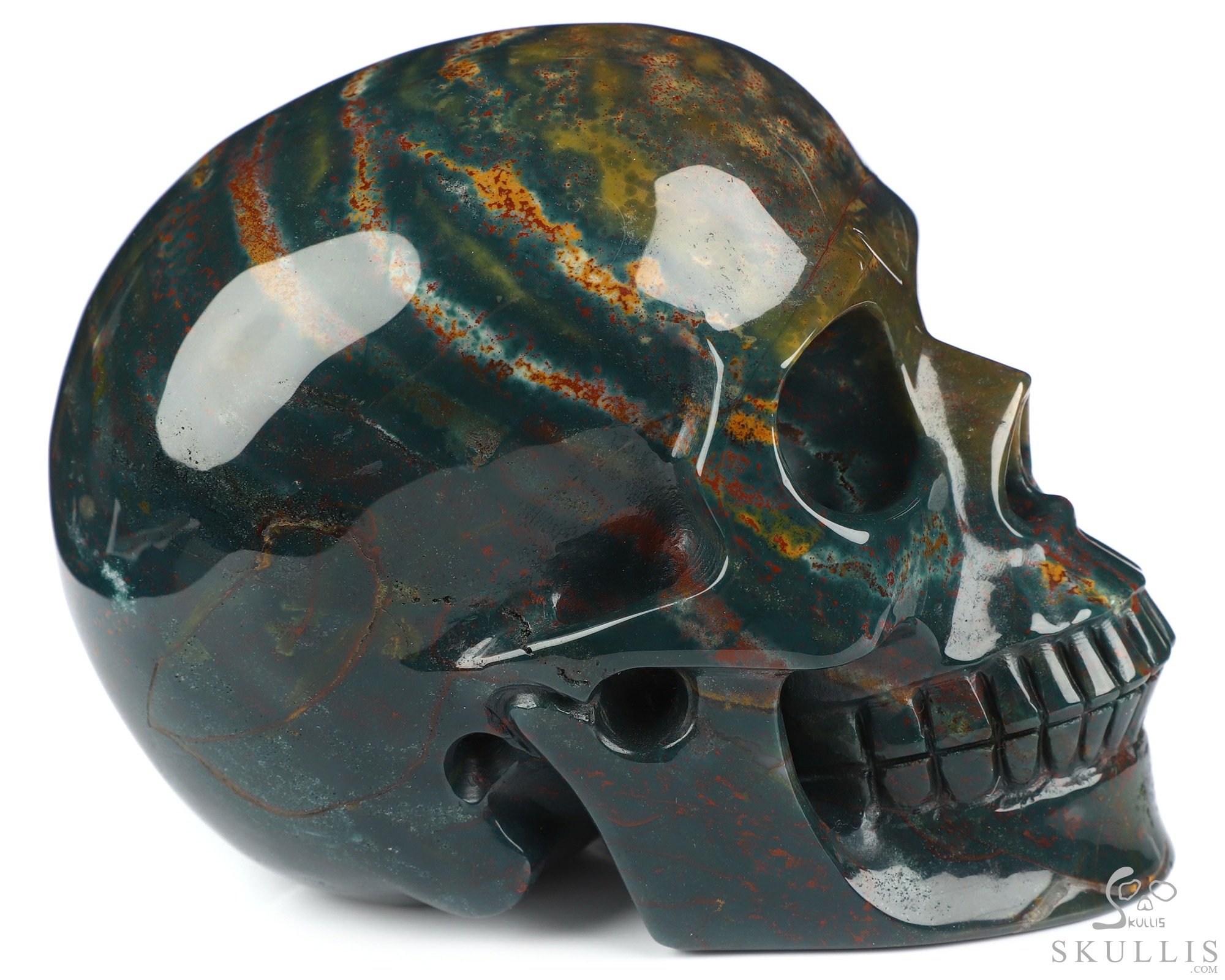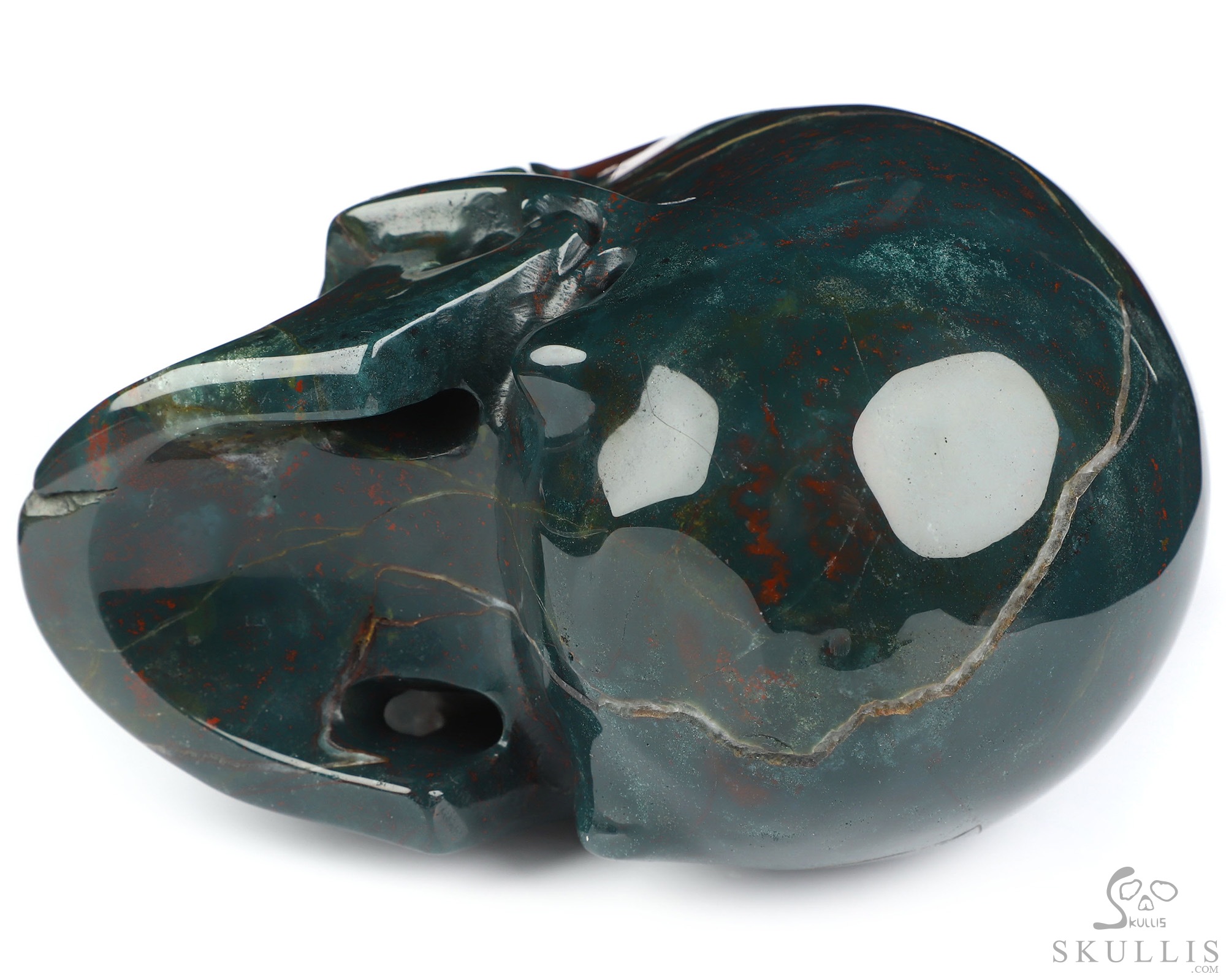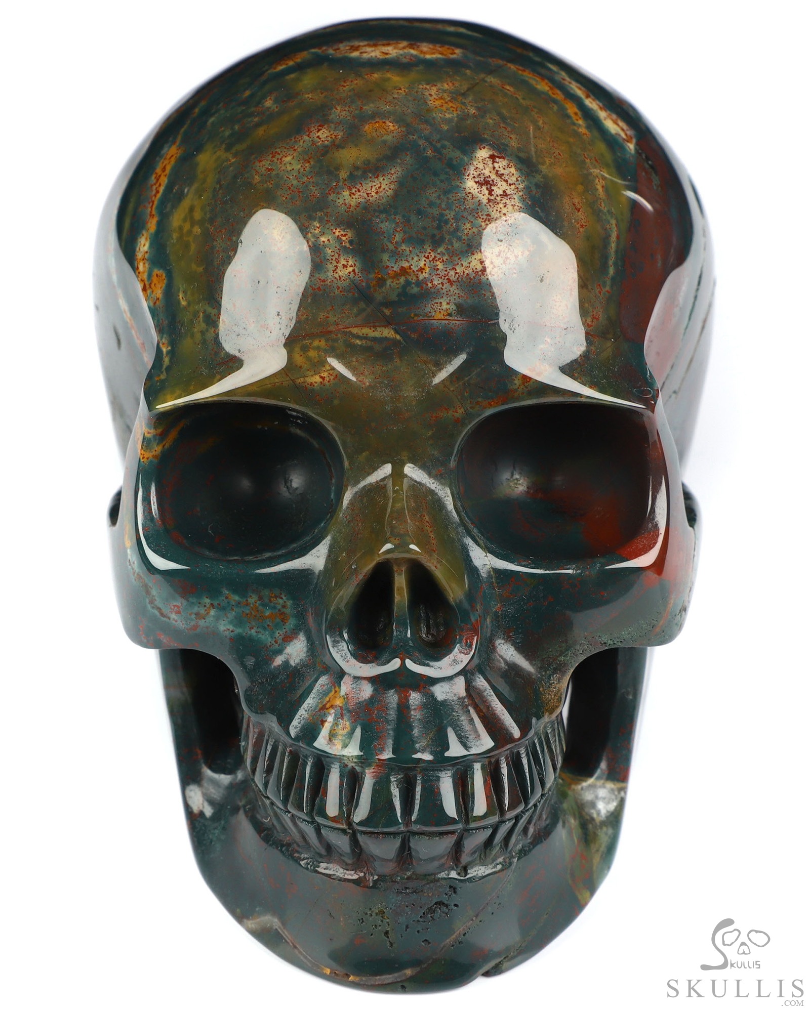 Gemstone Huge 5.1" Bloodstone Carved Crystal Skull, Super Realistic