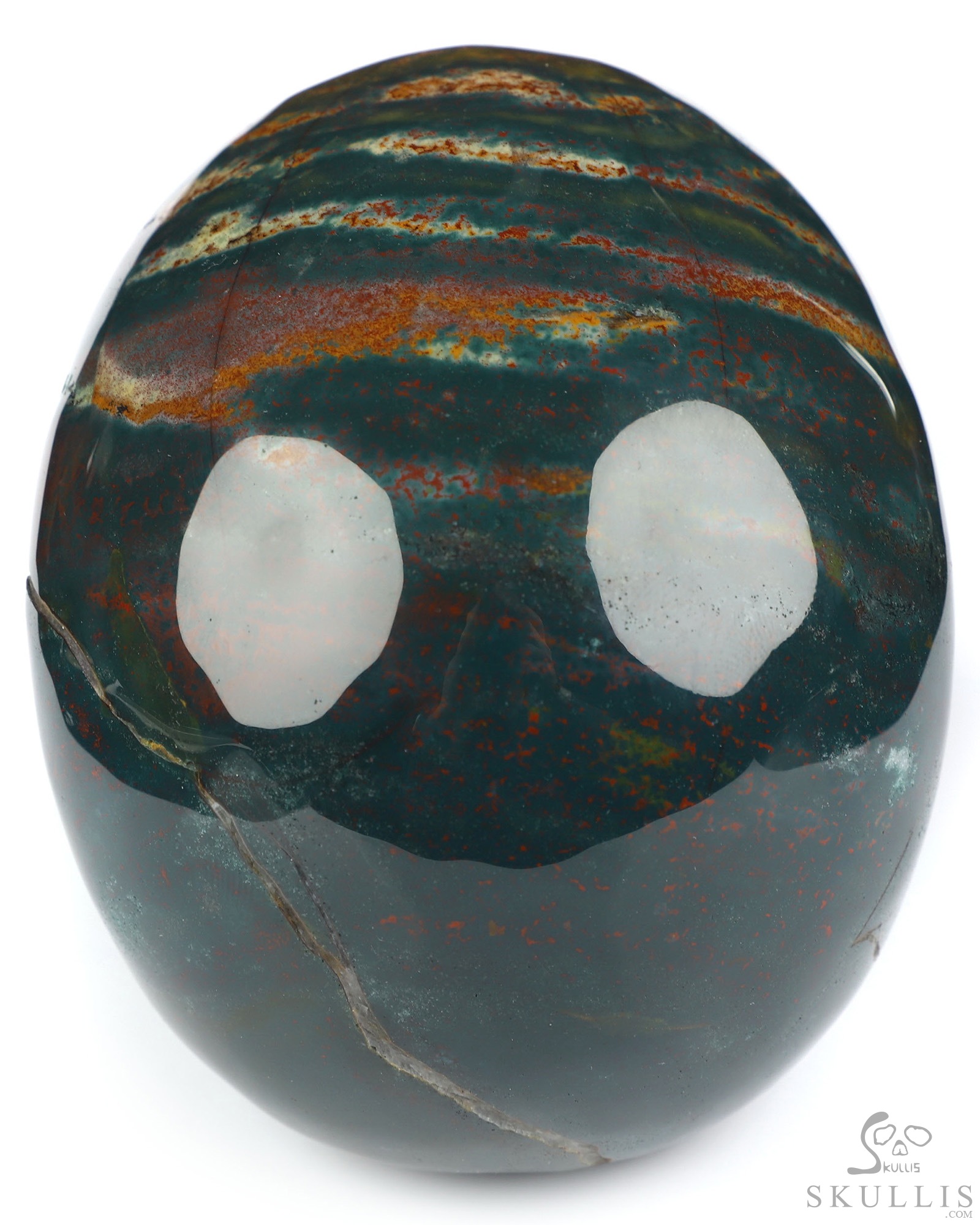 You are looking at a Bloodstone skull. The skull is 4.9 inches from front to back.