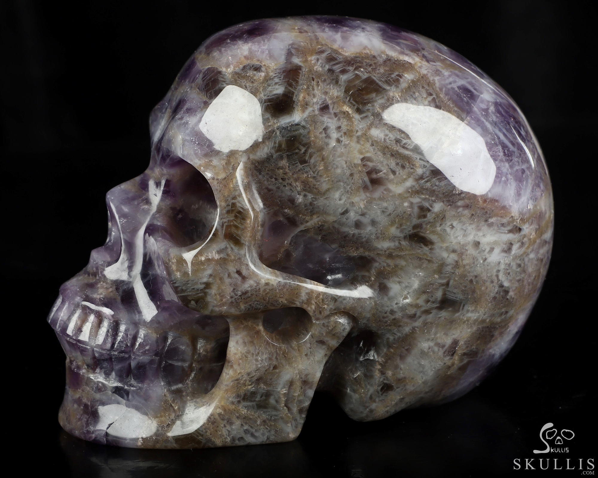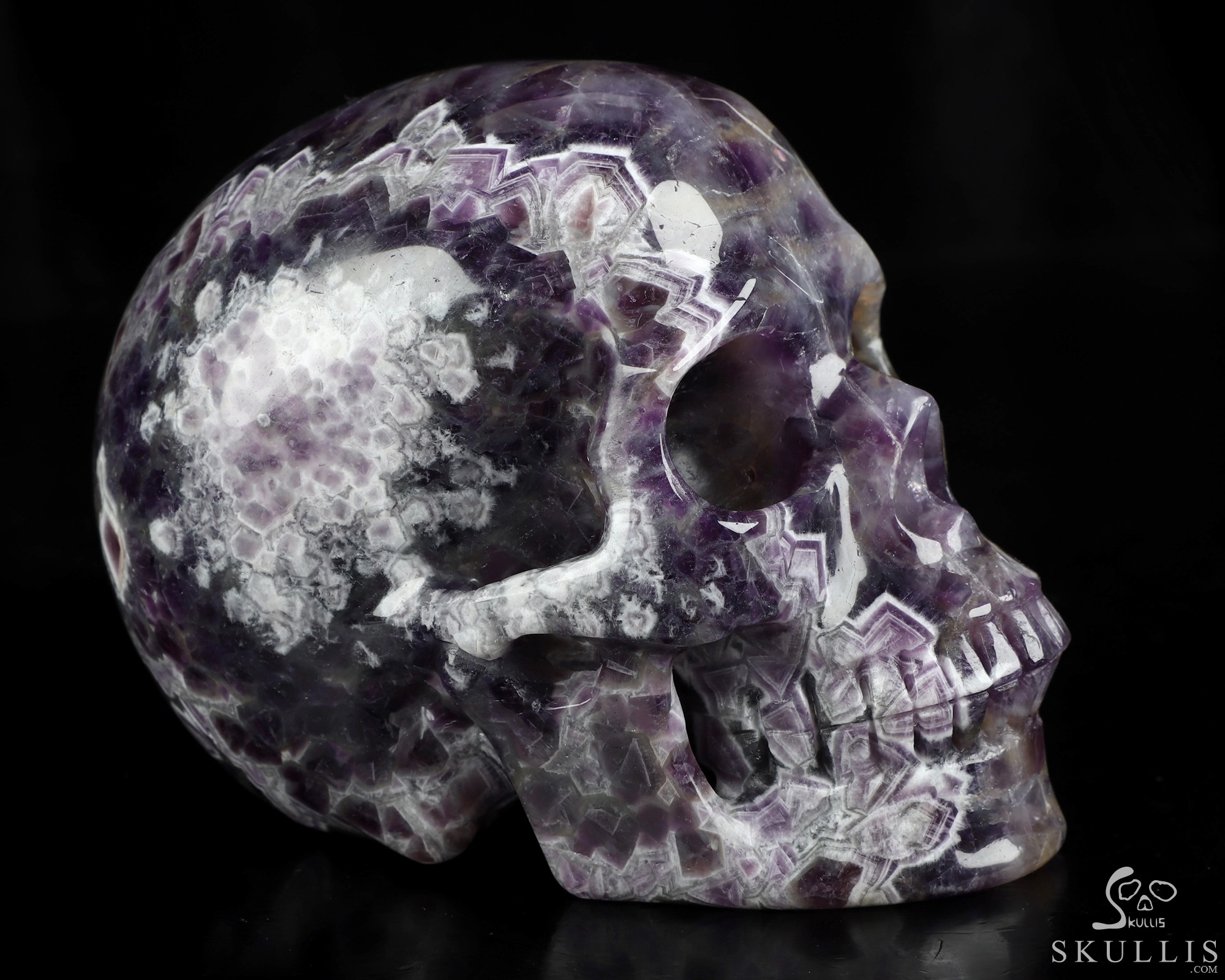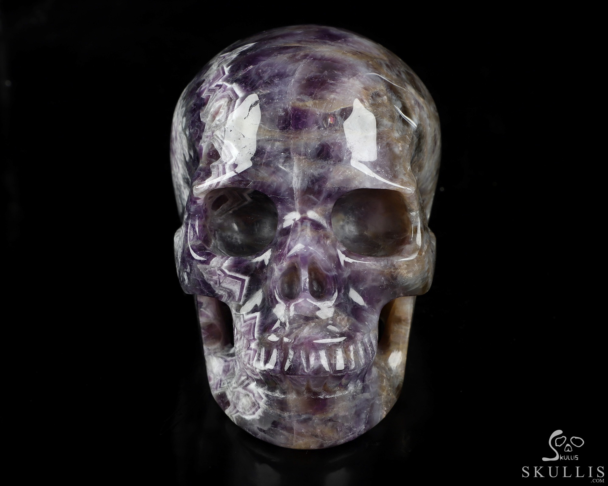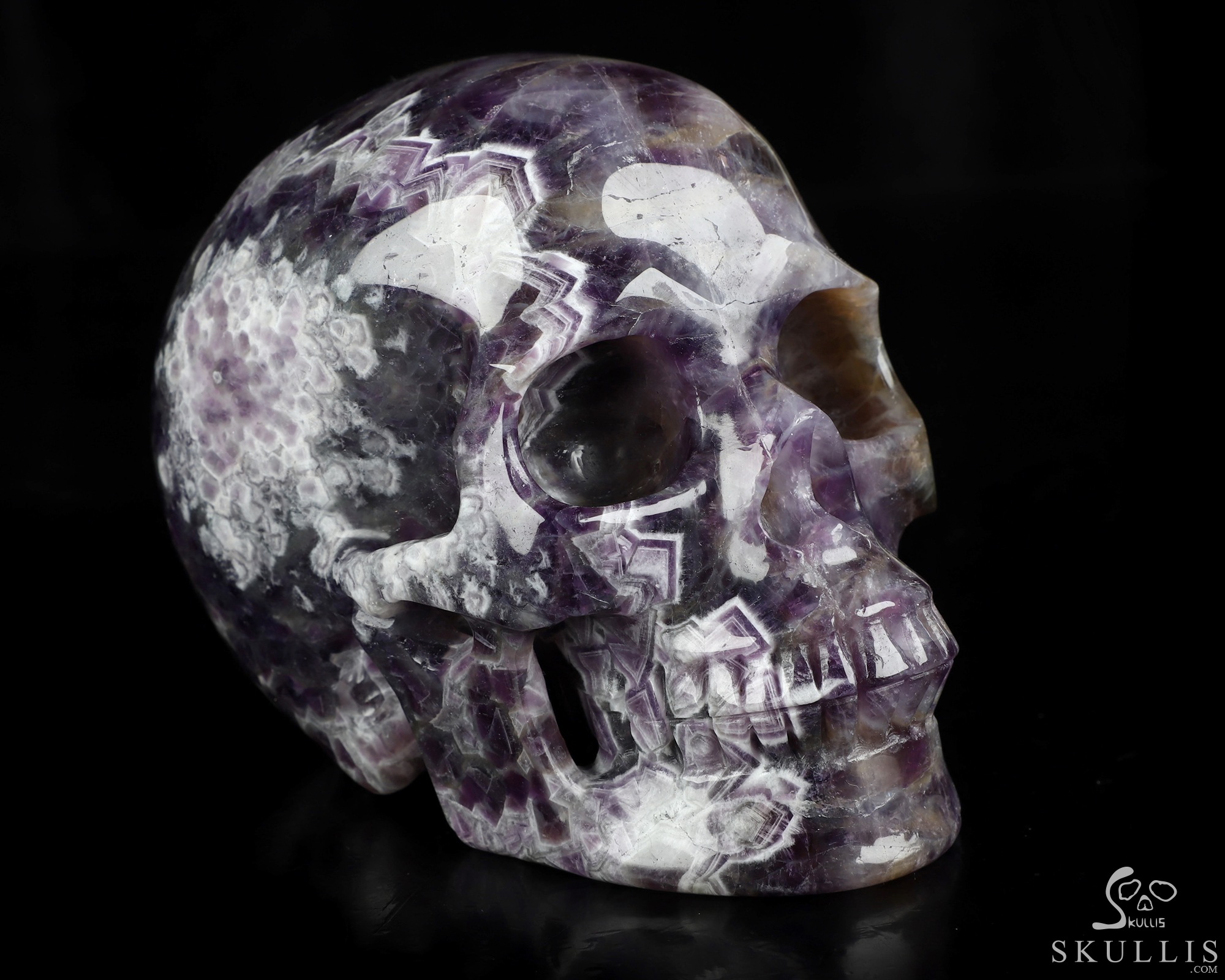 Gemstone Huge 5.1" Dream Chevron Amethyst Carved Crystal Skull, Super Realistic