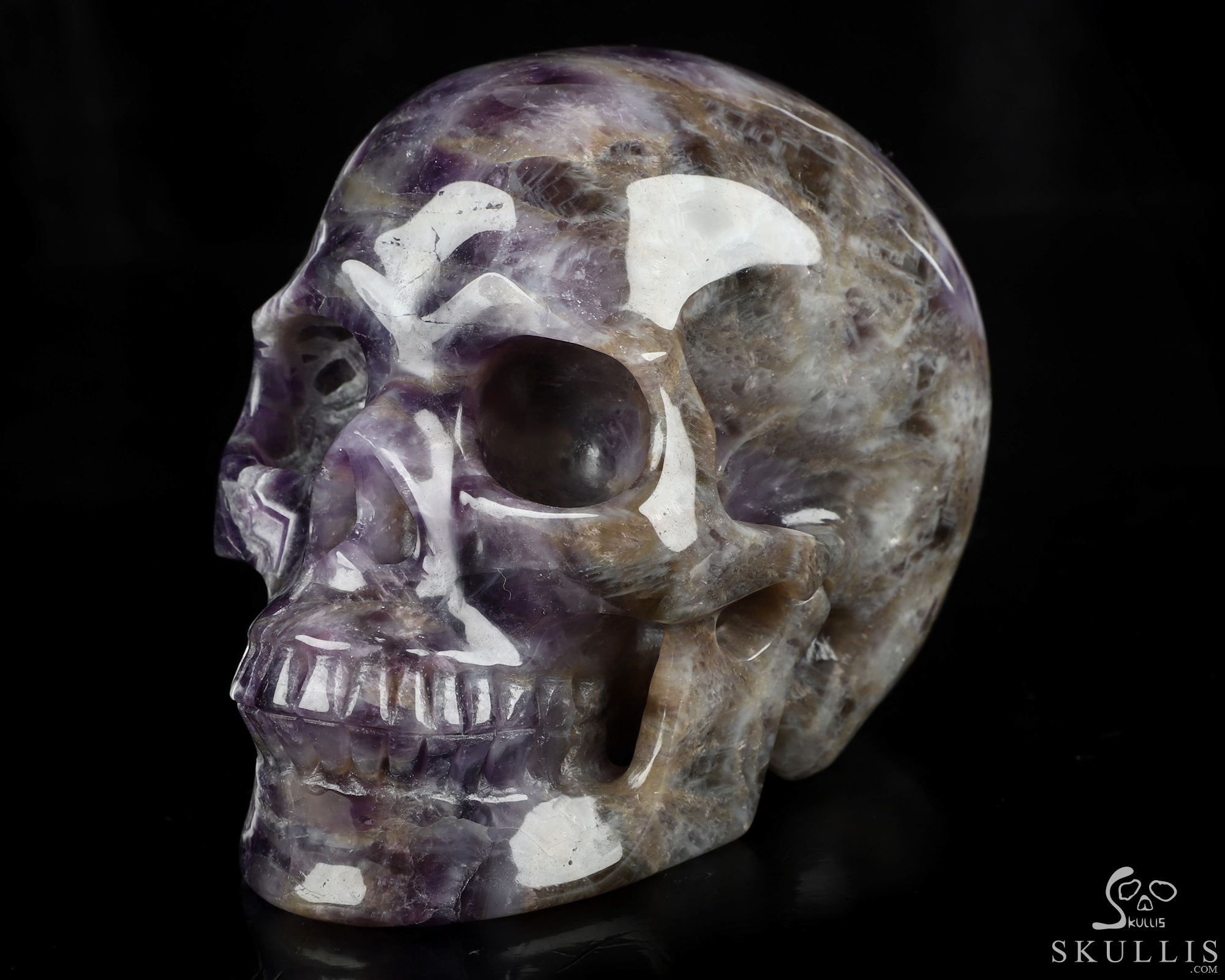 Lifesized 5.9" Dream Chevron Amethyst Hand Carved Crystal Skull, Super Realistic, Crystal Healing