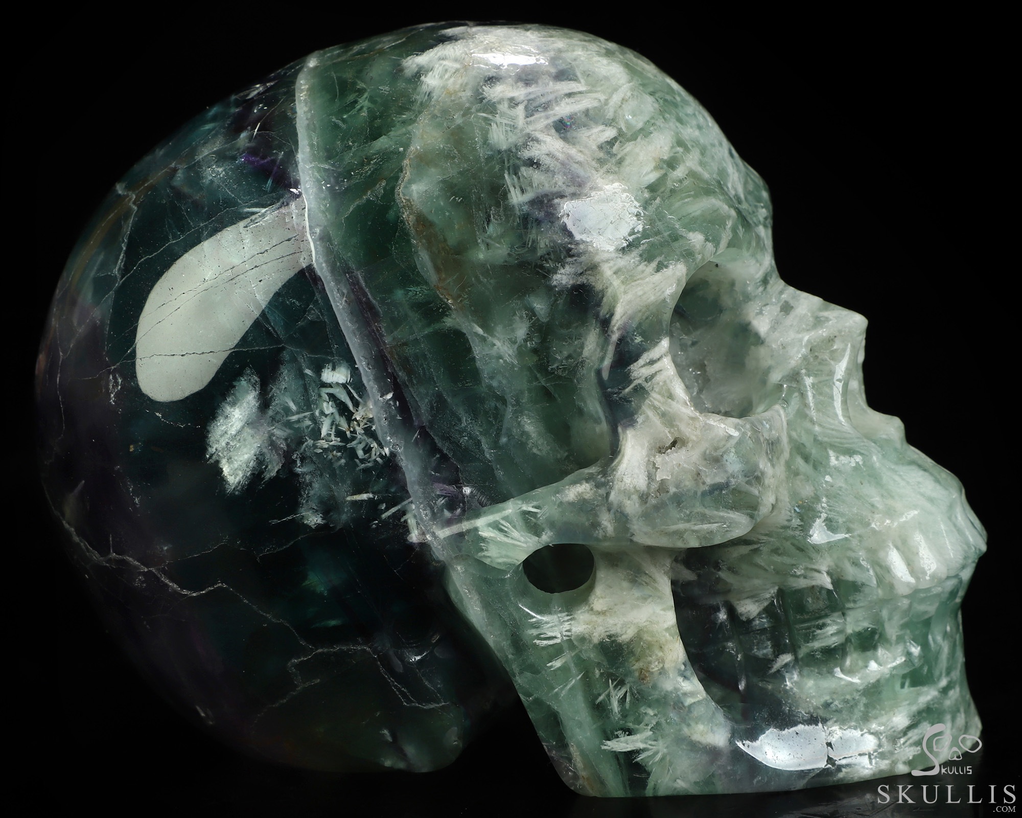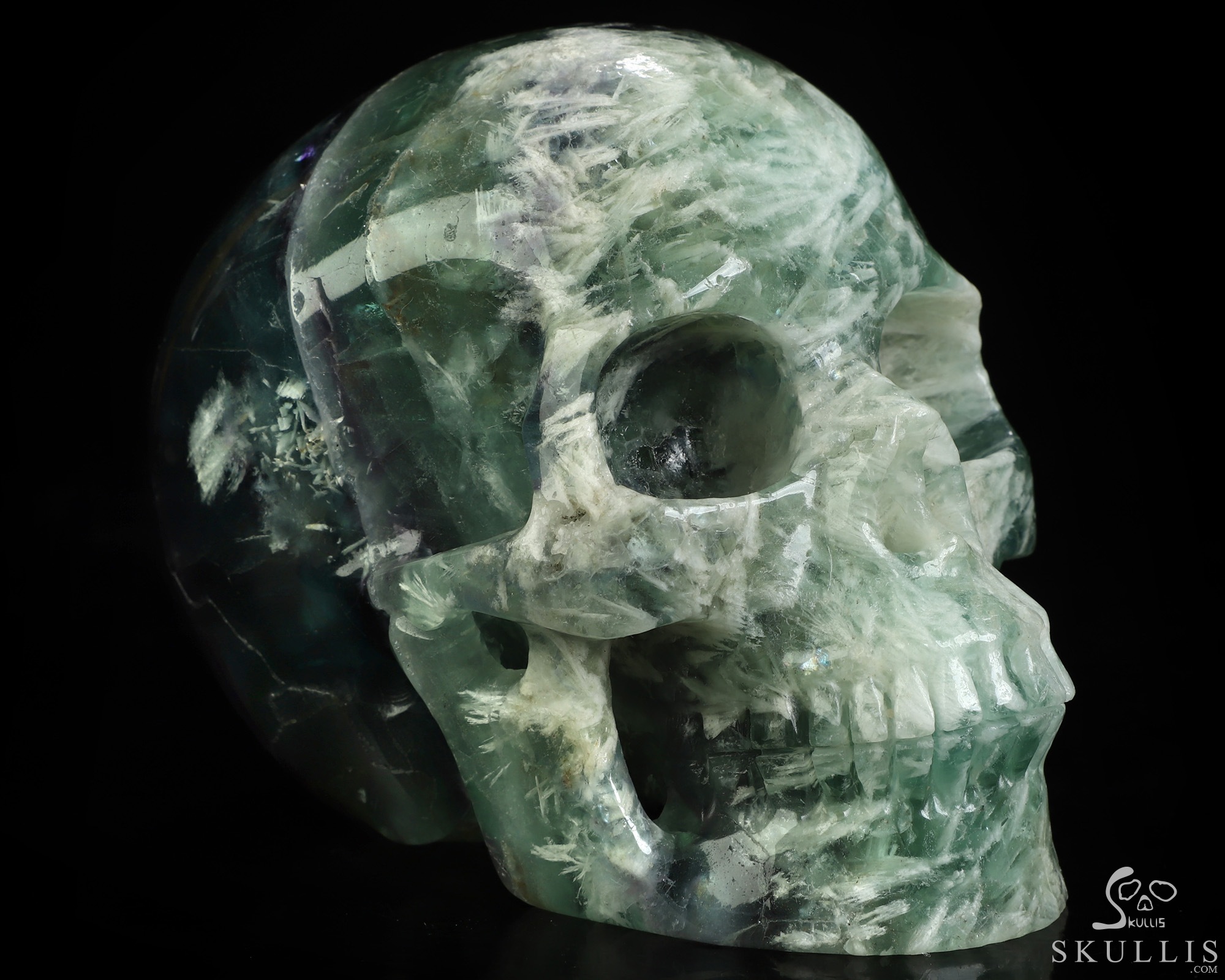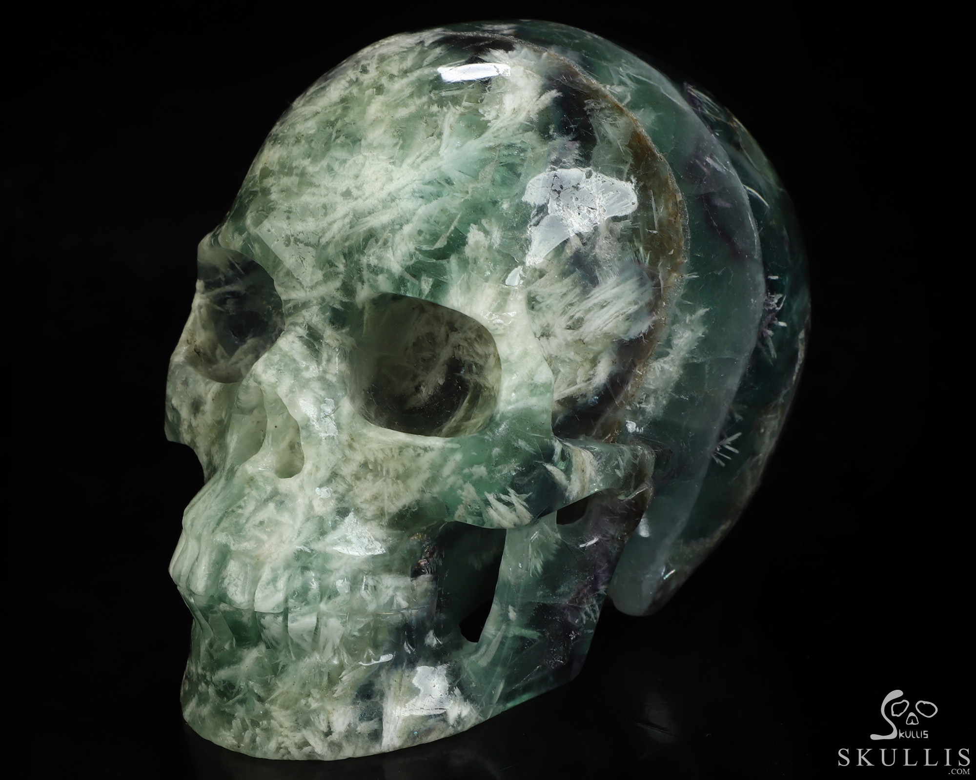 5.7" Fluorite Hand Carved Crystal Skull Fine Art Sculpture, Crystal Healing