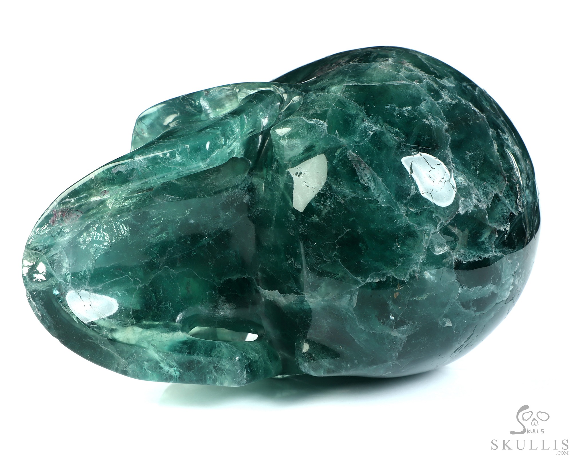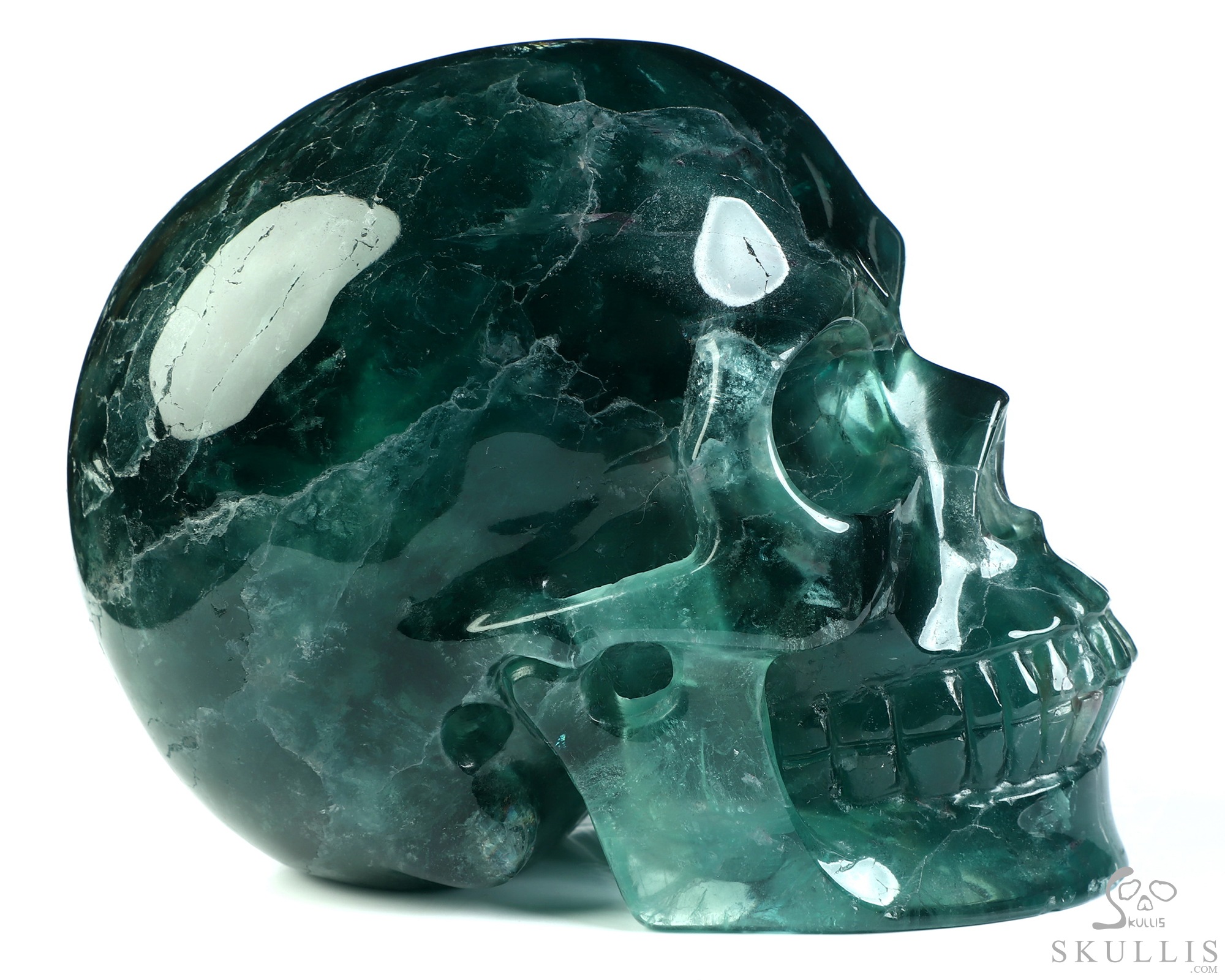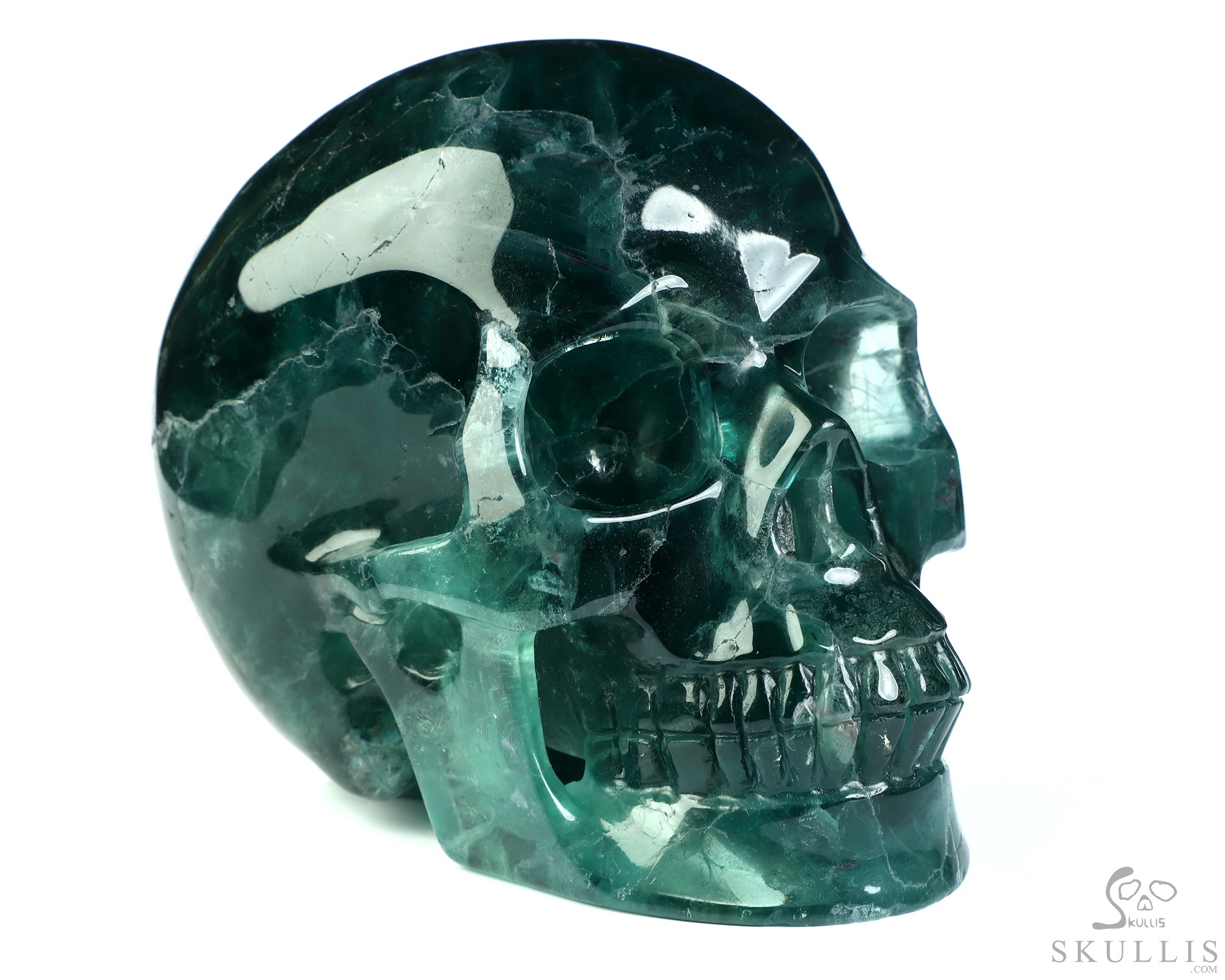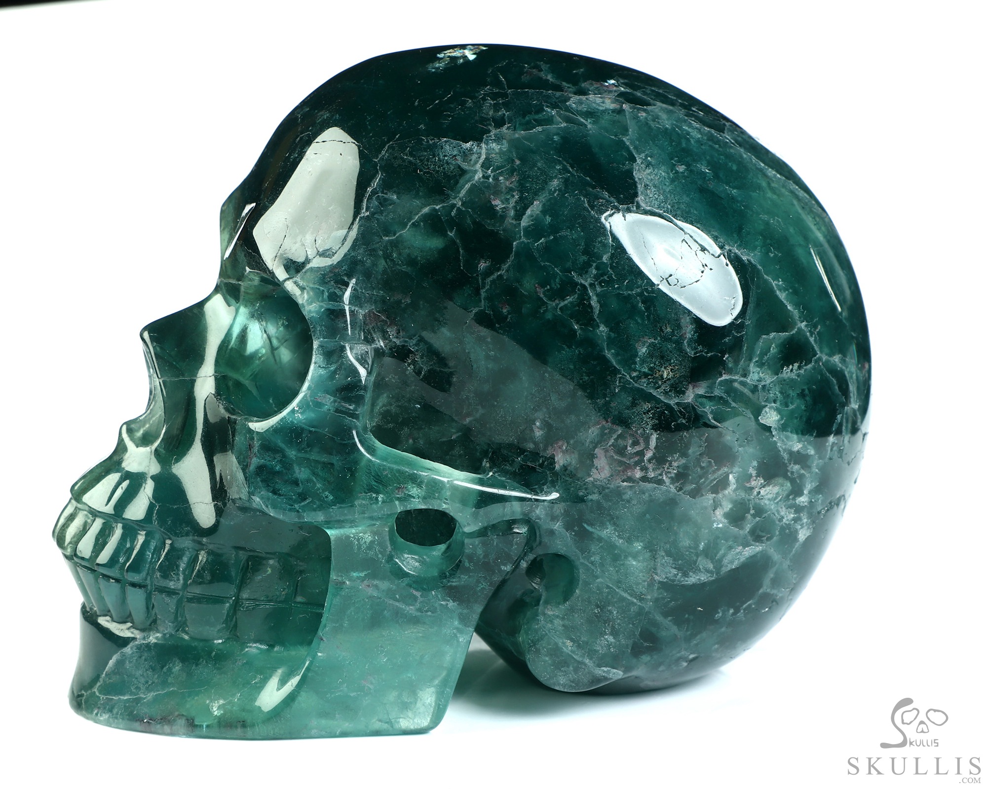 Lifesized 6.9" Fluorite Hand Carved Crystal Skull, Super Realistic, Crystal Healing
