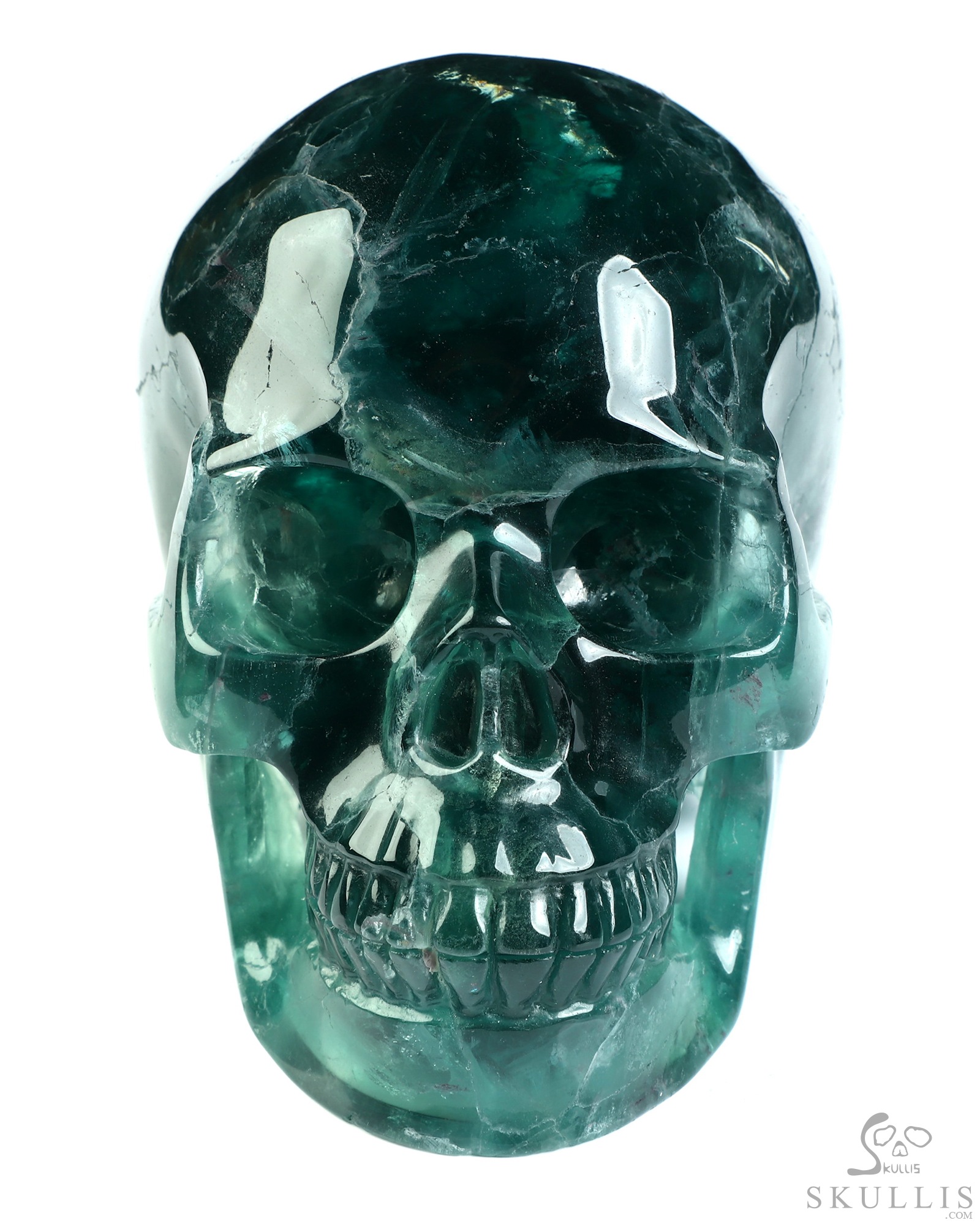 Huge 5.0" Fluorite Carved Crystal Skull, Super Realistic