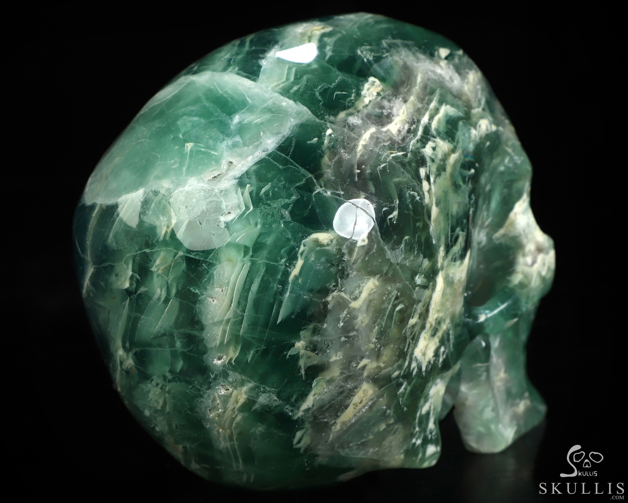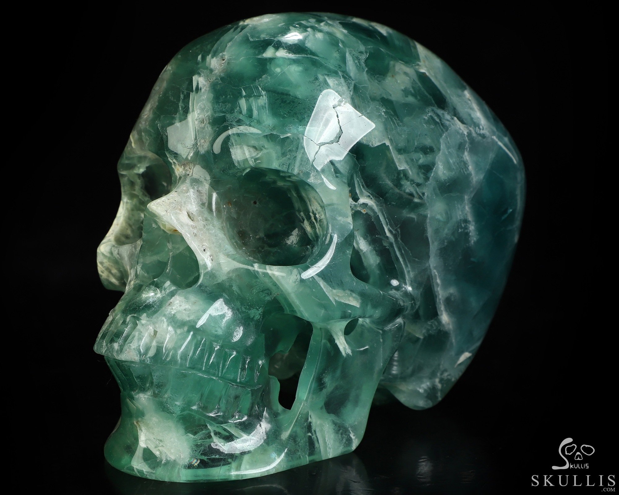Huge 5.0" Fluorite Carved Crystal Skull, Super Realistic