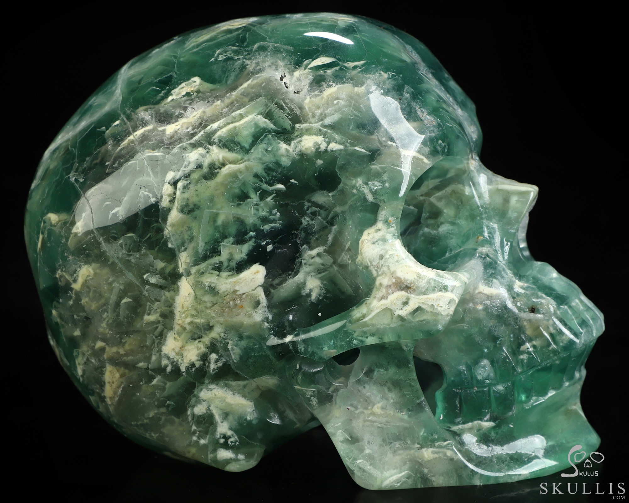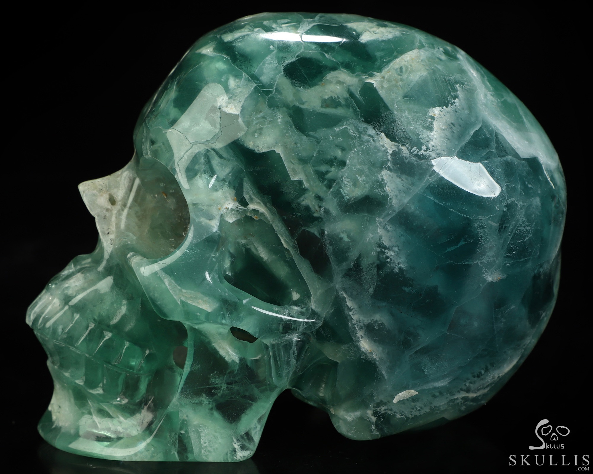 Lifesized 6.9" Fluorite Hand Carved Crystal Skull, Super Realistic, Crystal Healing