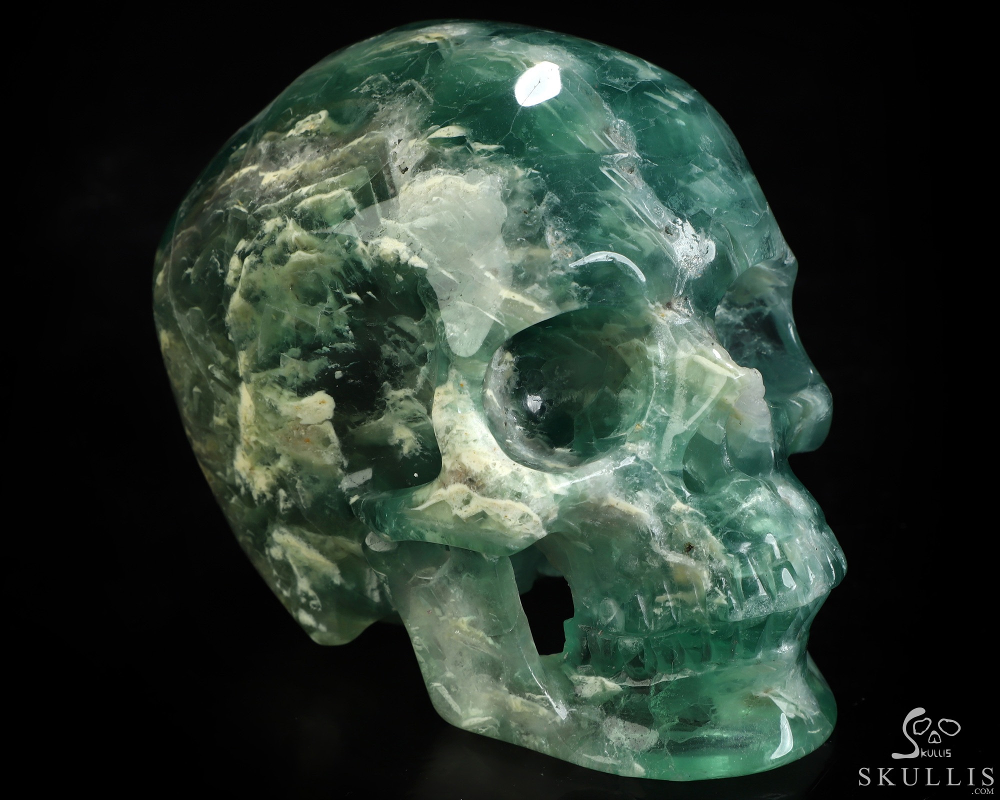 5.0" Fluorite Hand Carved Crystal Skull, Super Realistic, Crystal Healing