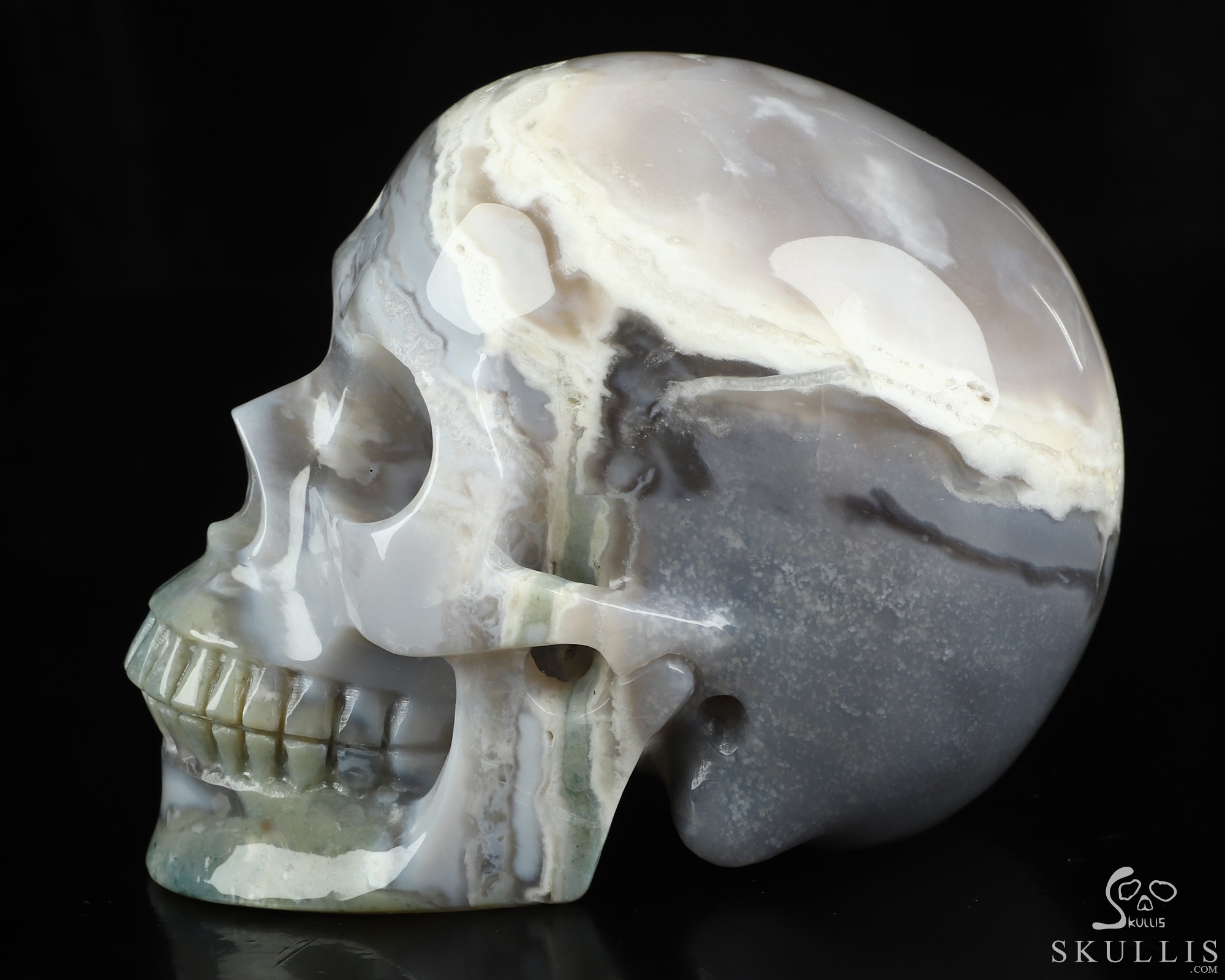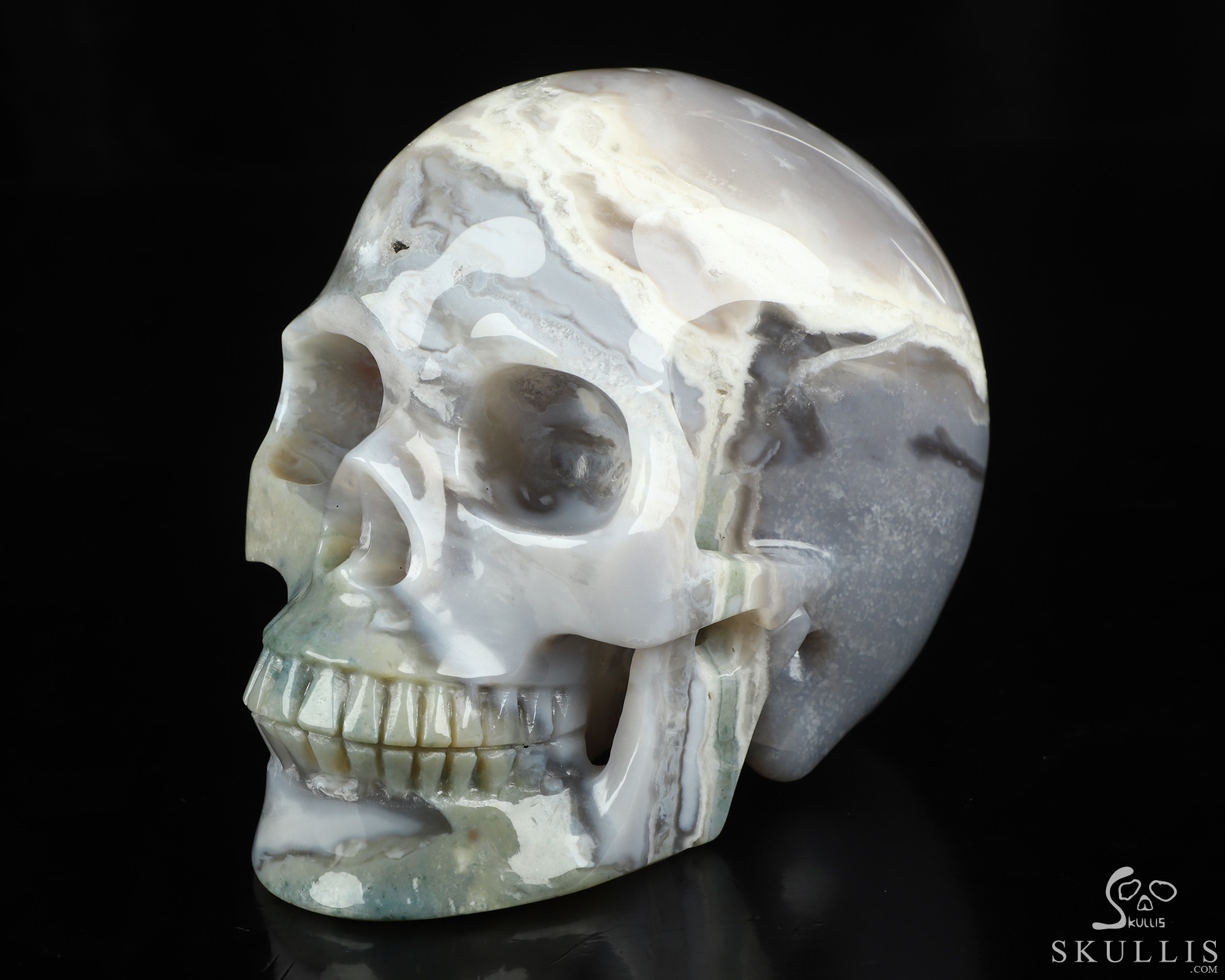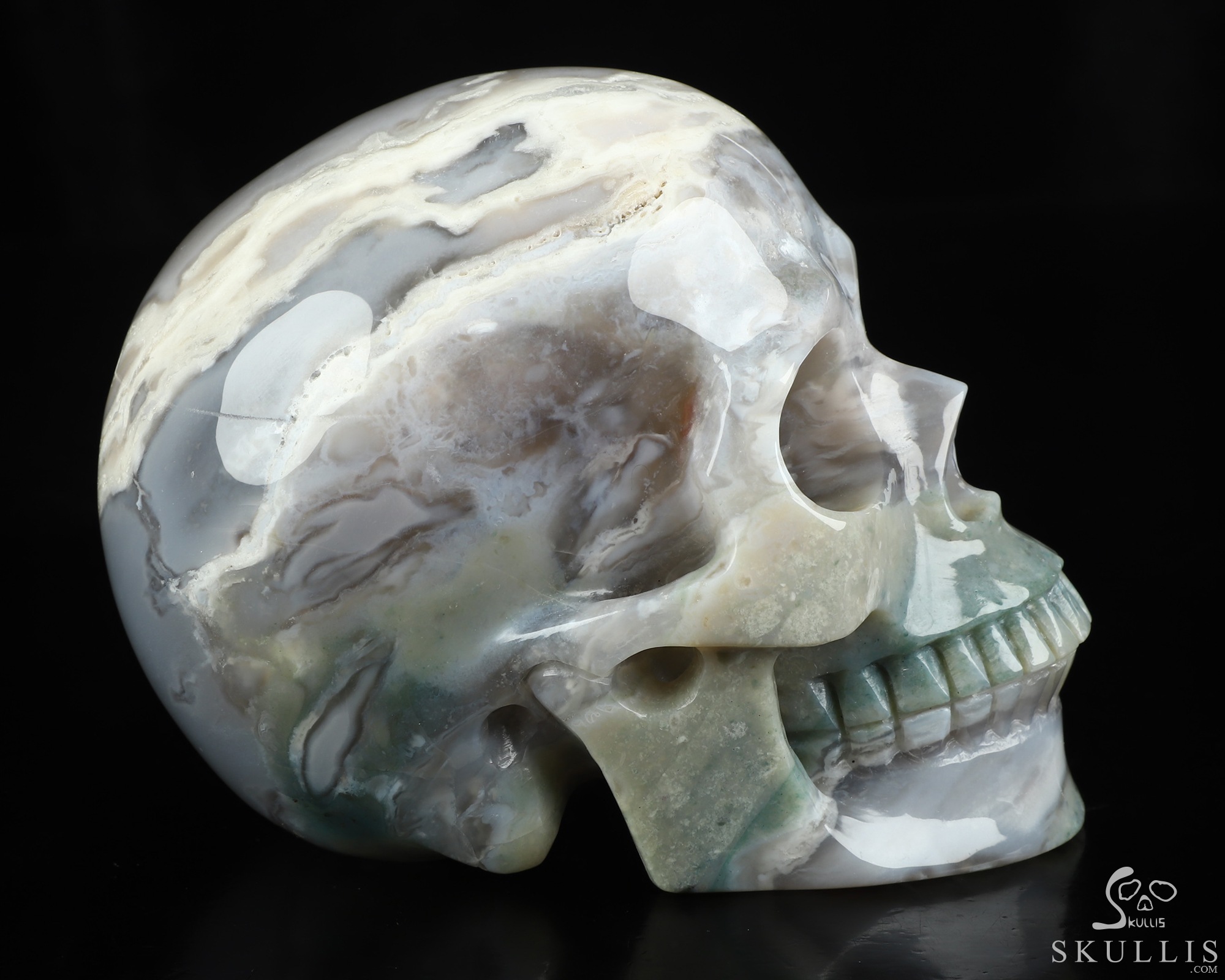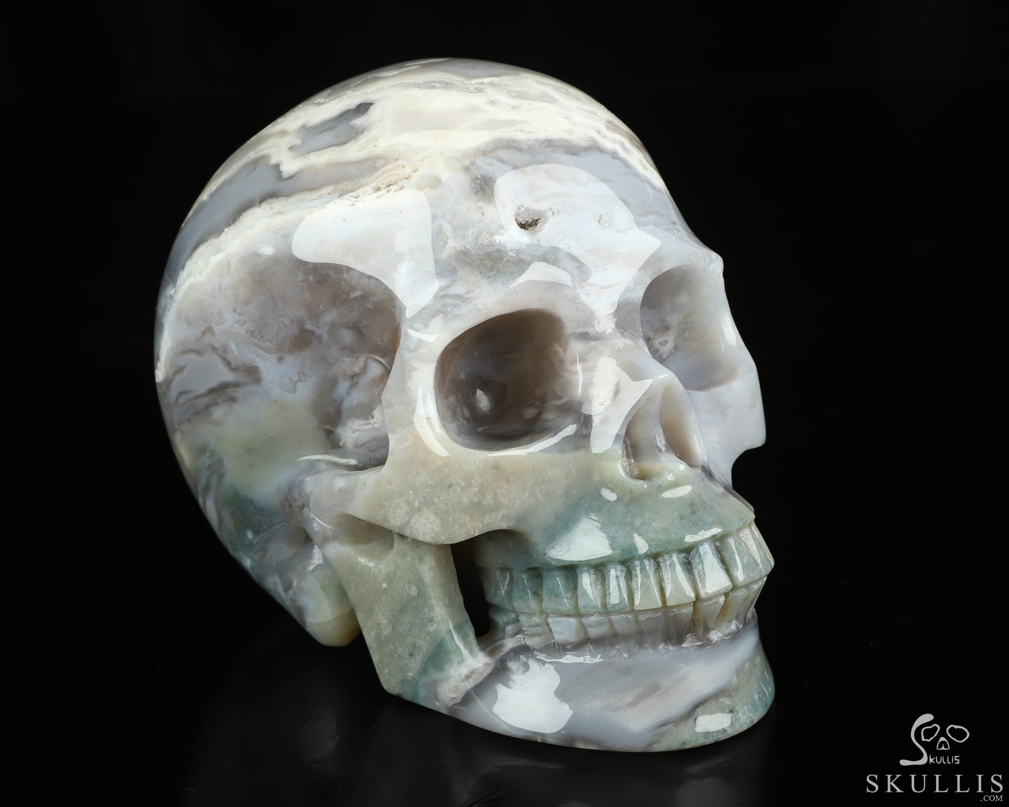 Lifesized 6.9" Indian Agate Hand Carved Crystal Skull, Super Realistic, Crystal Healing