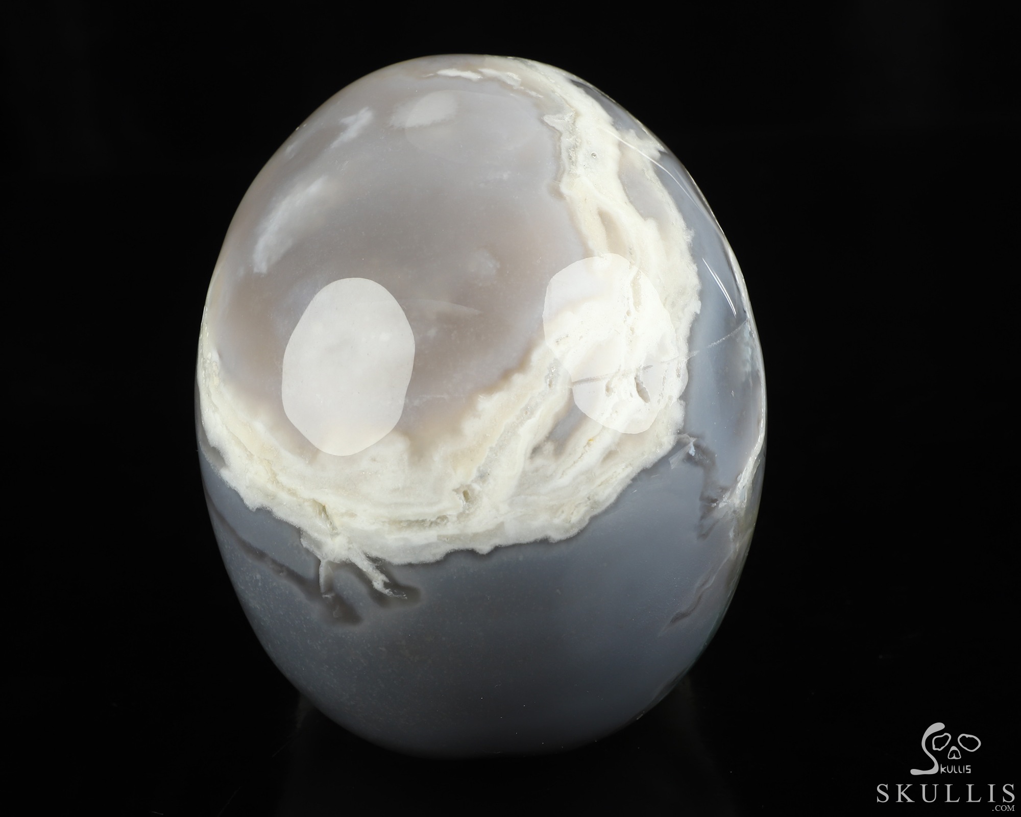 You are looking at an Indian Agate skull. The skull is 4.9 inches from front to back.