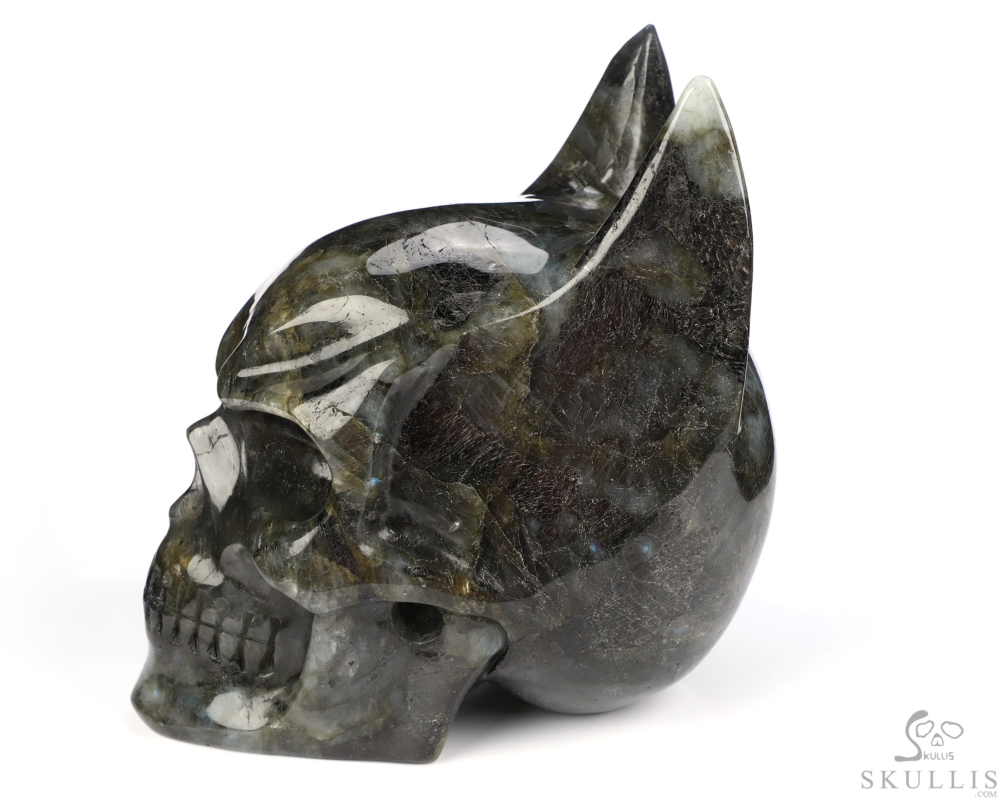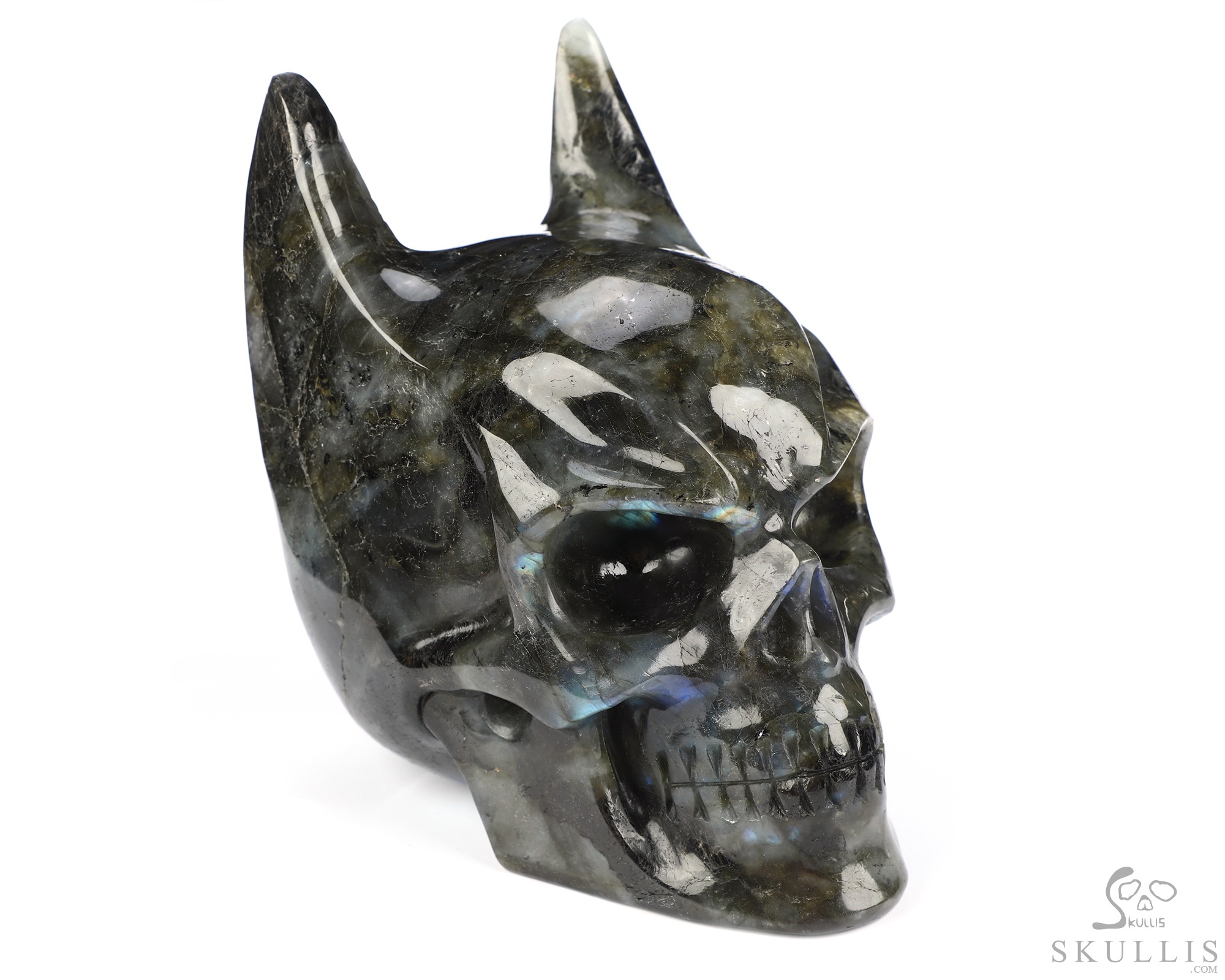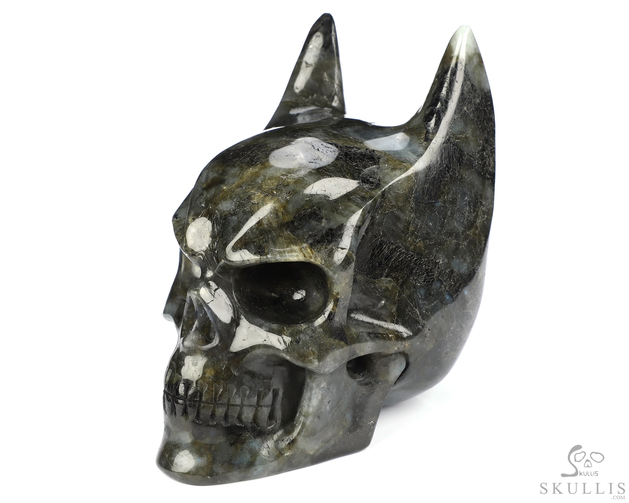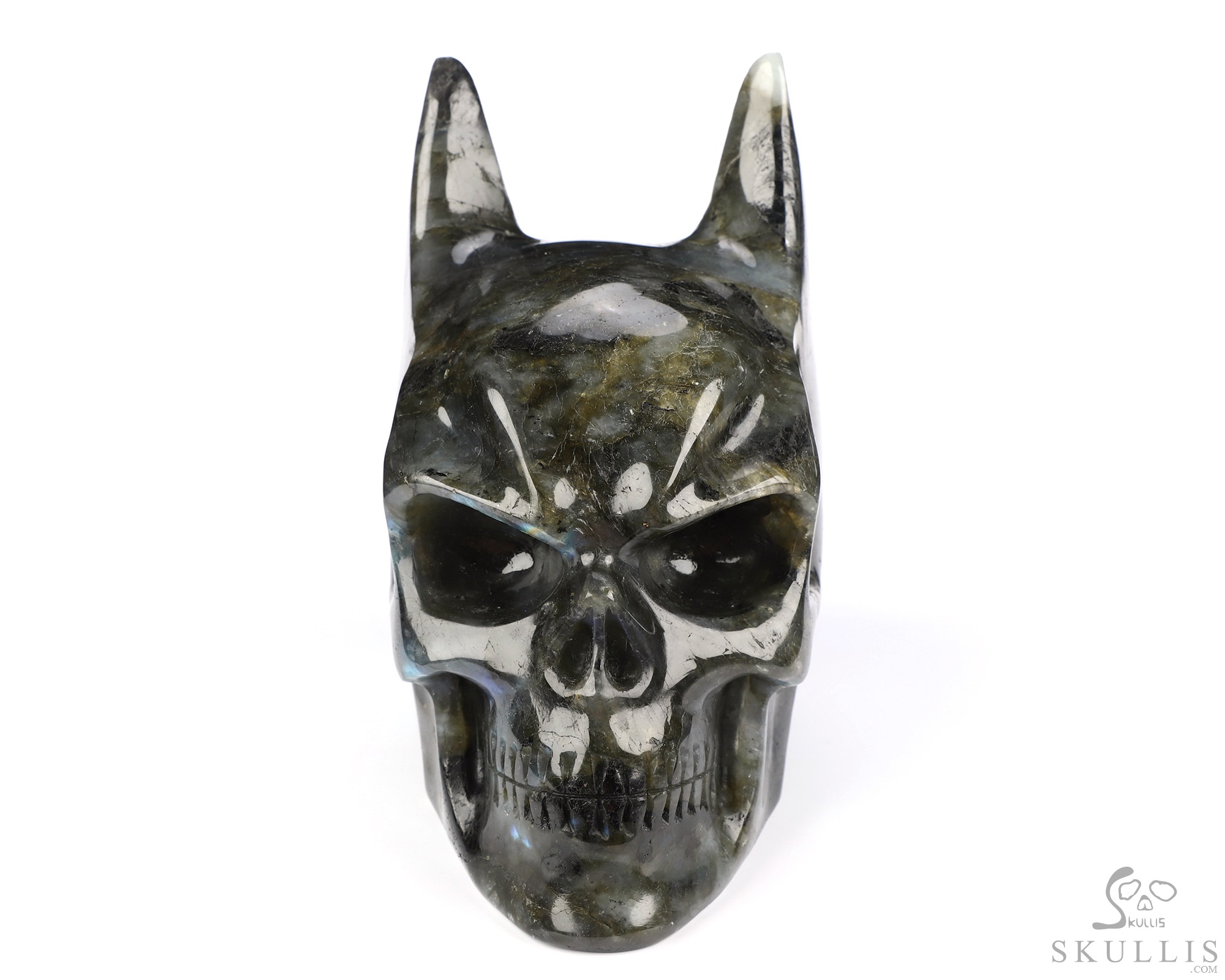 4.9" Labradorite Hand Carved Batman Crystal Skull Fine Art Sculpture, Crystal Healing