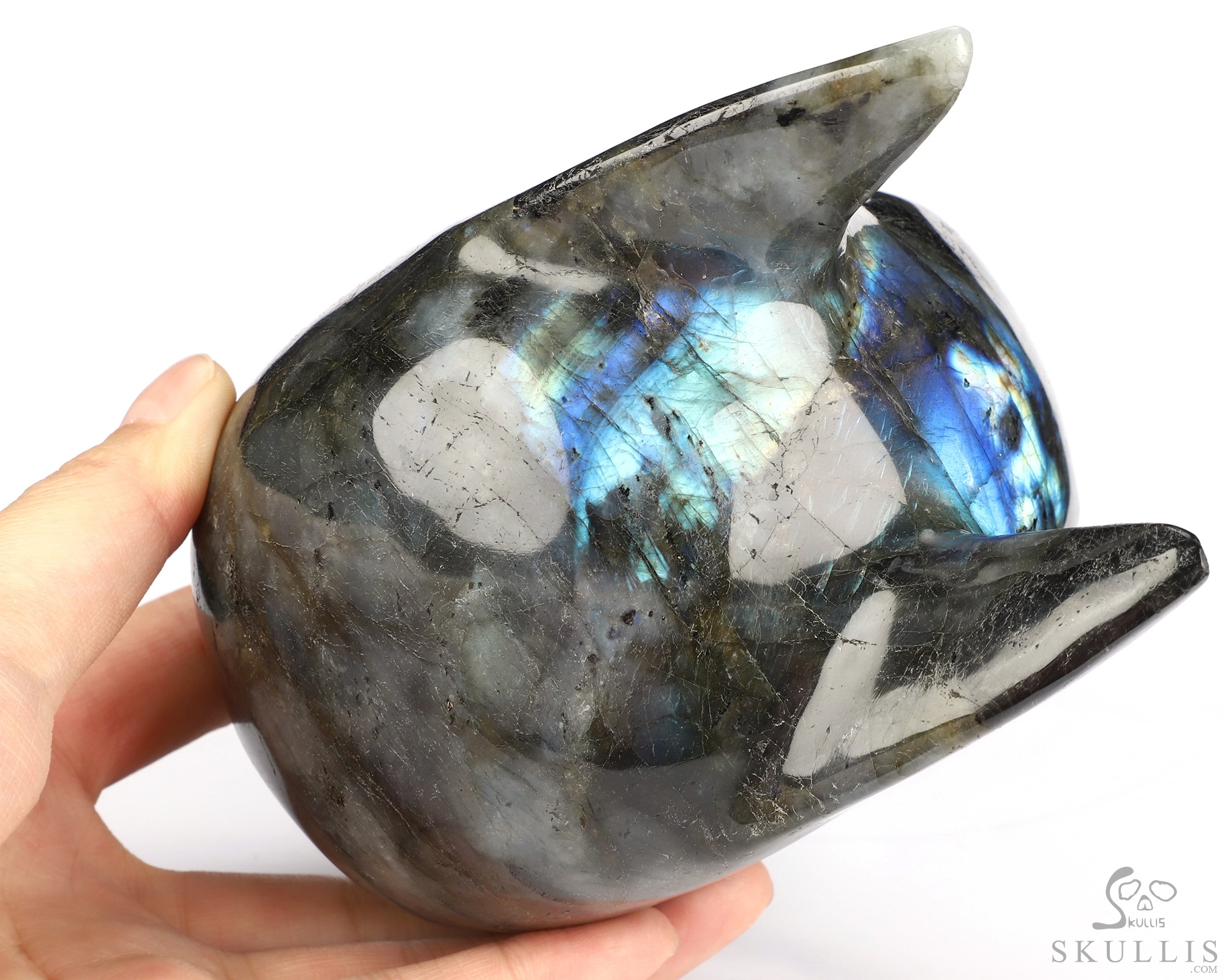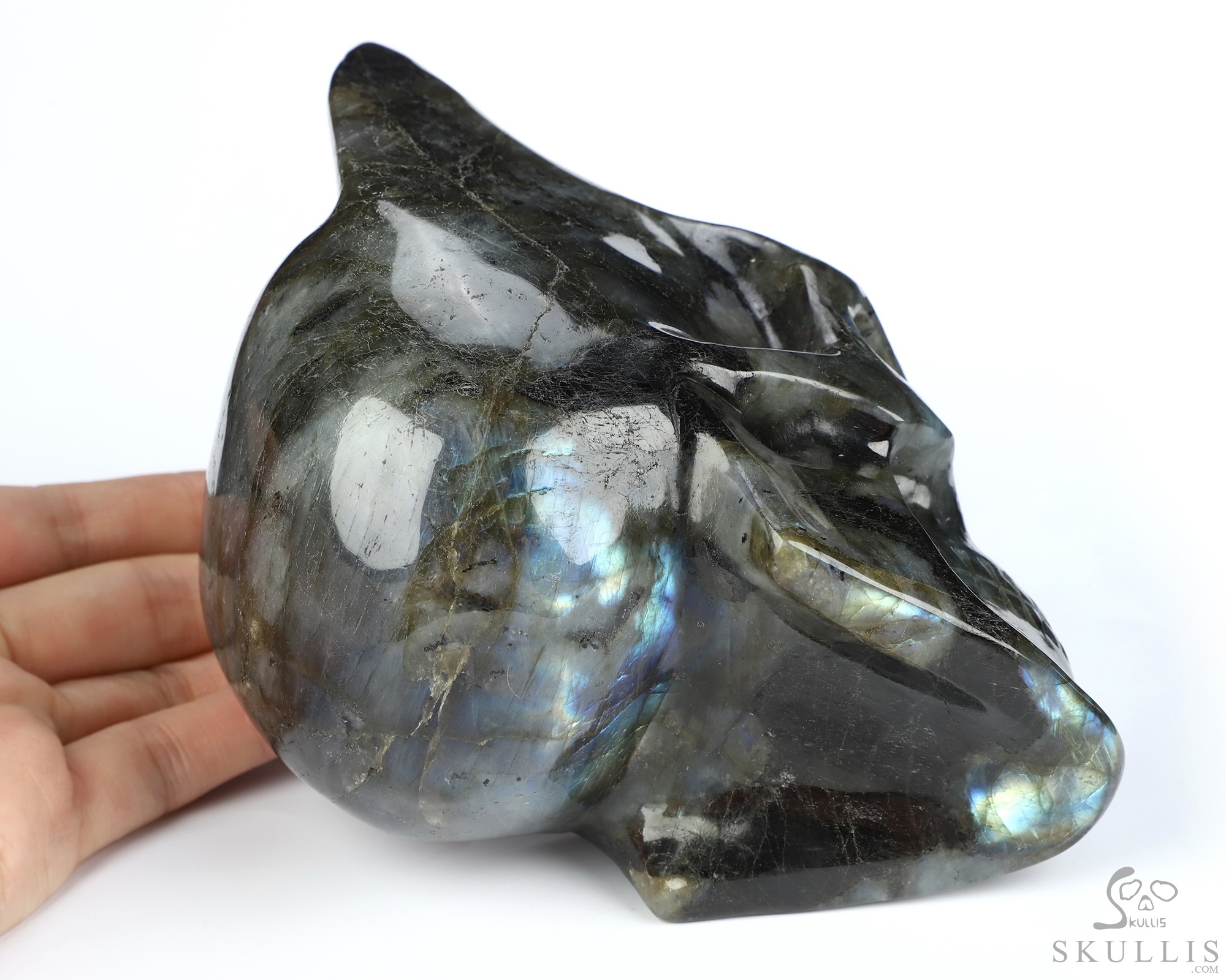 Flash 5.3" Labradorite Hand Carved Crystal Skull, Super Realistic, Crystal Healing