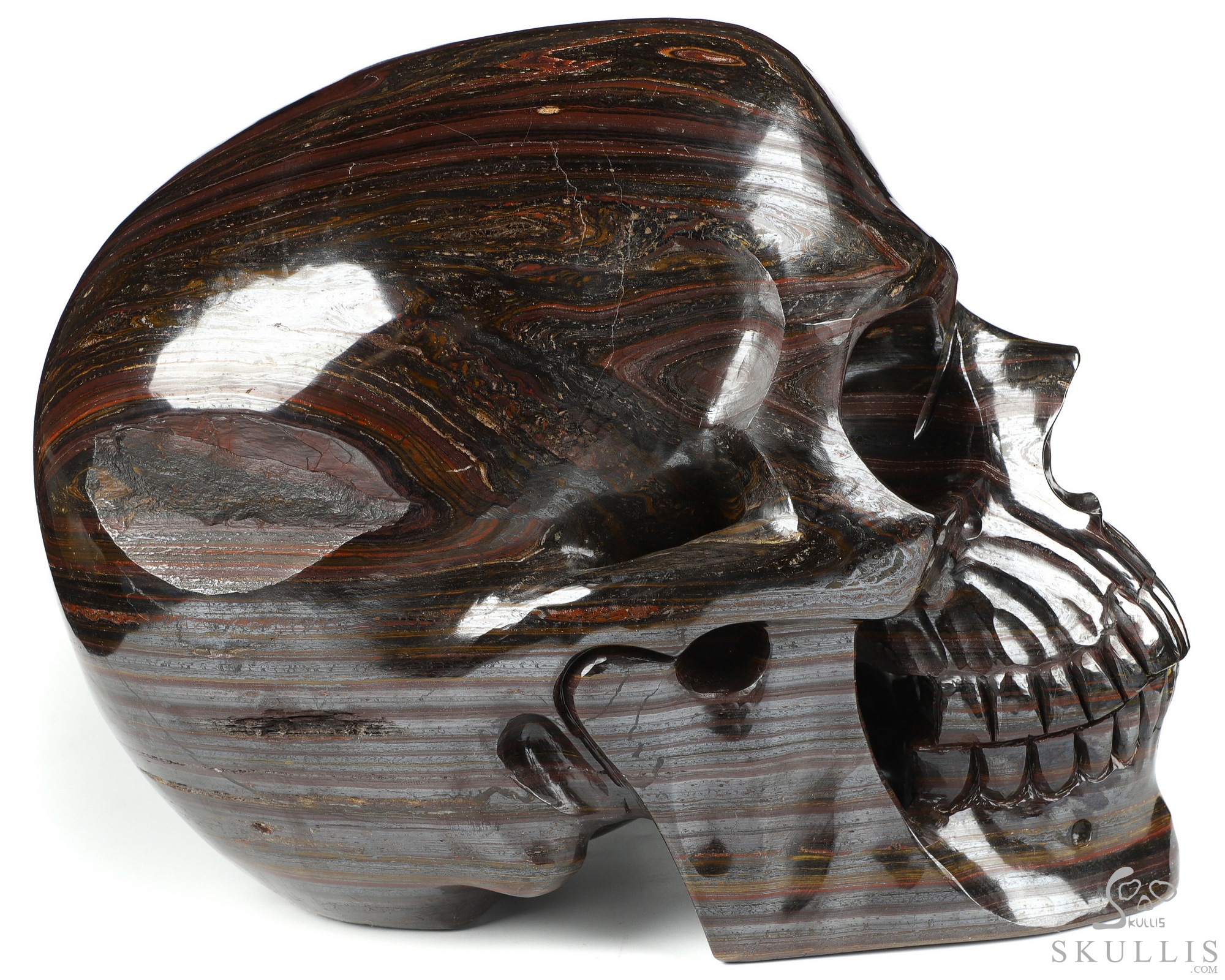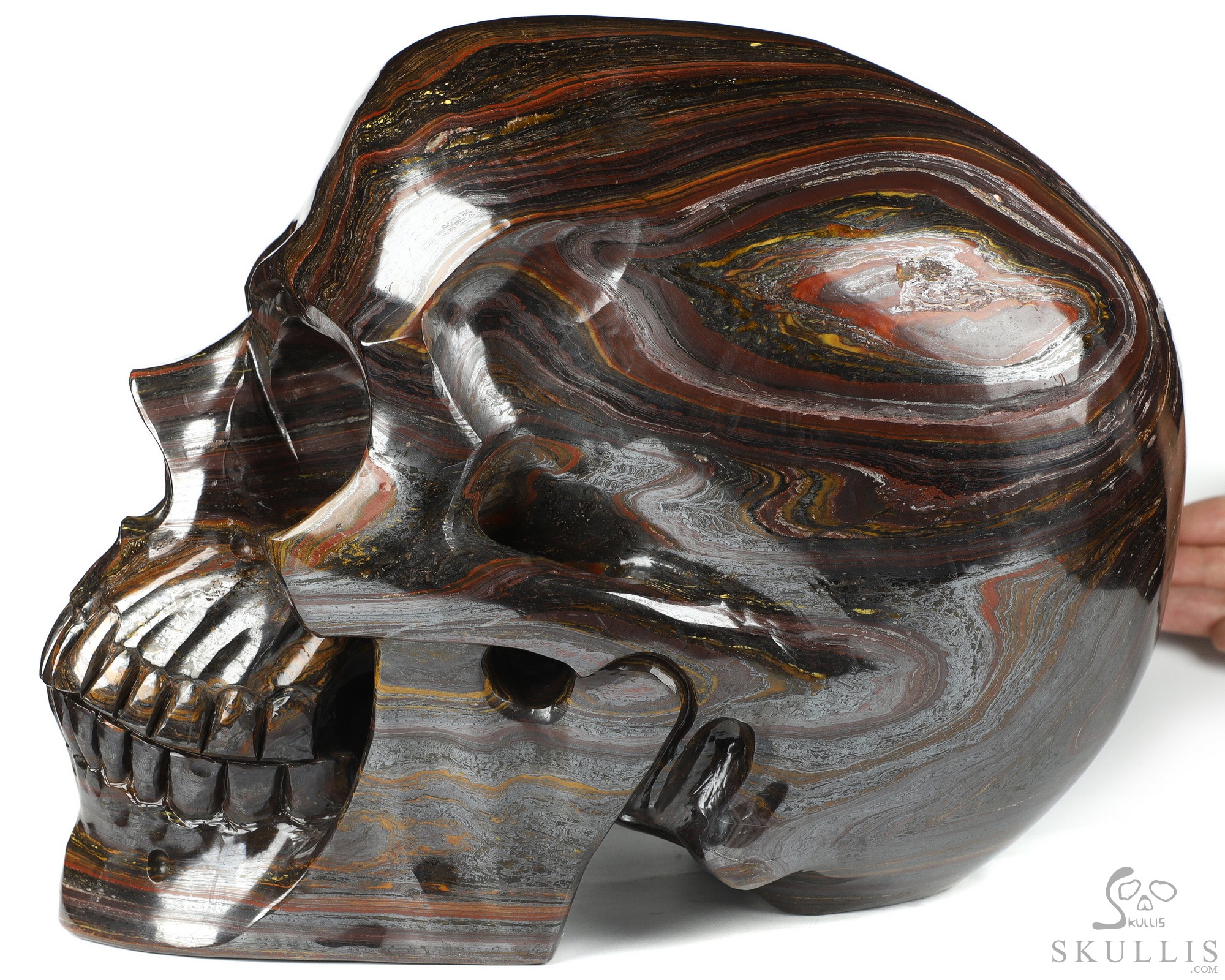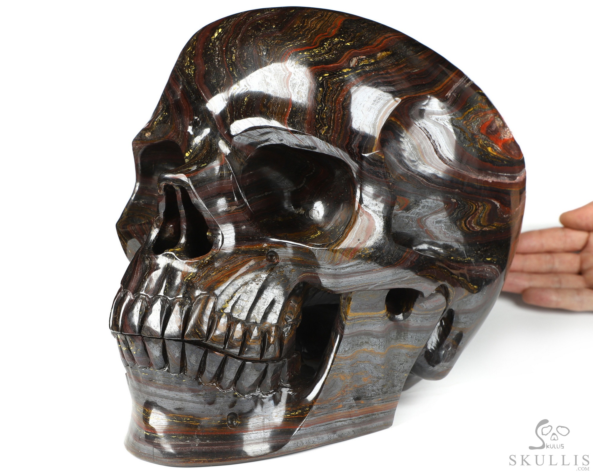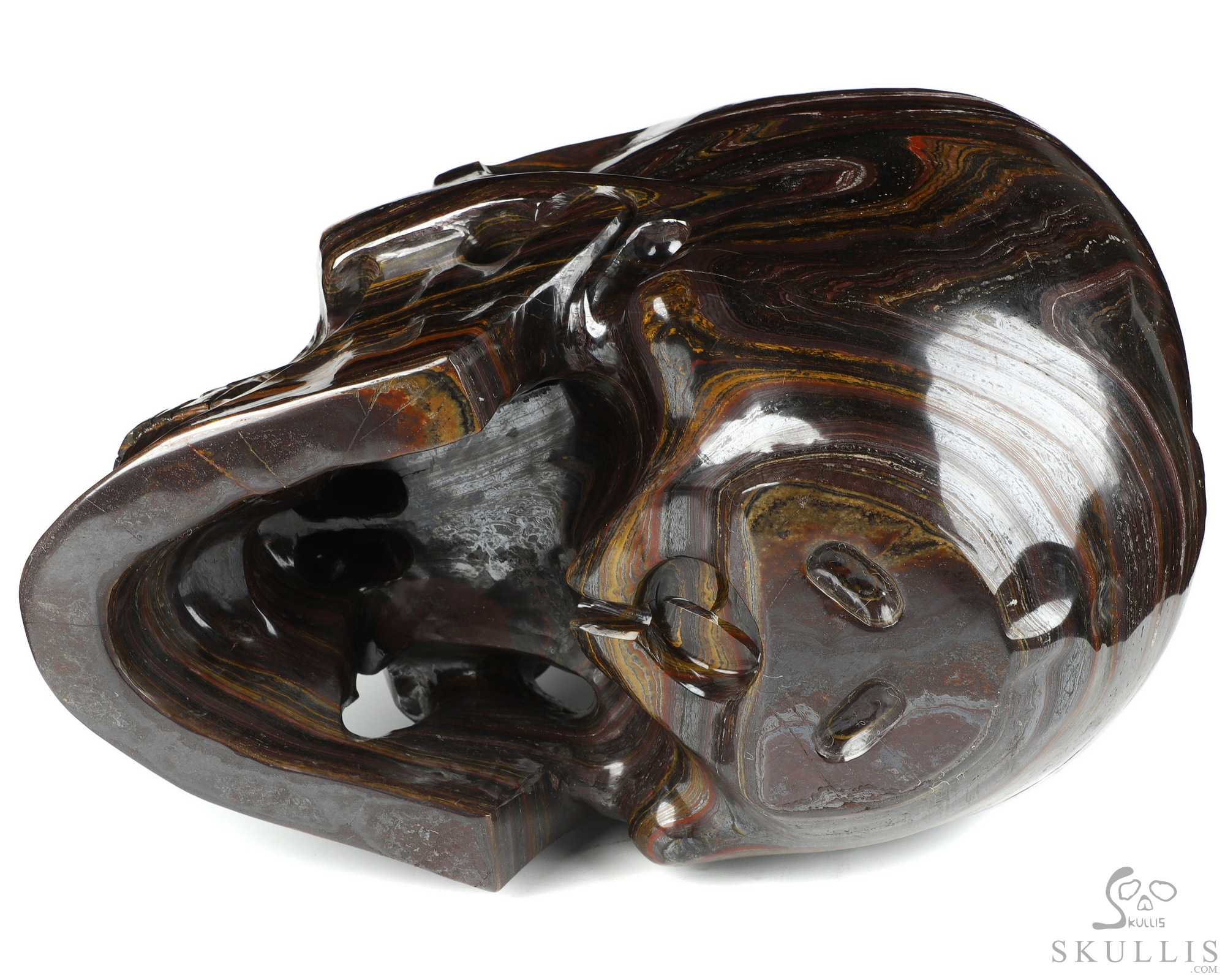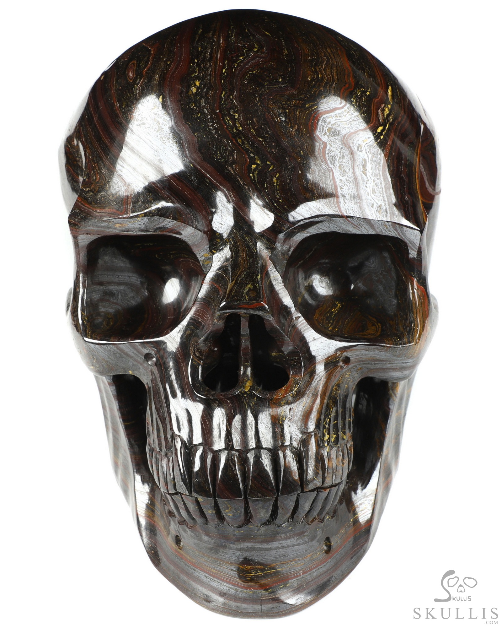 42.3LB Titan 10.8" Gold Tiger Iron Eye Carved Crystal Skull, Super Realistic, Crystal Healing