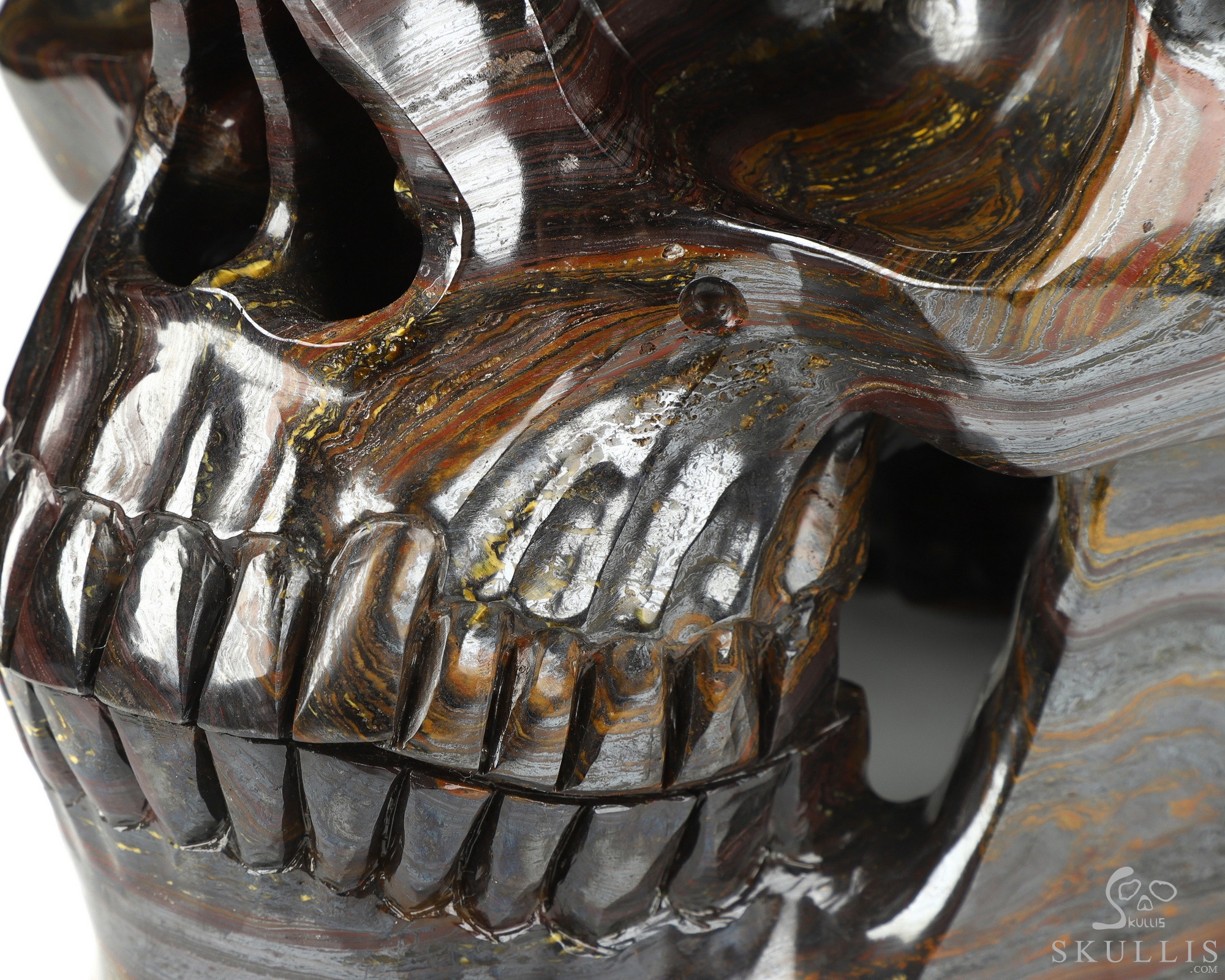 Super Realistic! Lifesized 6.2" Gold Tiger Iron Eye Hand Carved Crystal Skull, Crystal Healing