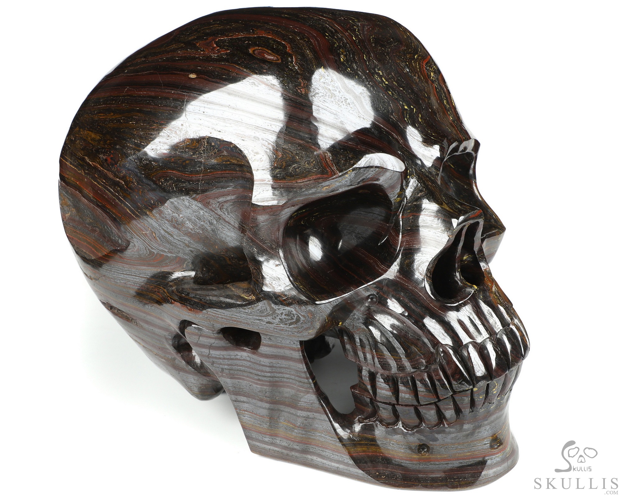 471.4LB Titan 29.1" Black Zebra Agate Geode Hand Carved Crystal Skull, Super Realistic, Crystal Healing