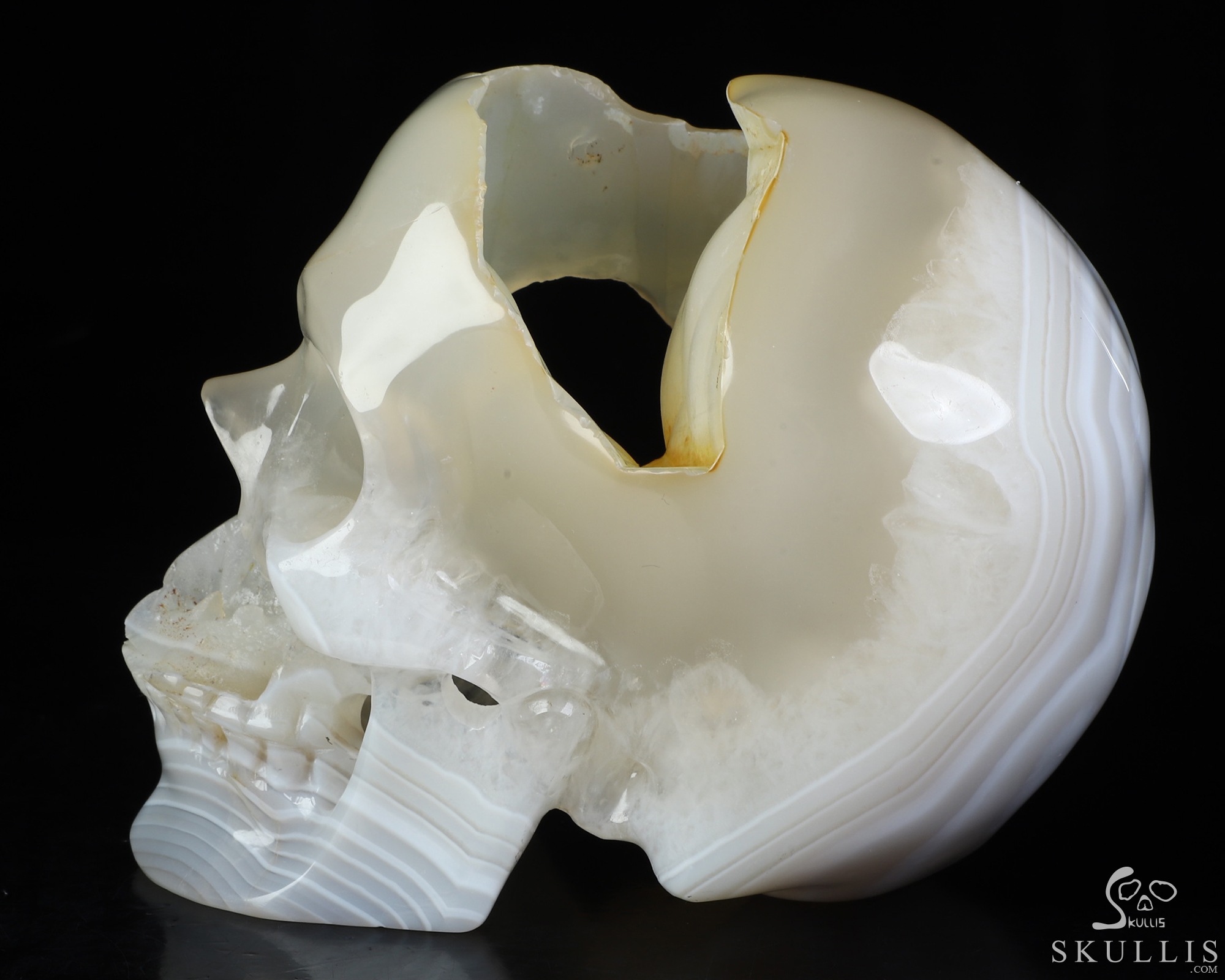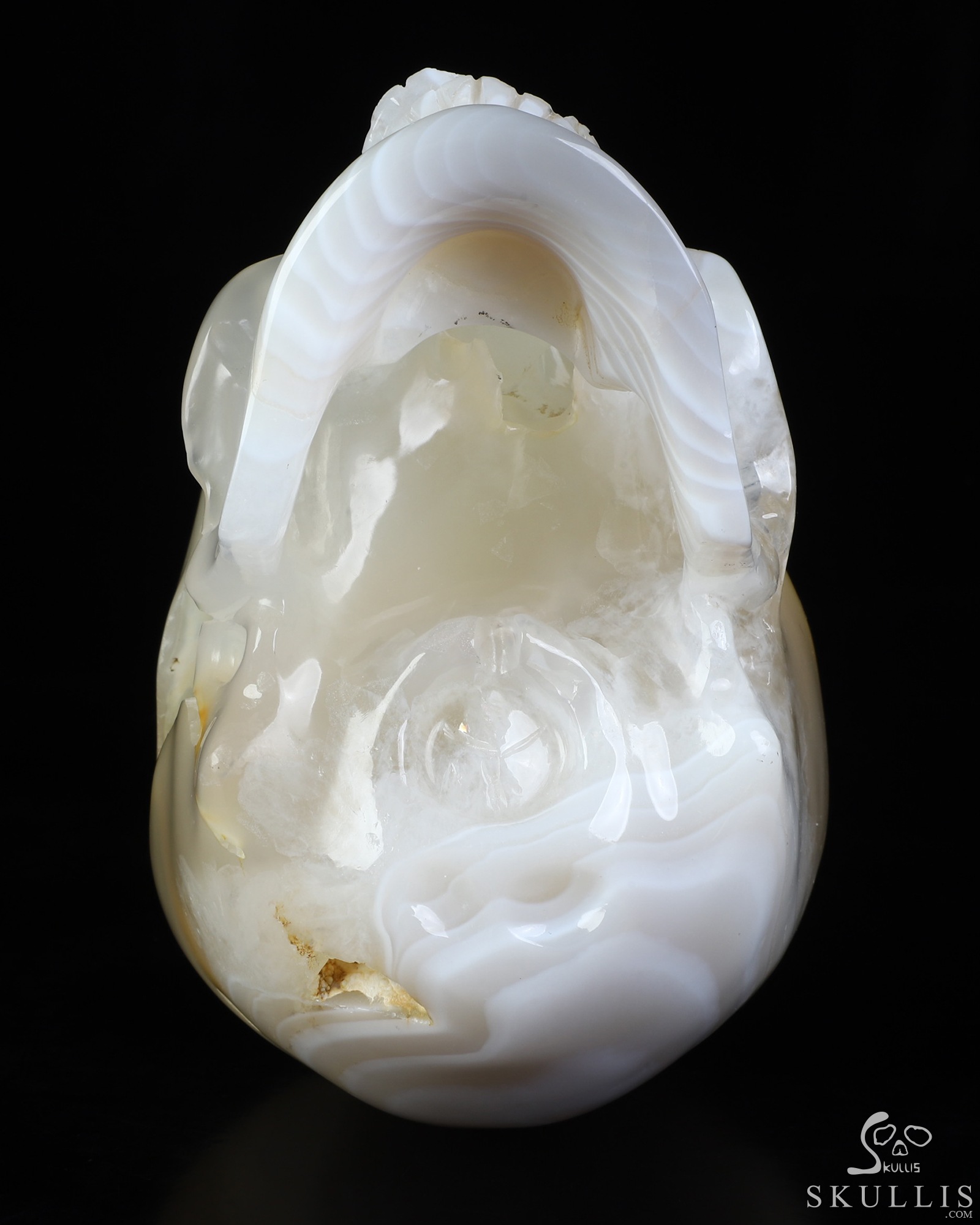 Origianl 7.3" Banded Agate Carved Crystal Skull & Flower, Crystal Healing