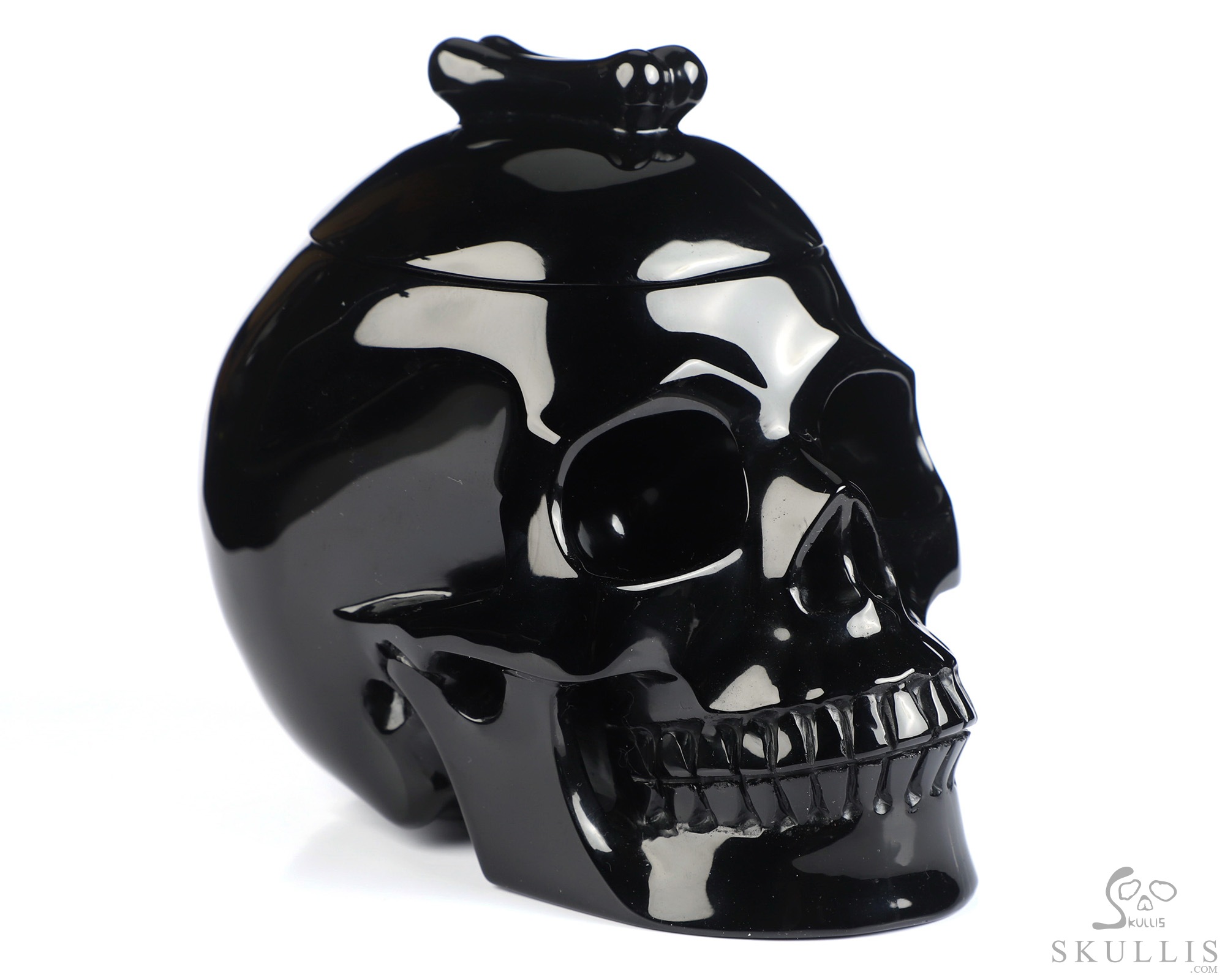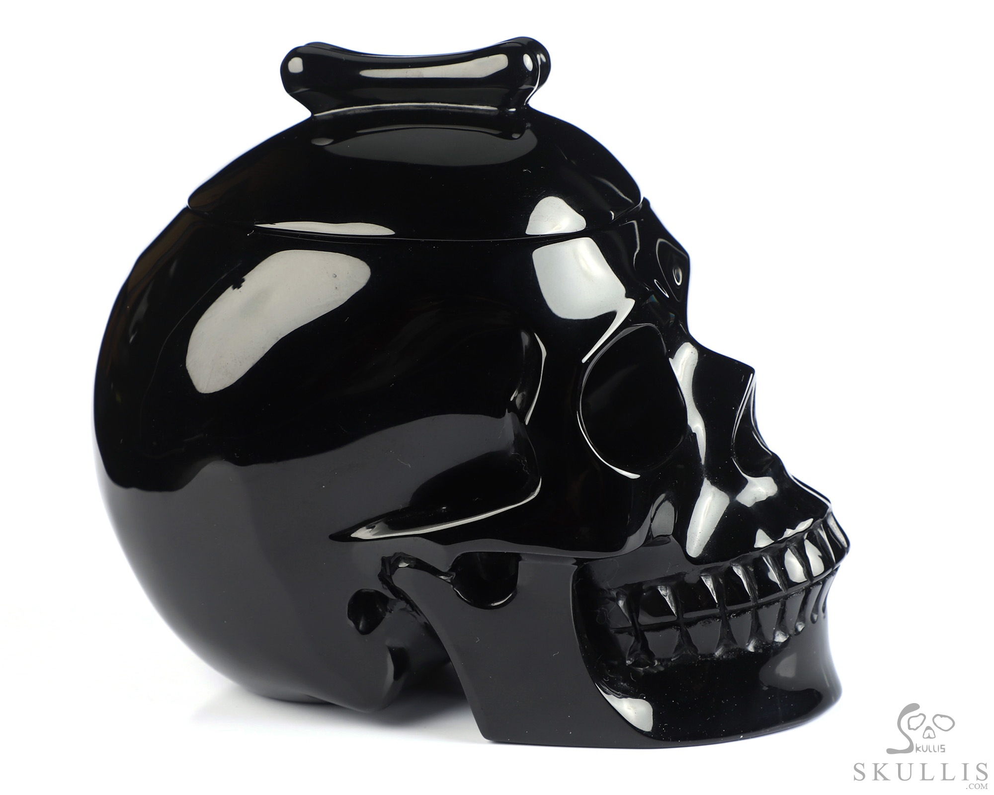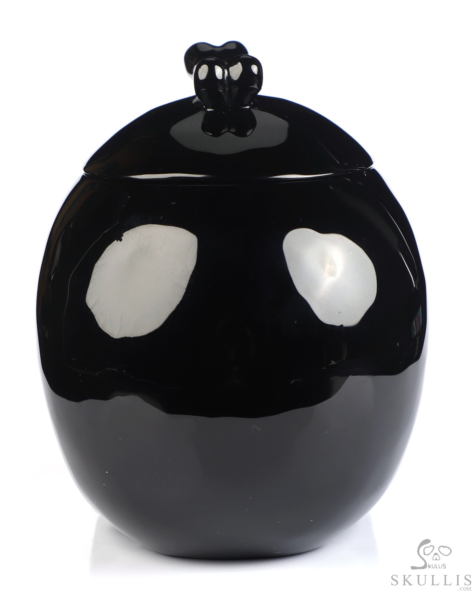 5.0" Black Obsidian Hand Carved Crystal Skull Urn, Crystal Healing