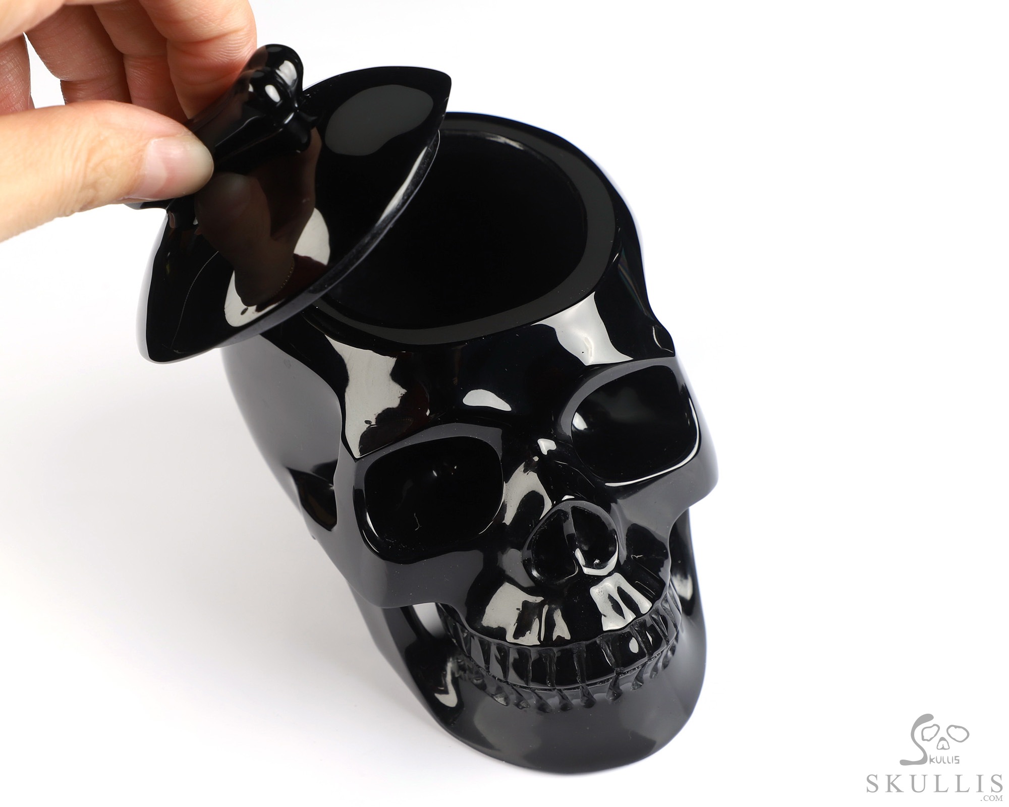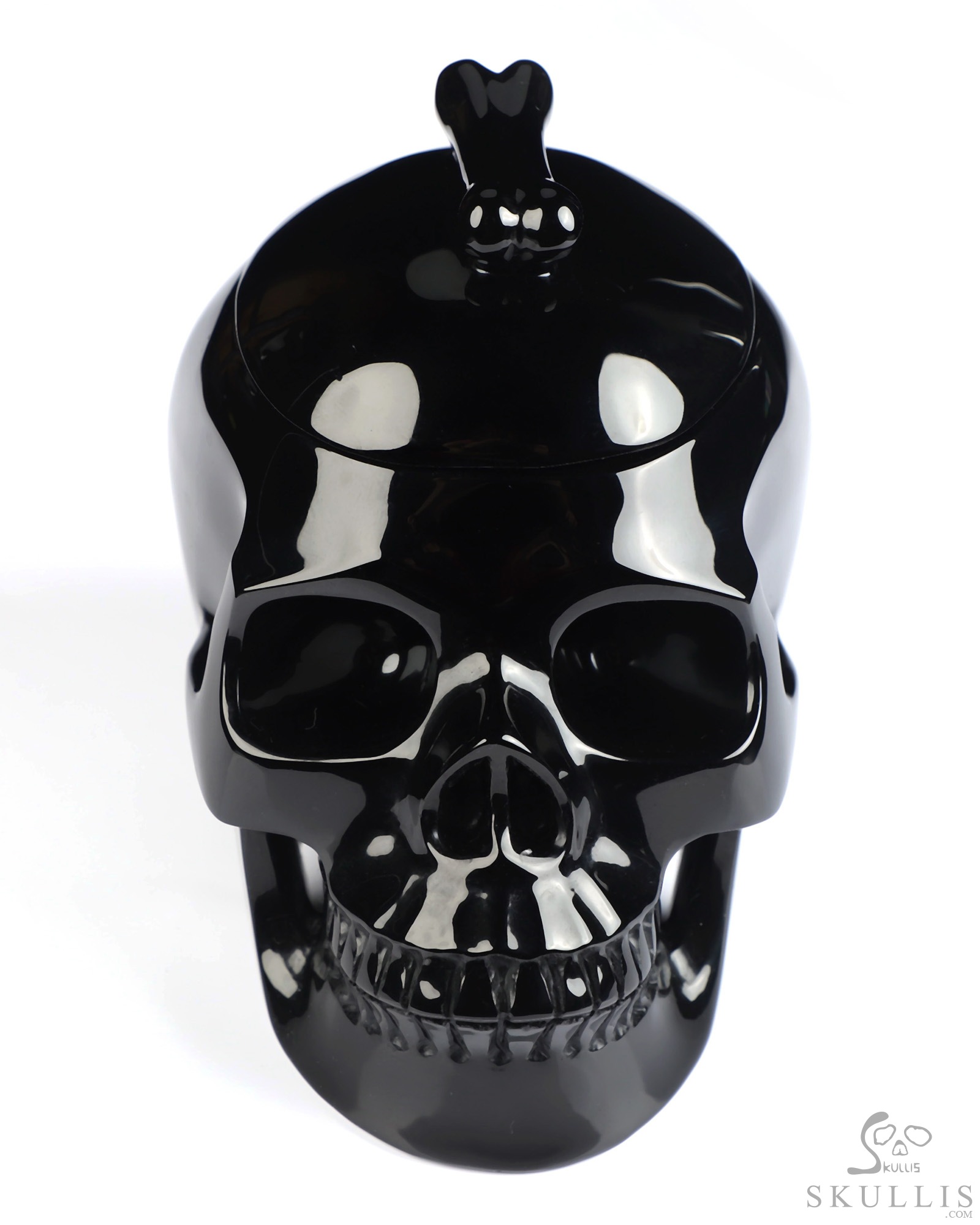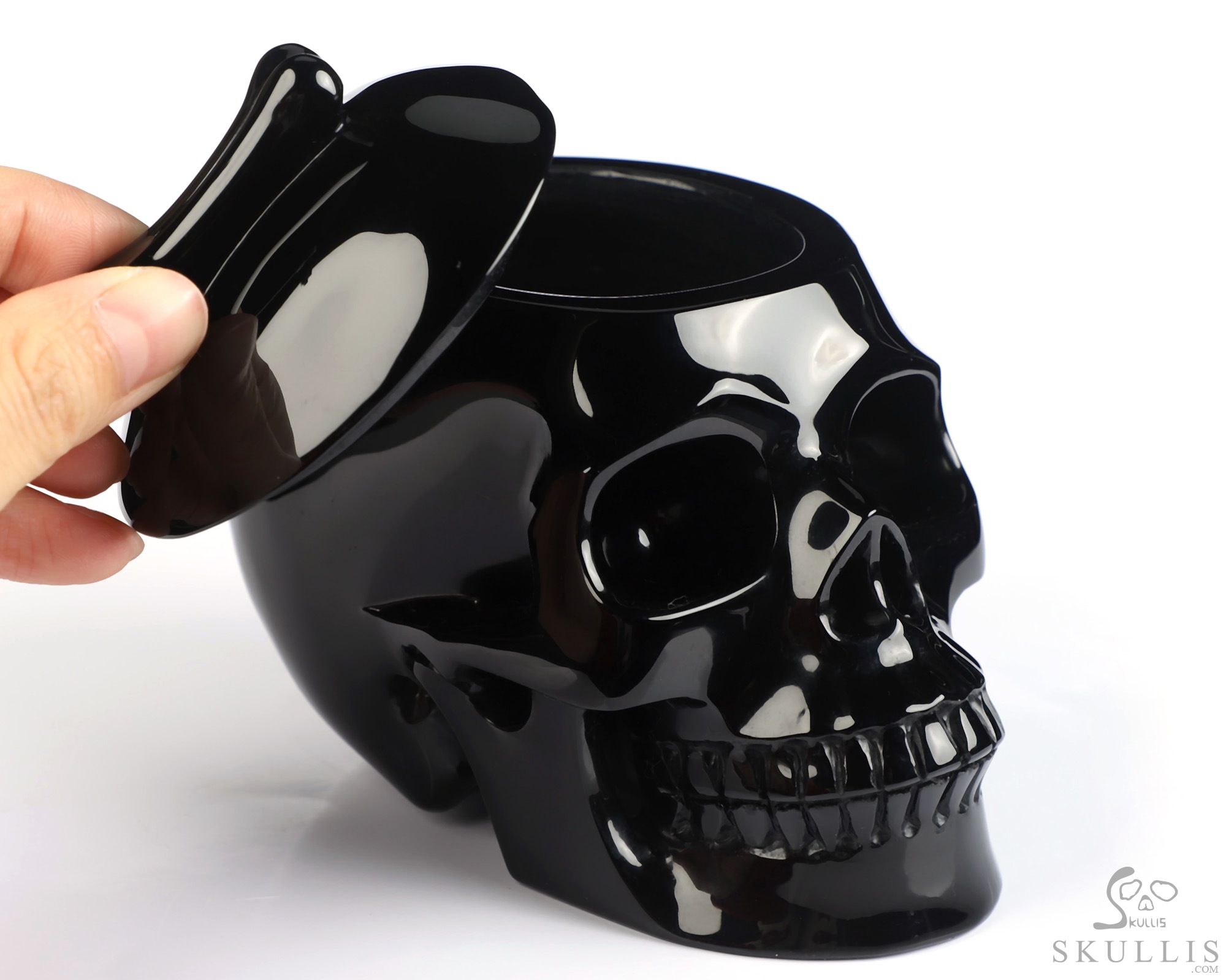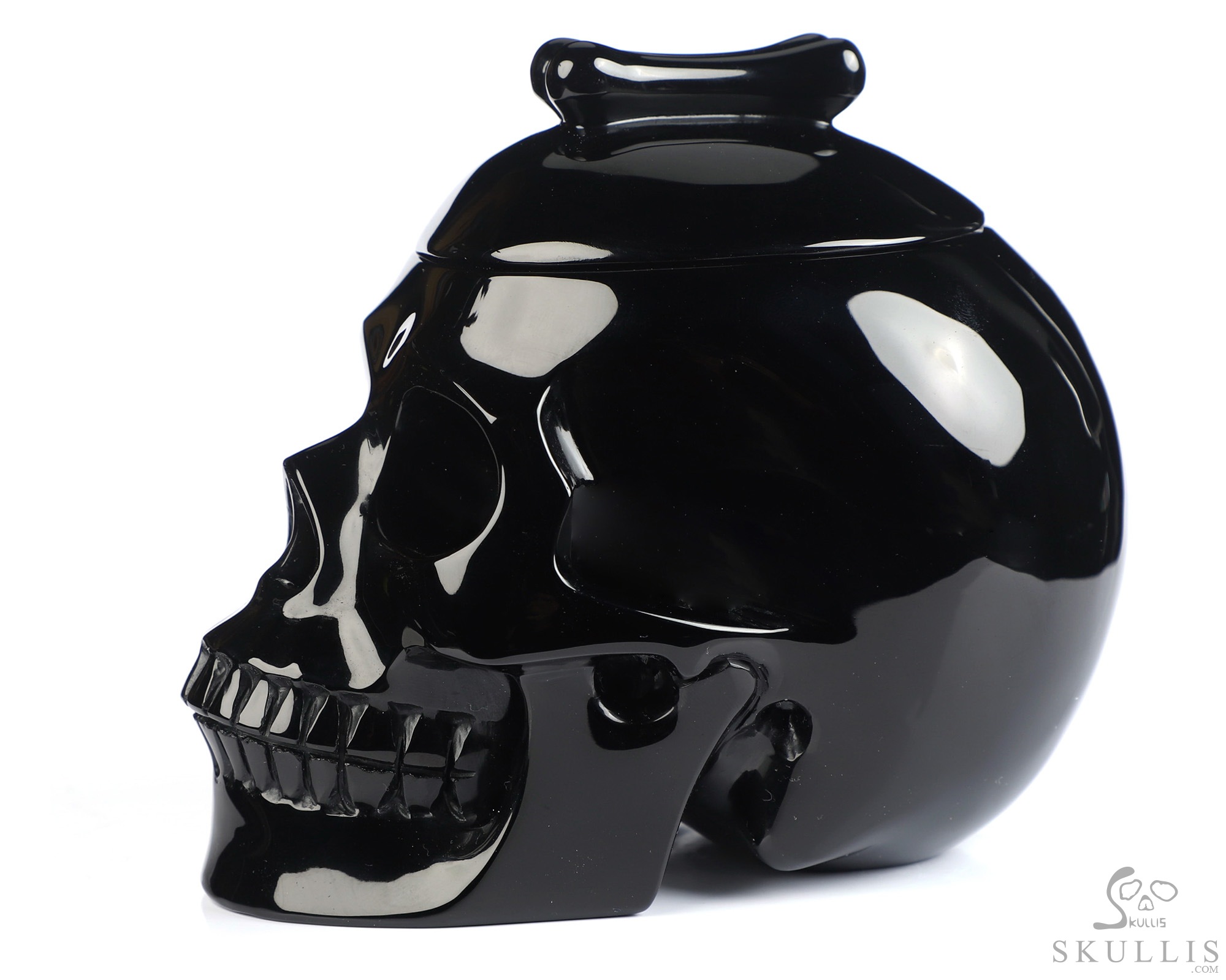 5.0" Black Obsidian Hand Carved Crystal Skull Urn, Crystal Healing