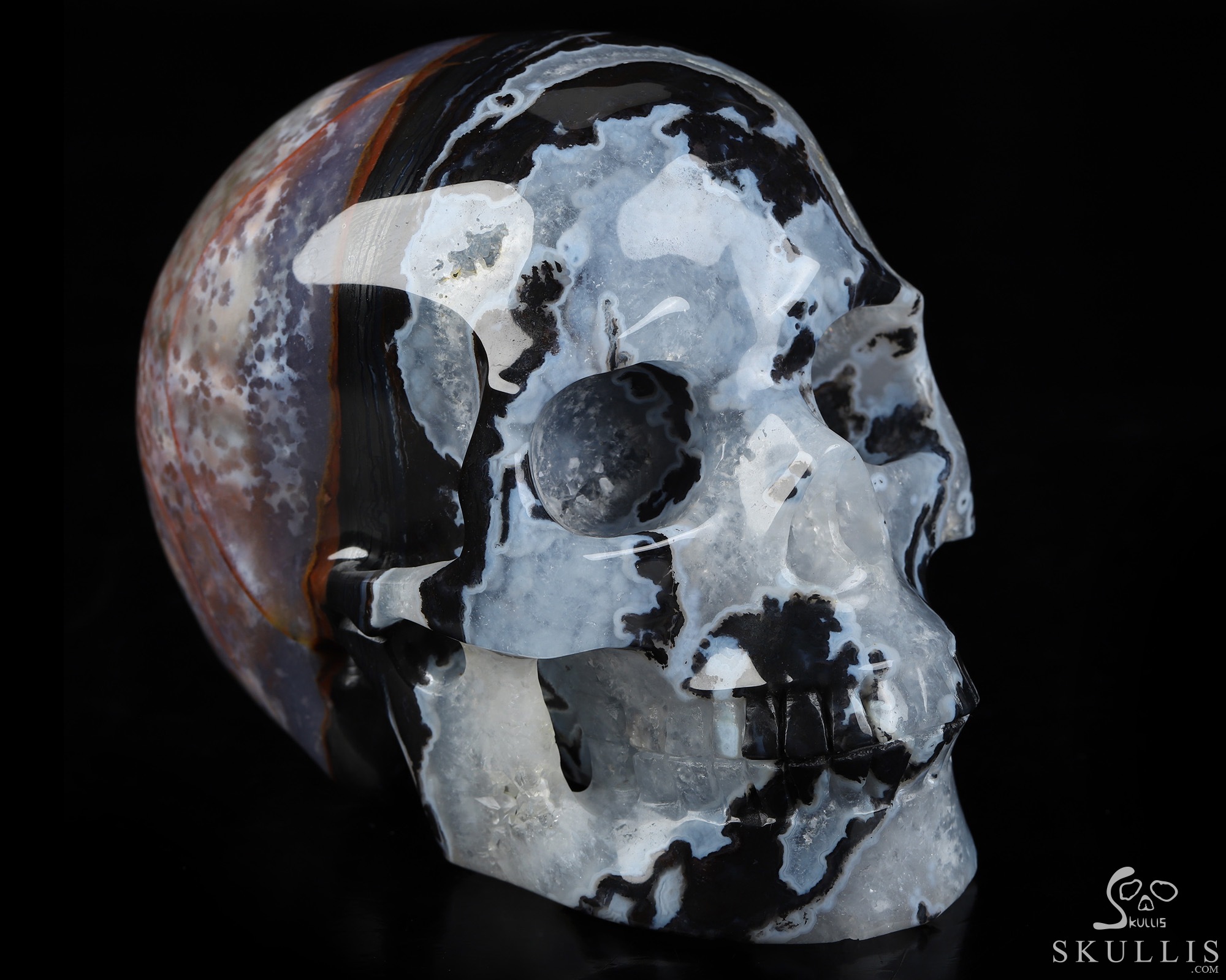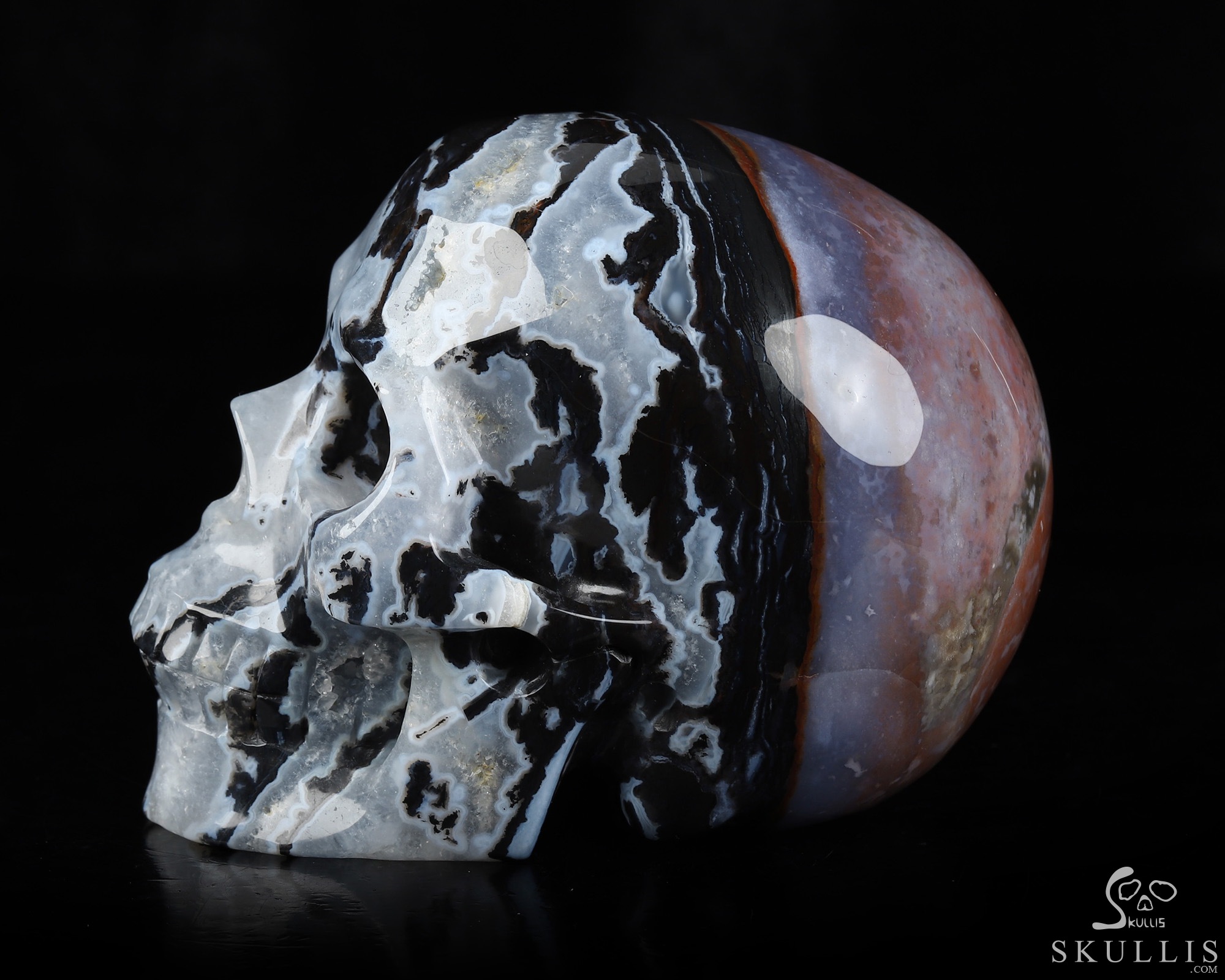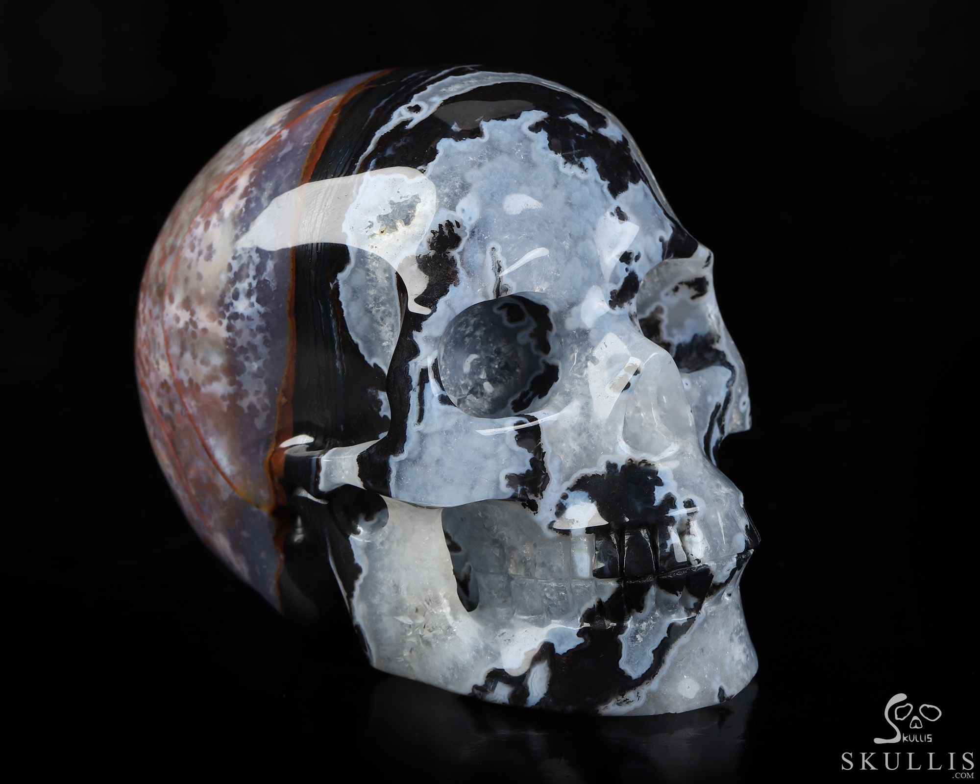 Gemstone Lifesized 6.5" Black Zebra Agate Carved Crystal Skull, Super Realistic