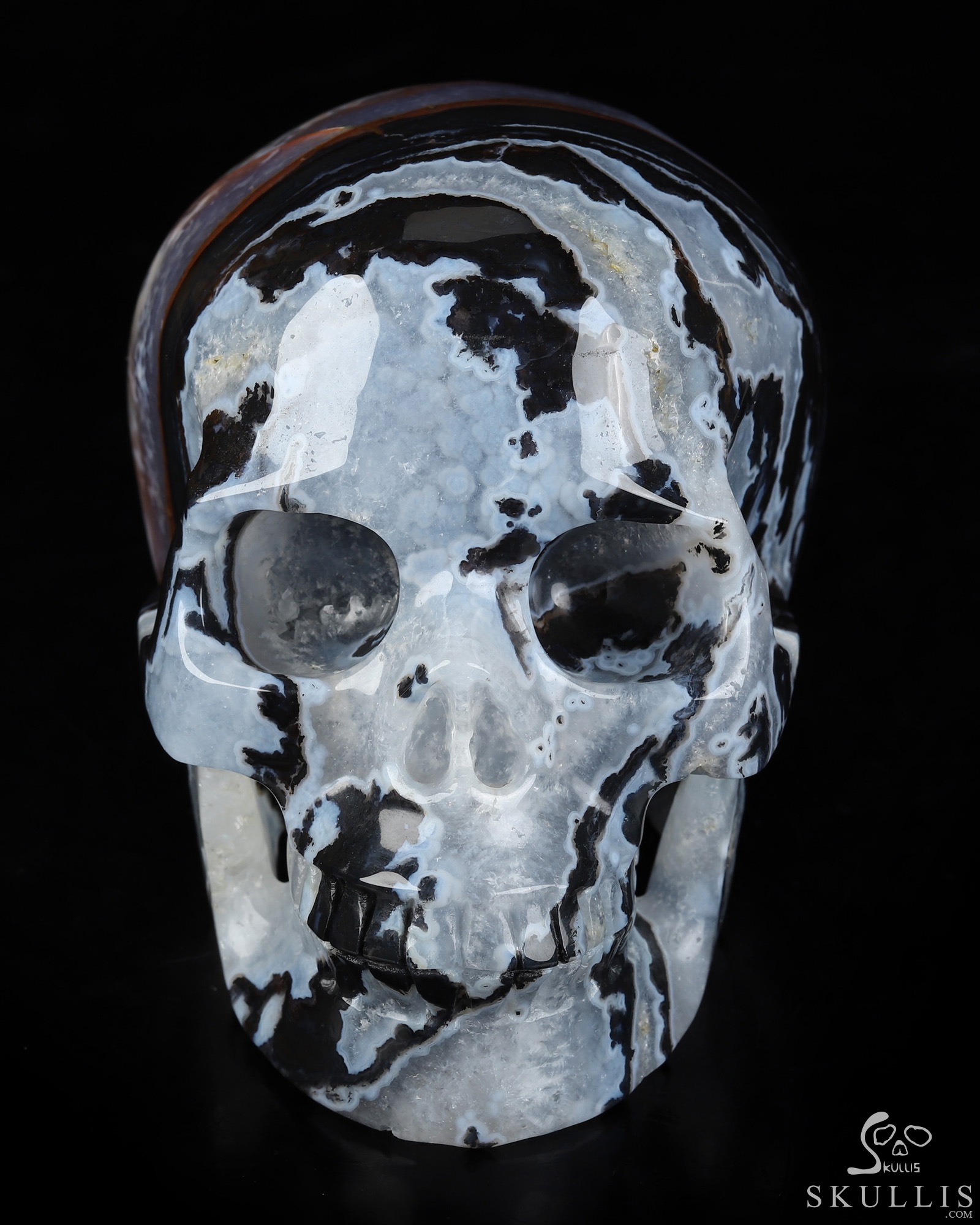 5.3" Black Zebra Agate Hand Carved Crystal Skull, Super Realistic, Crystal Healing