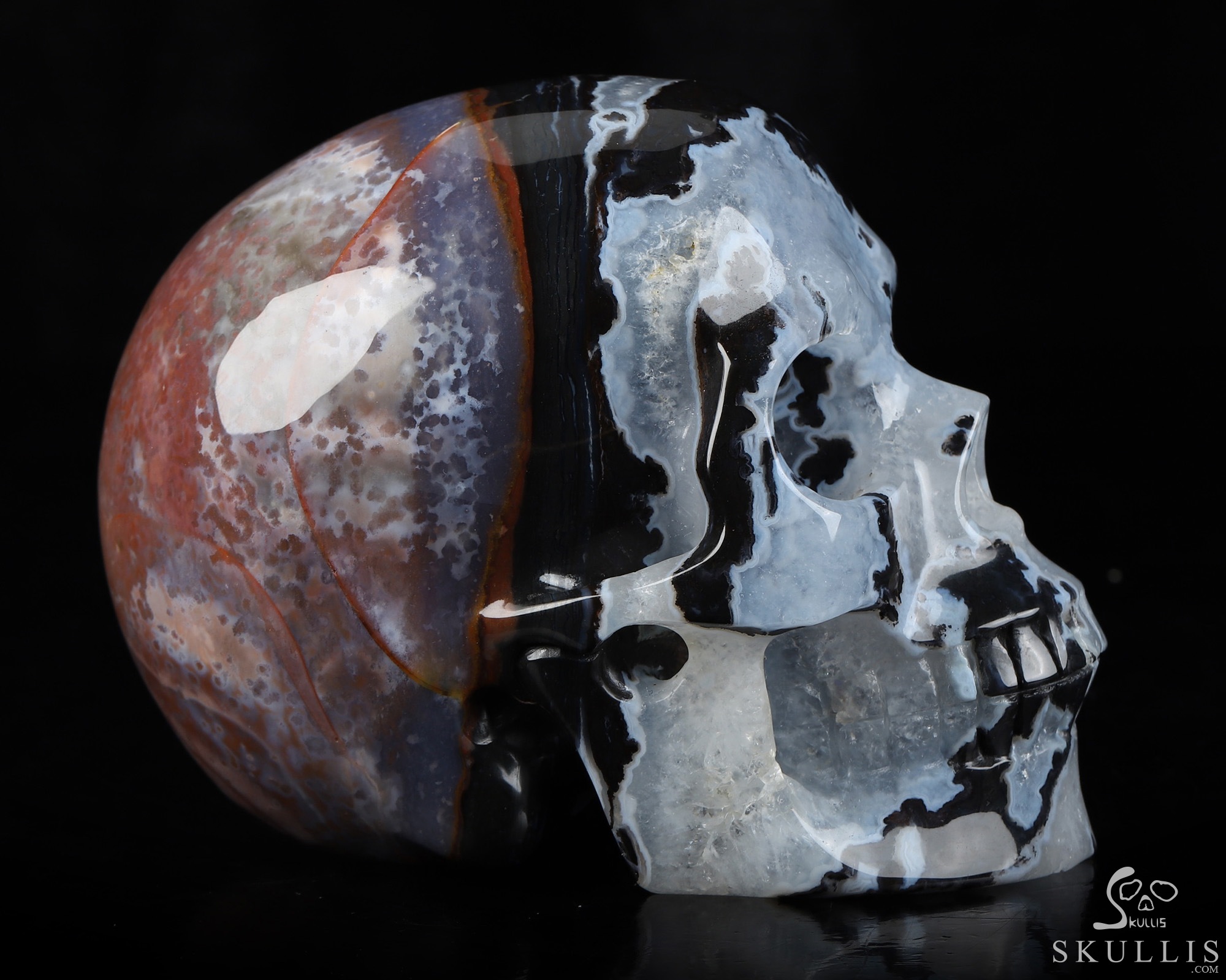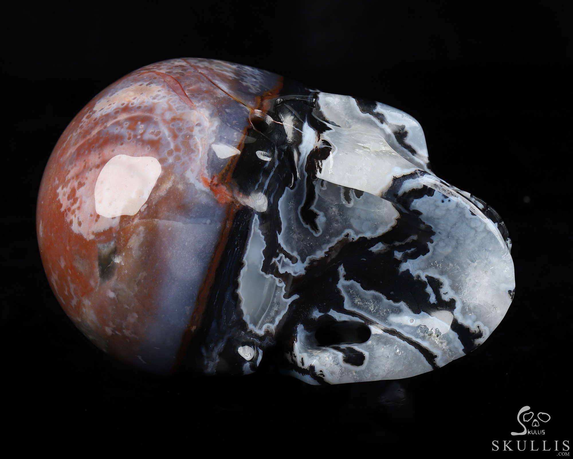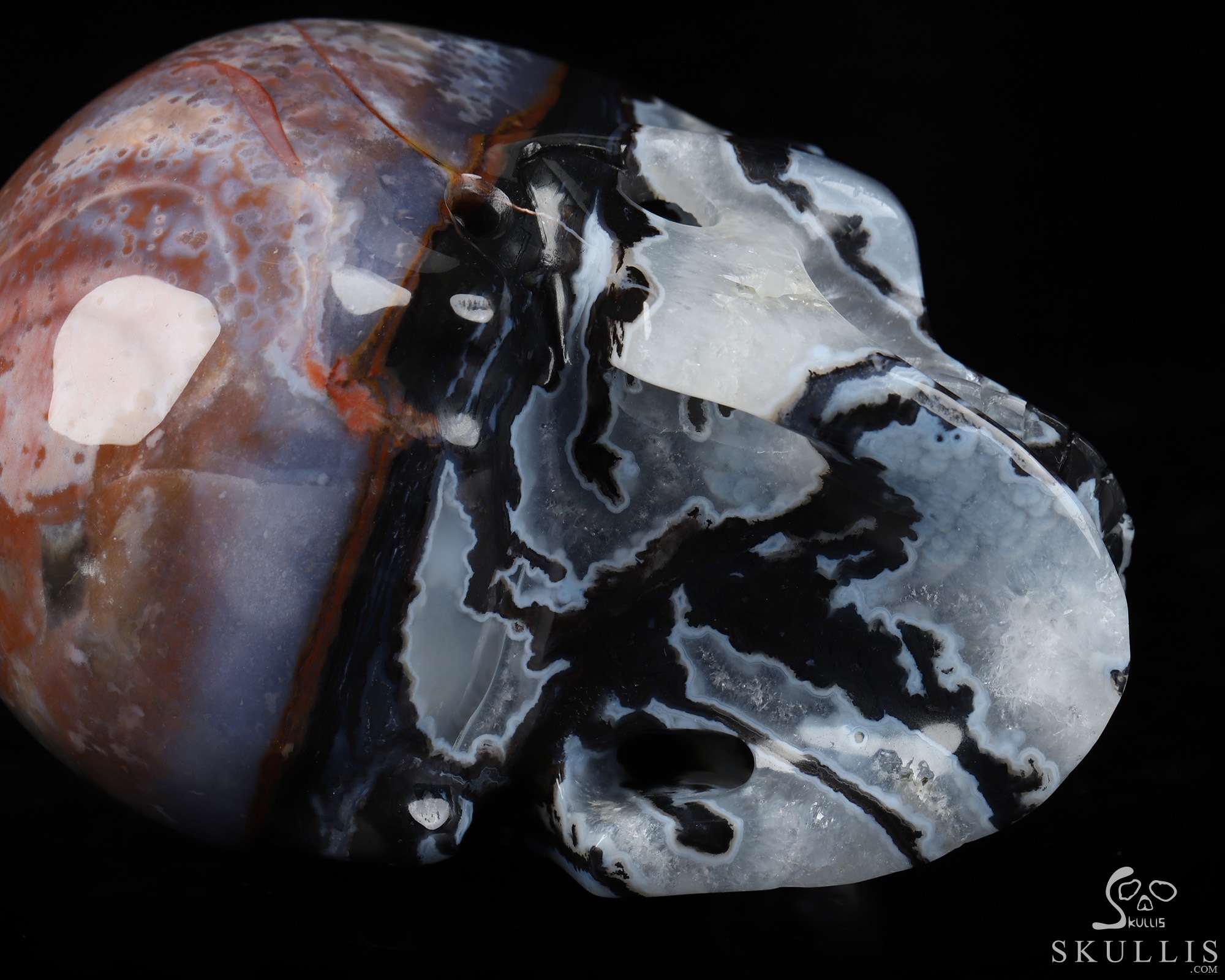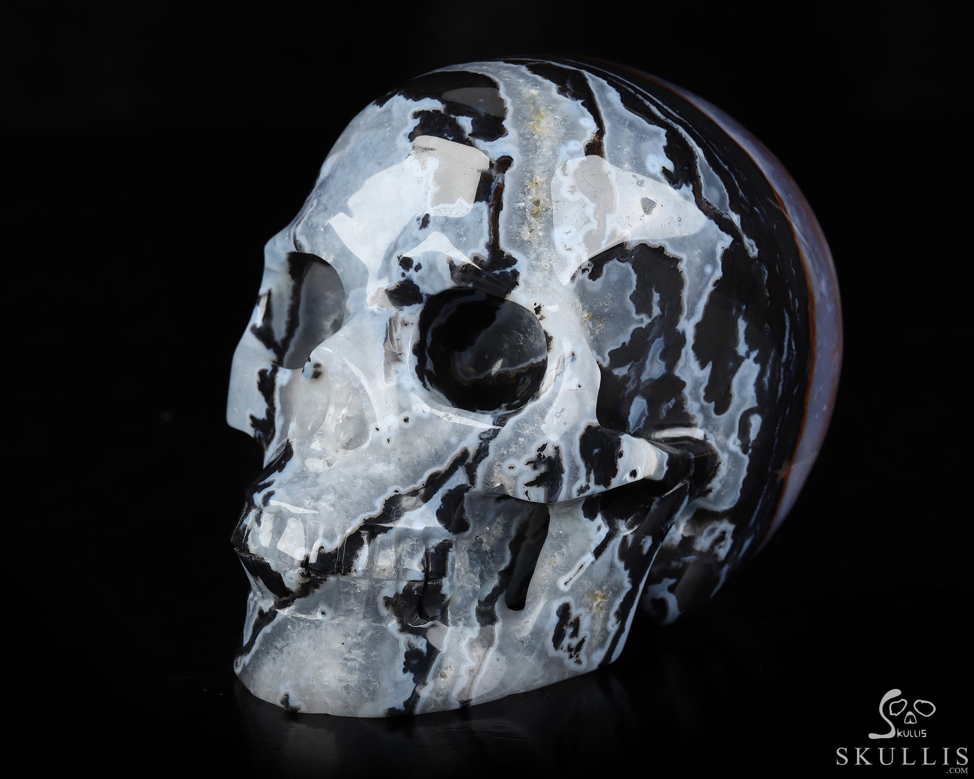 5.1" Black Zebra Agate Hand Carved Crystal Skull, Super Realistic, Crystal Healing