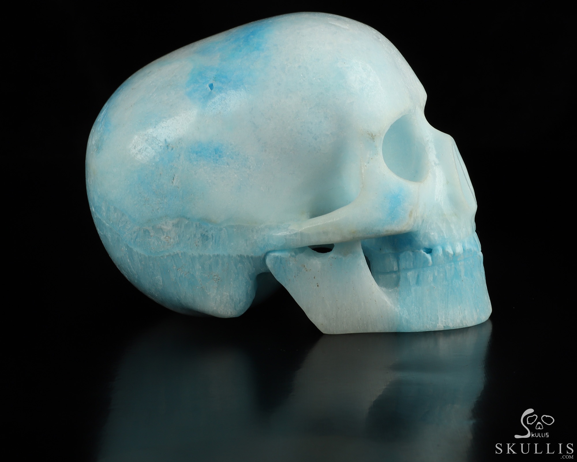 Lifesized 6.9" Blue Aragonite Carved Crystal Skull,Super Realistic, Crystal Healing