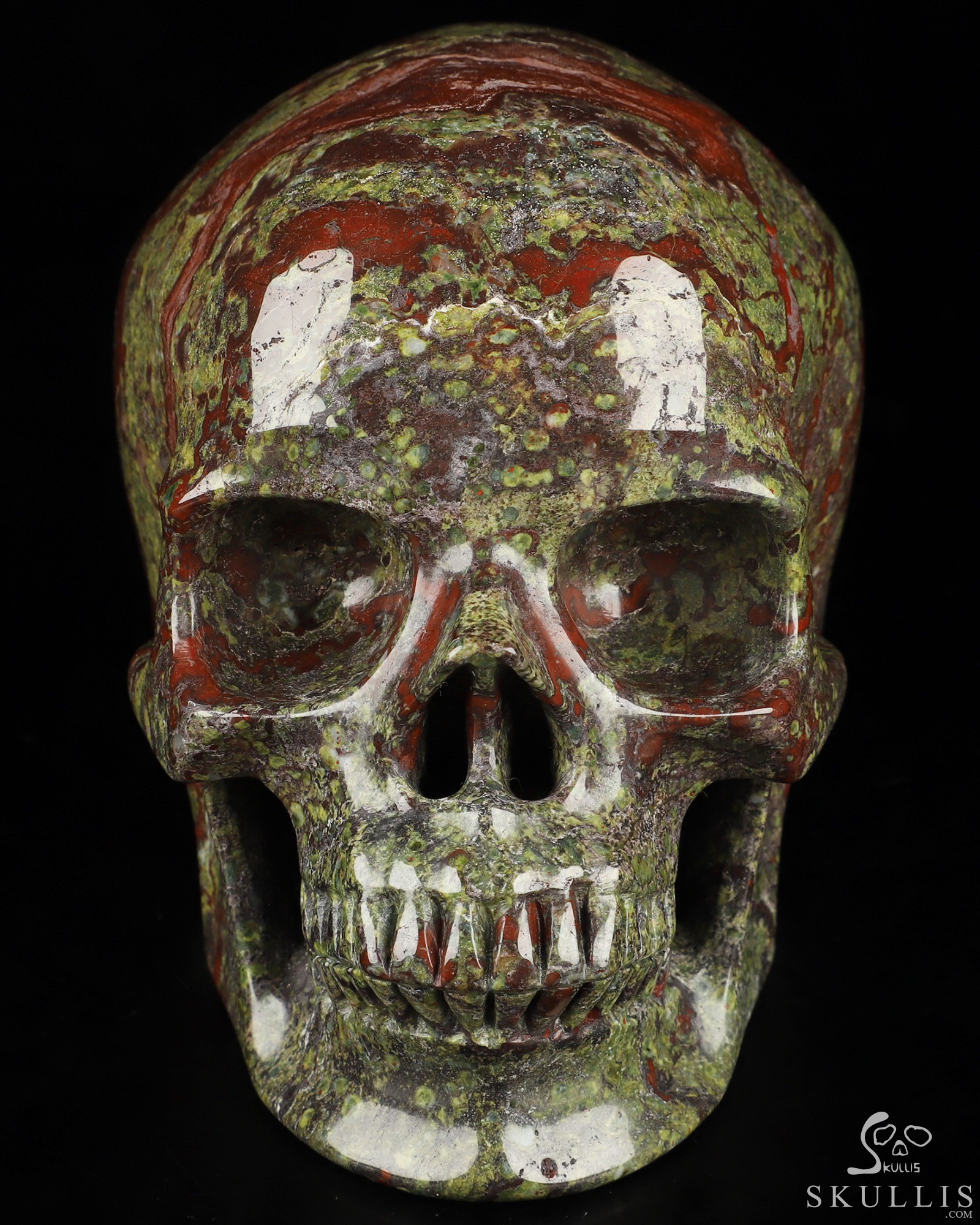 5.0" Dragon Blood Jasper Hand Carved Crystal Skull, Super Realistic, Crystal Healing