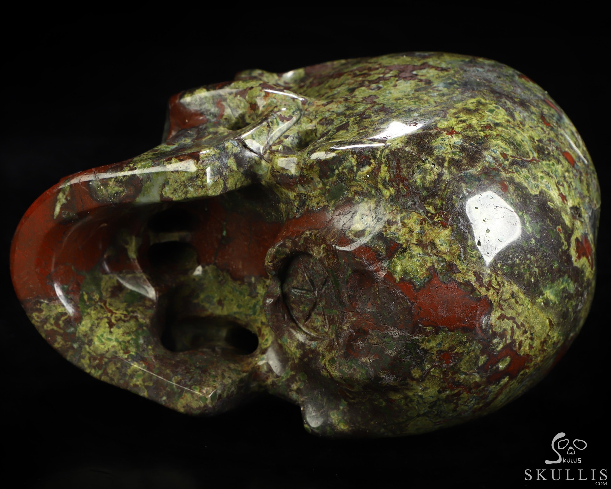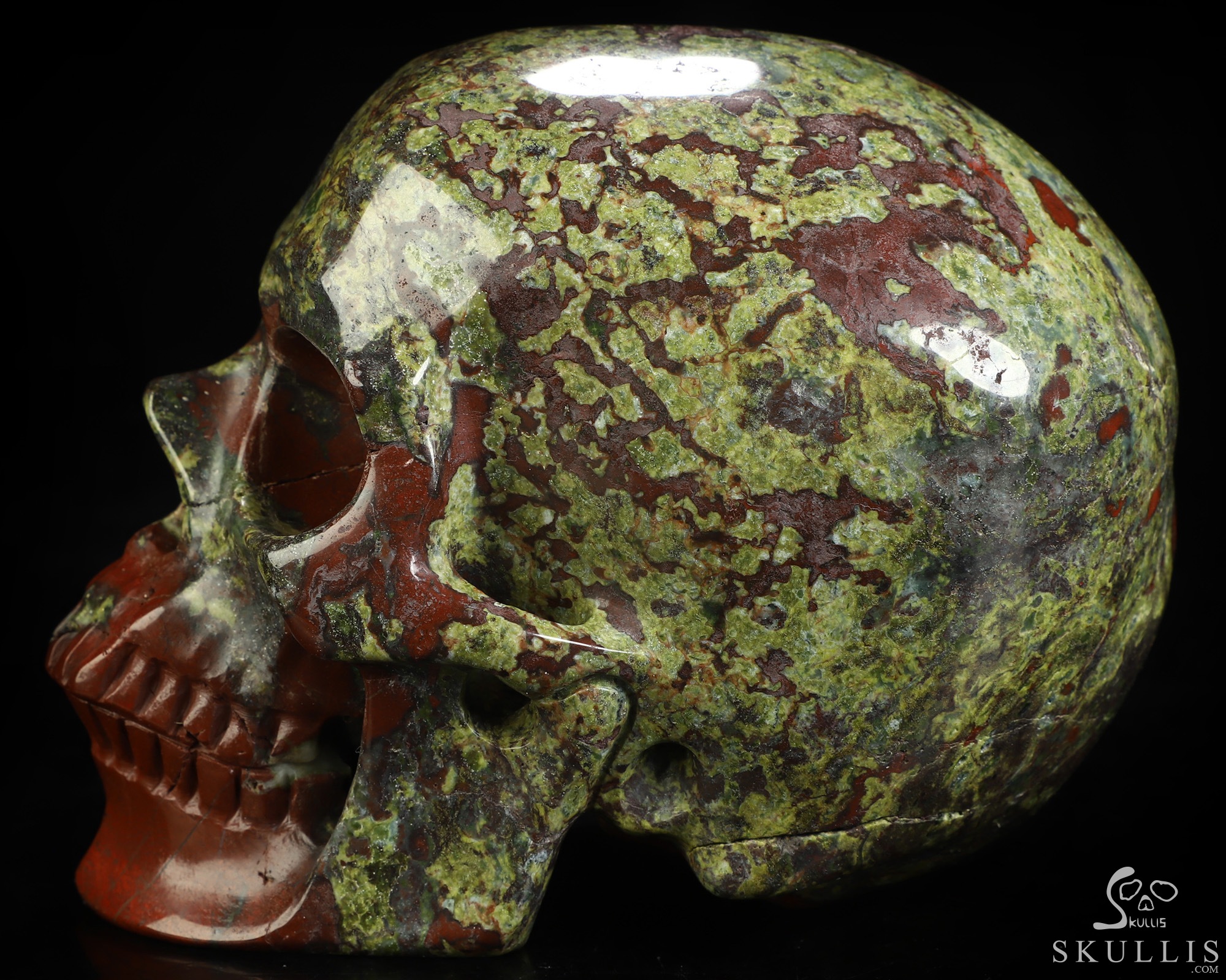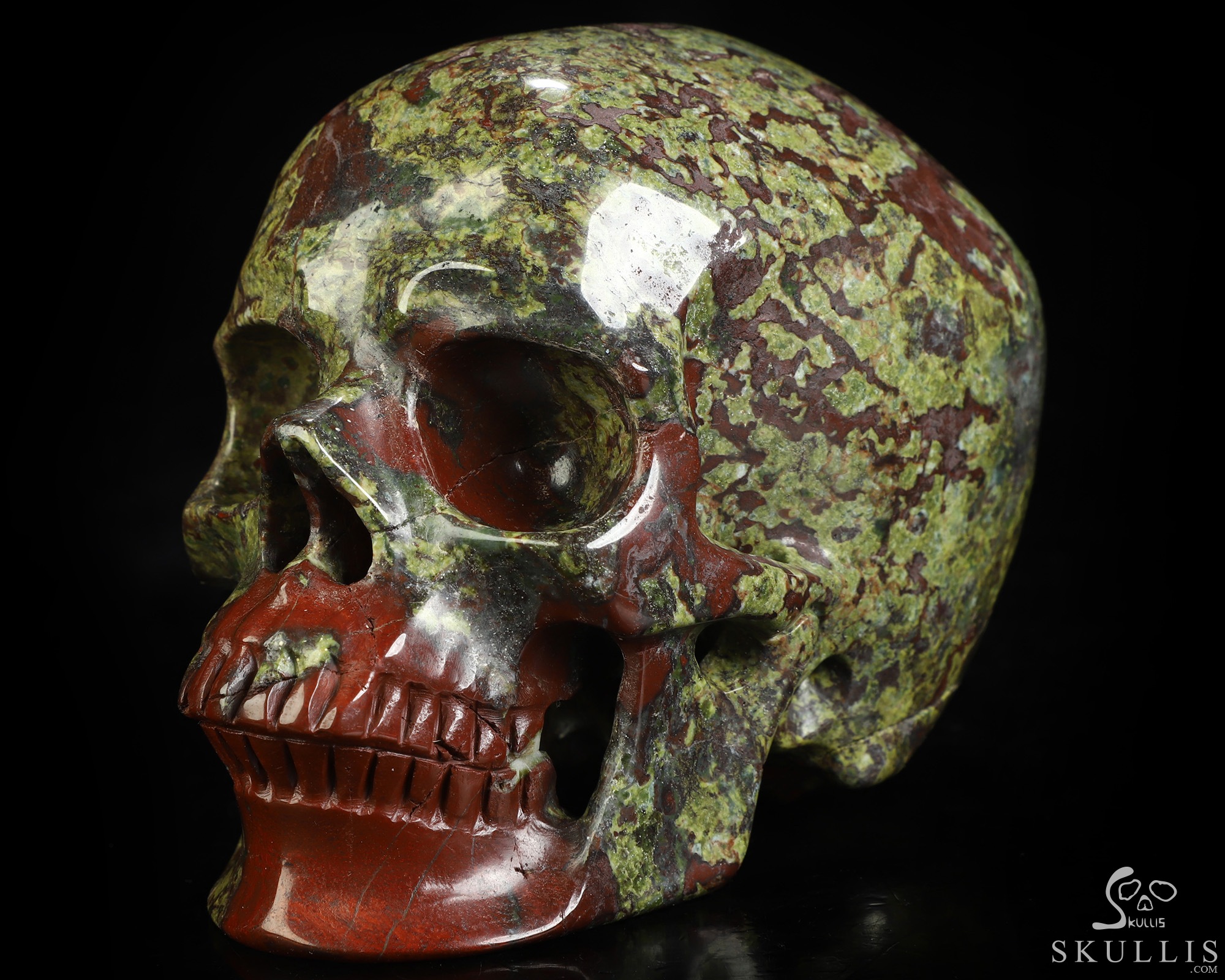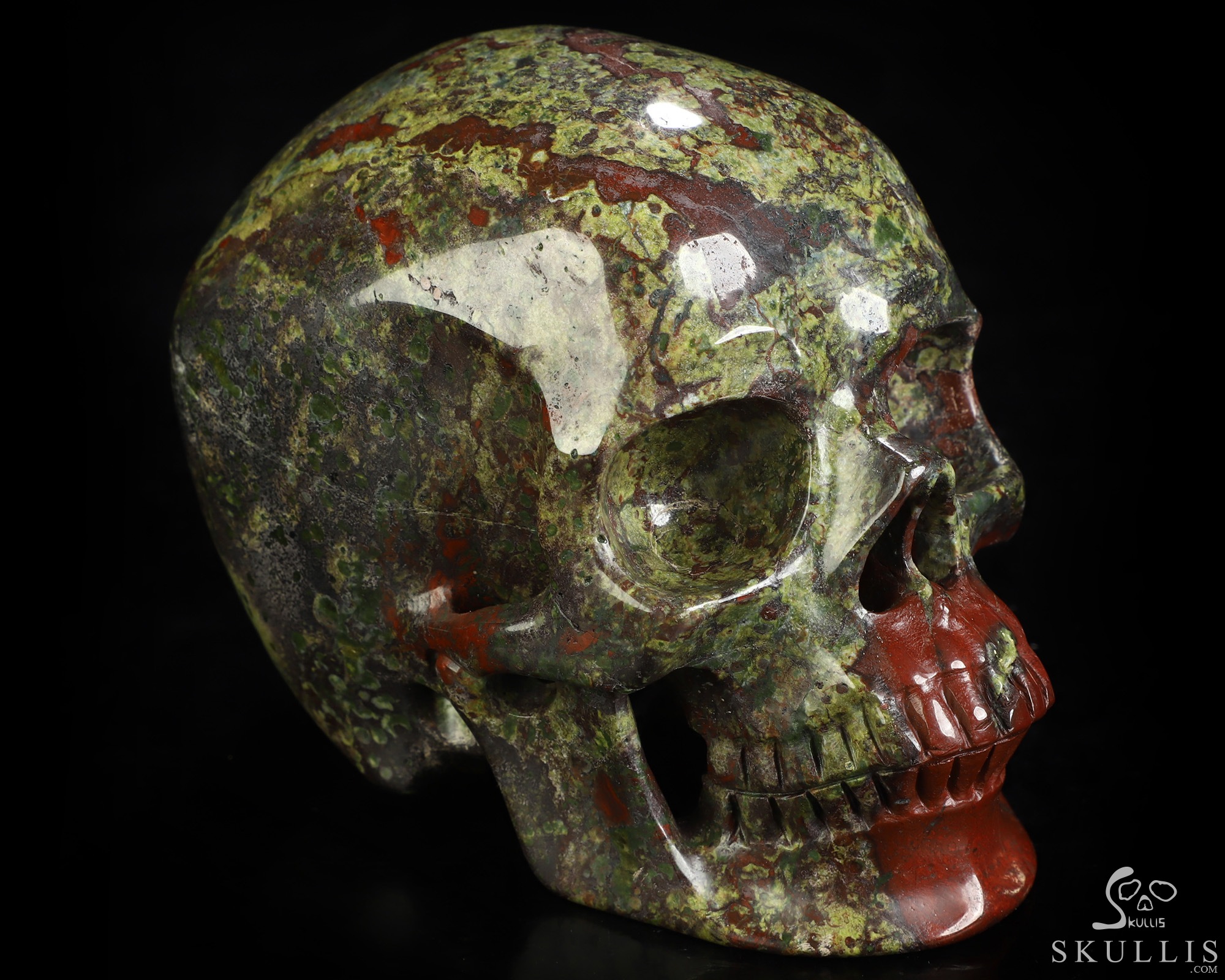 5.1" Dragon Blood Jasper Hand Carved Crystal Skull, Super Realistic, Crystal Healing