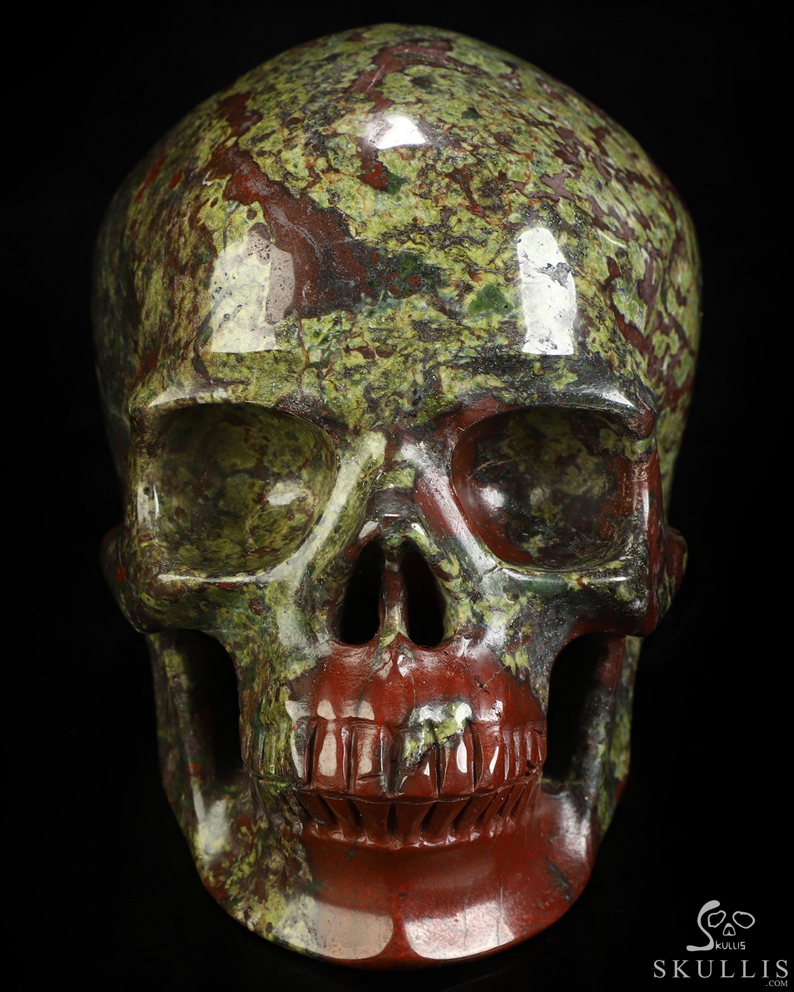 You are looking at a Dragon Blood Jasper skull. The skull is 5 inches from front to back.
