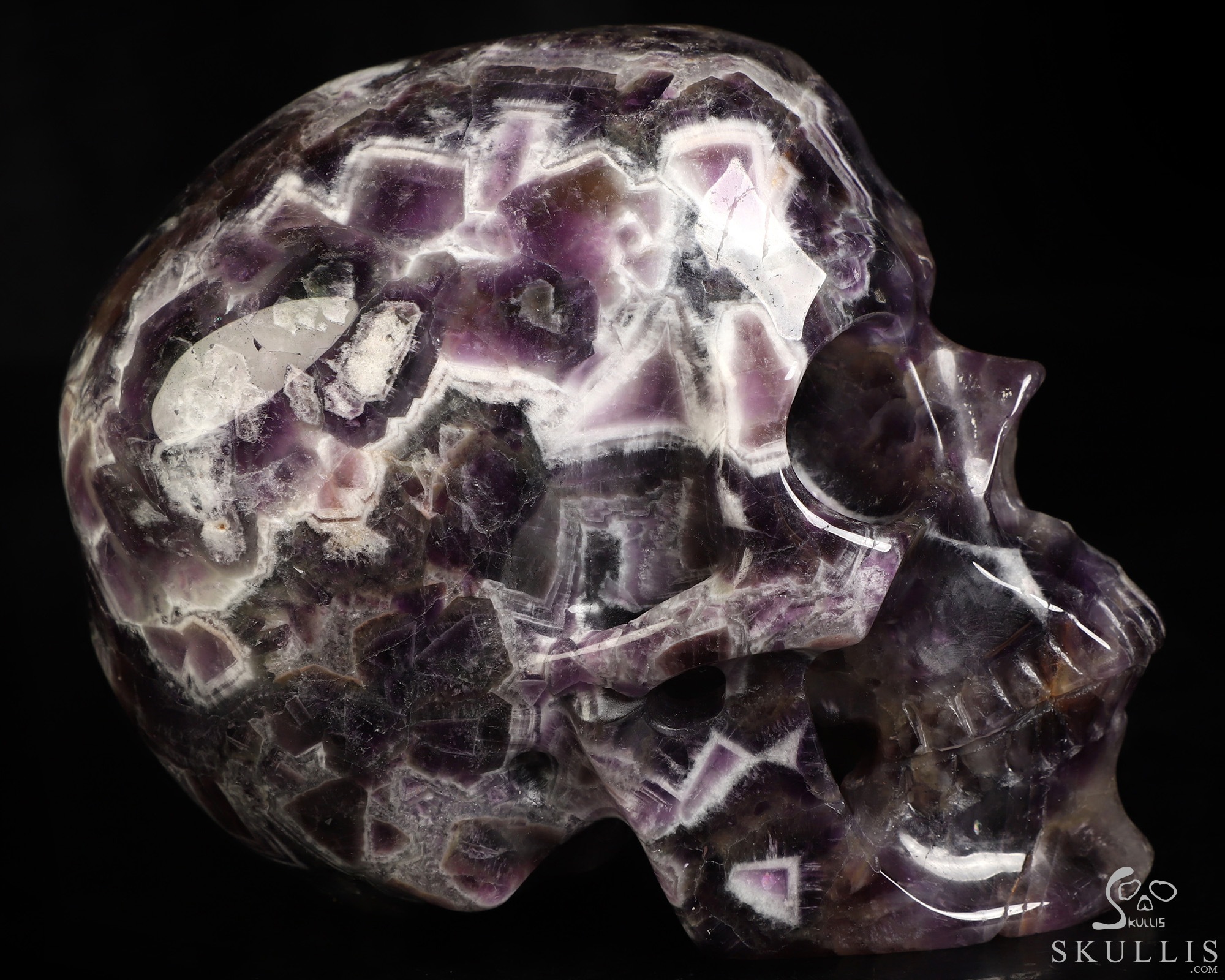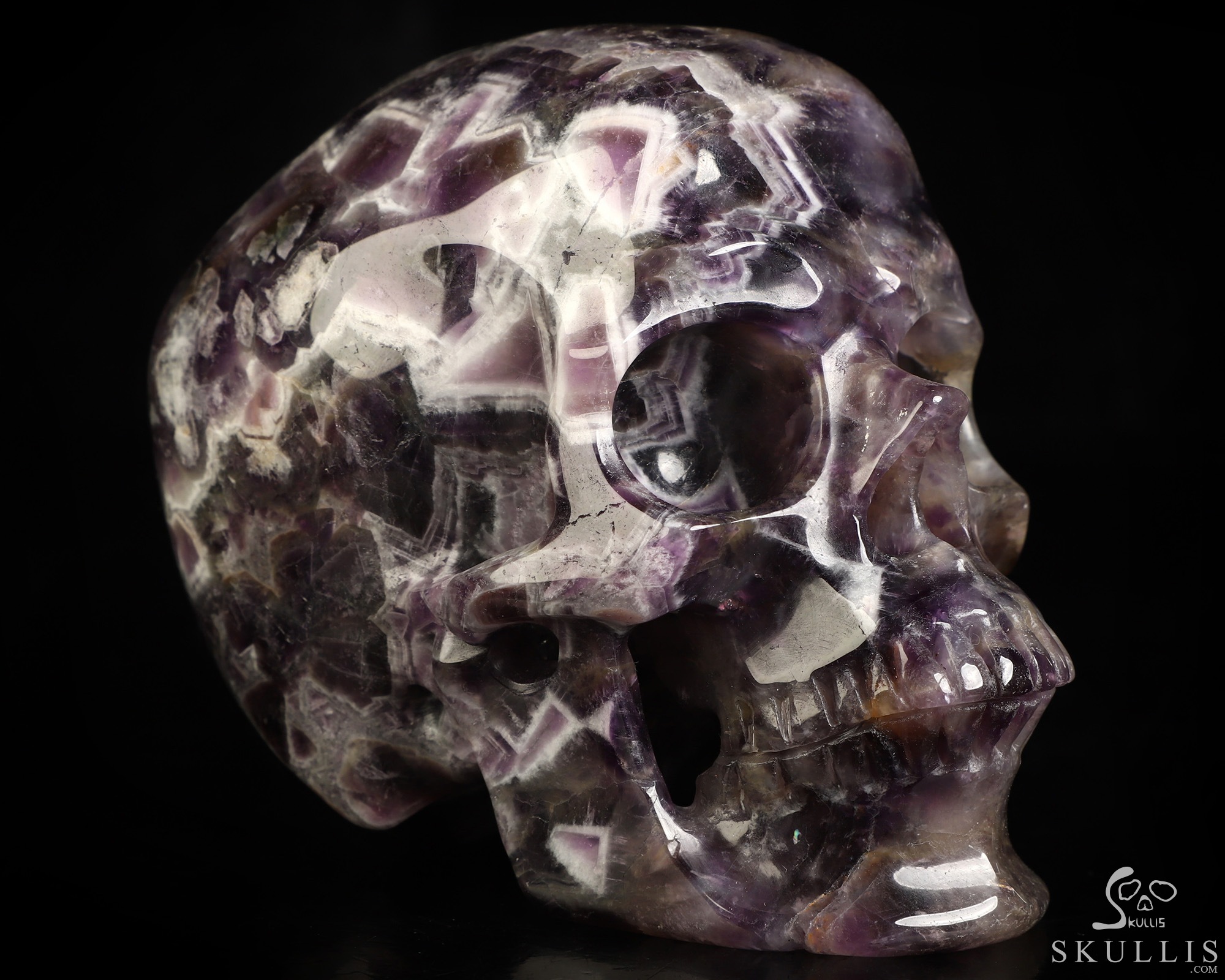 5.1" Dream Chevron Amethyst Carved Crystal Skull, Super Realistic