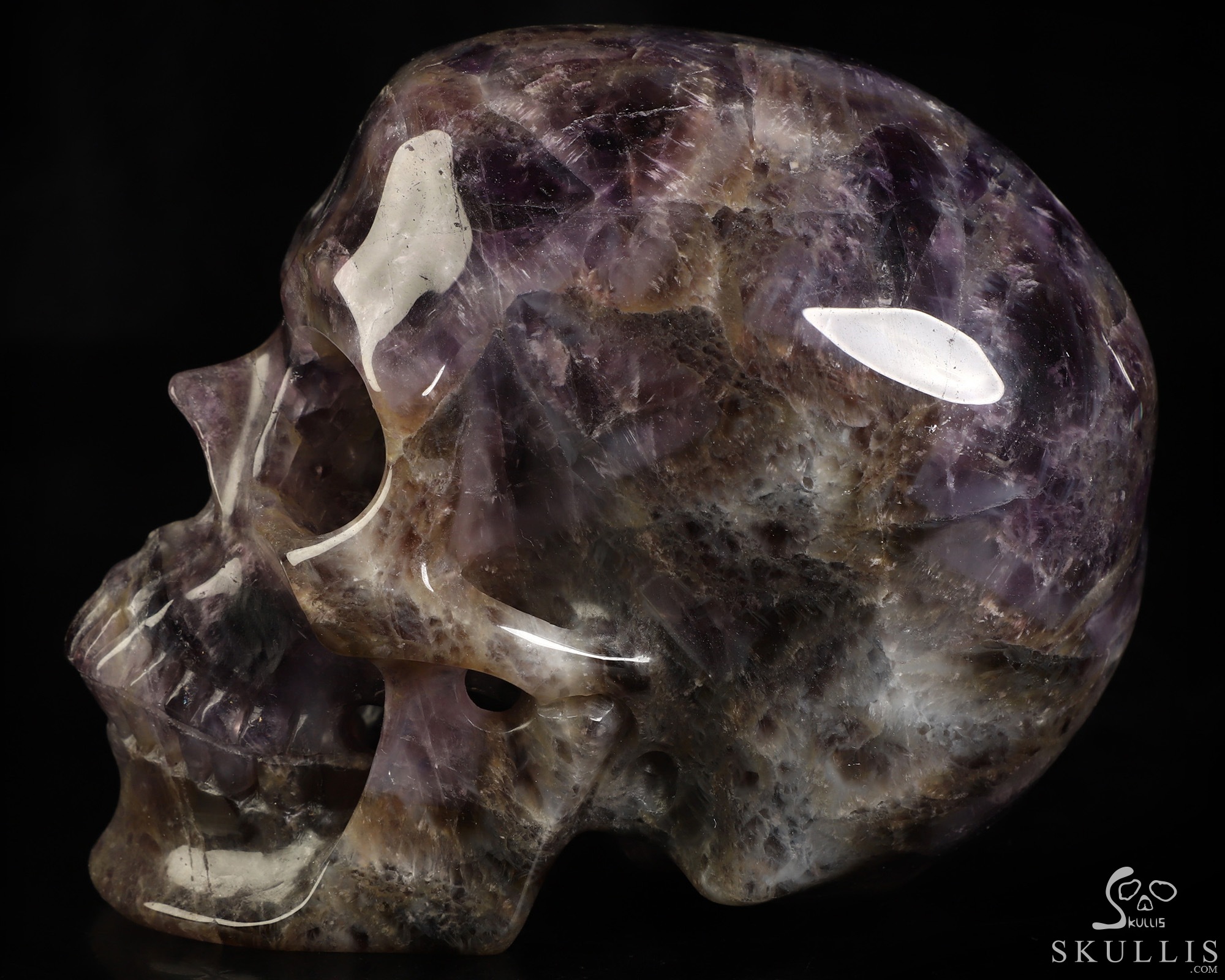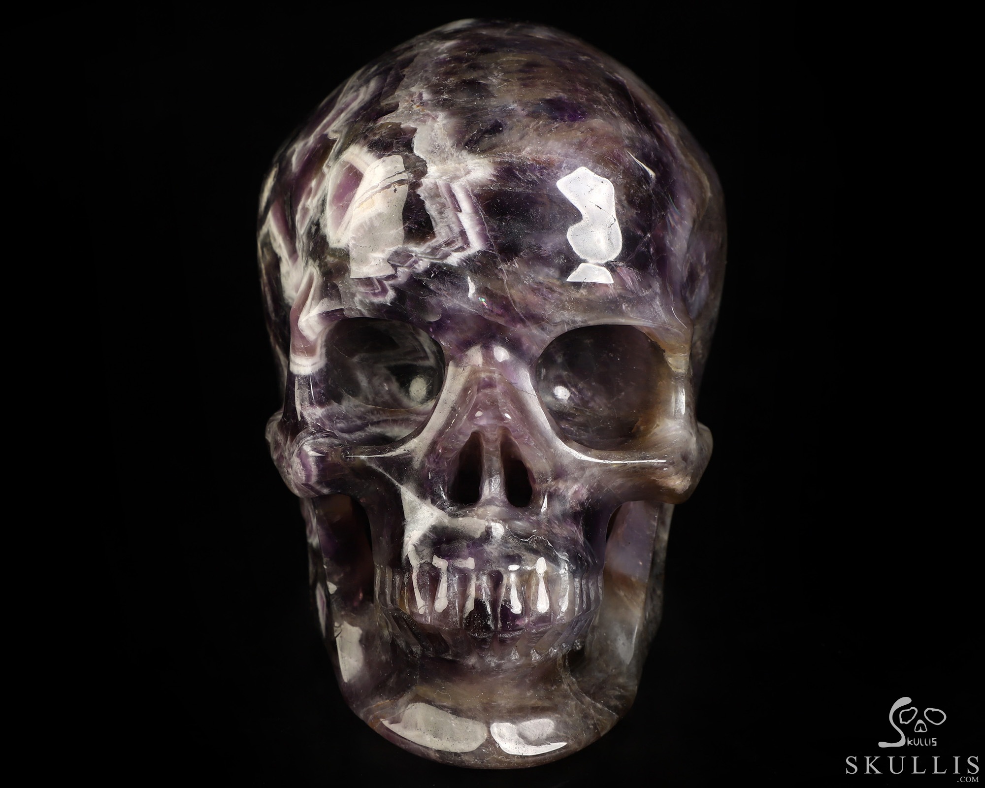You are looking at a Dream Chevron Amethyst skull. The skull is 5 inches from front to back.