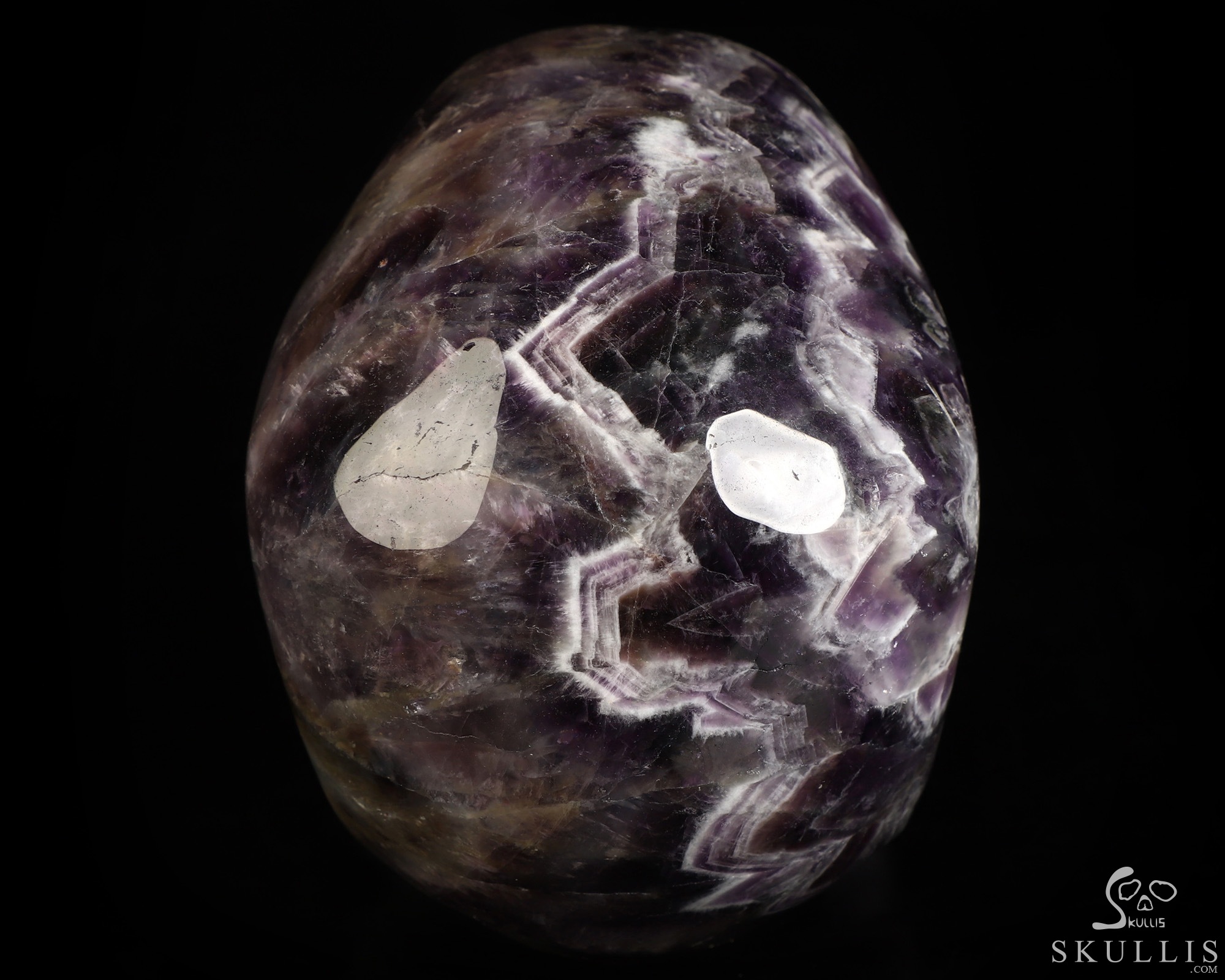 The Pharaoh 6.9" Dream Chevron Amethyst Carved Crystal Skull, Crystal Healing