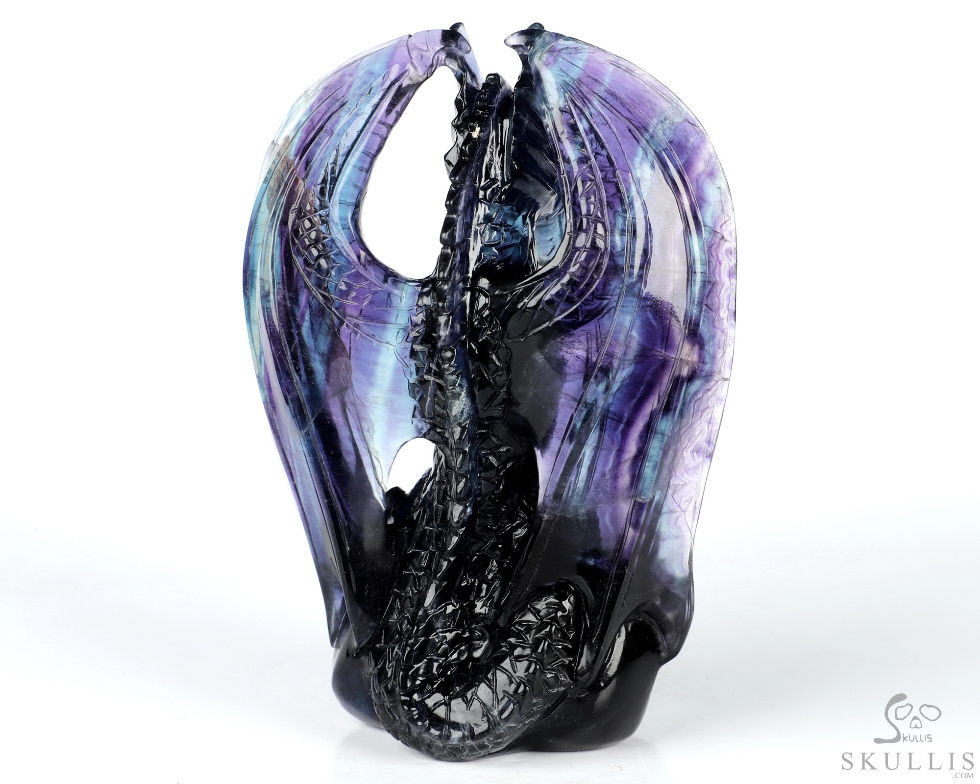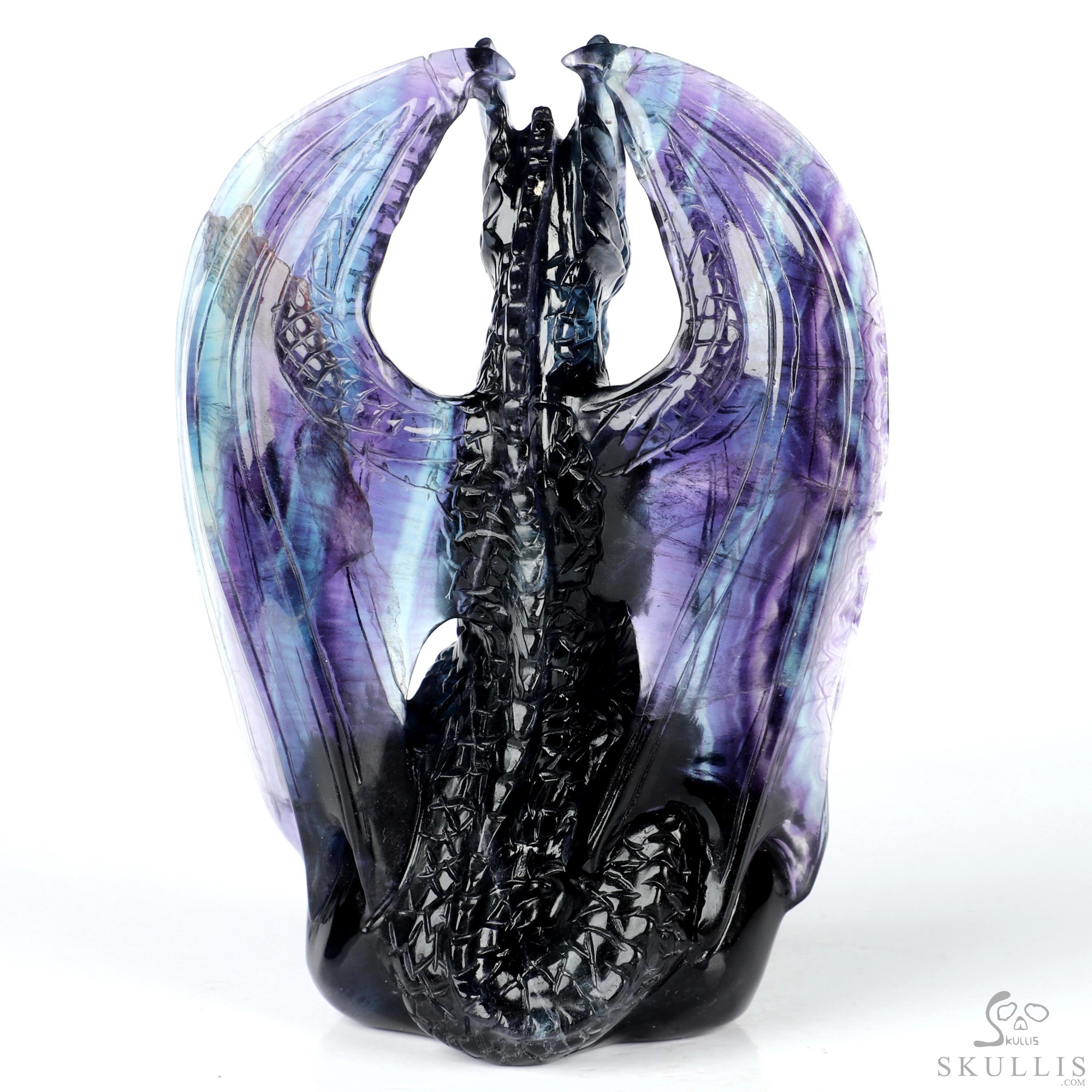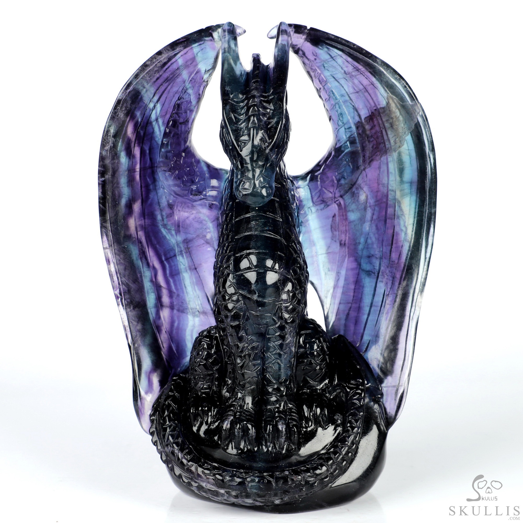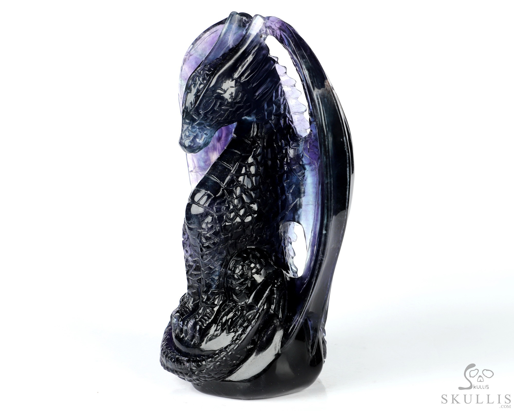 5.0" Fluorite Hand Carved Crystal Dragon Sculpture, Crystal Healing